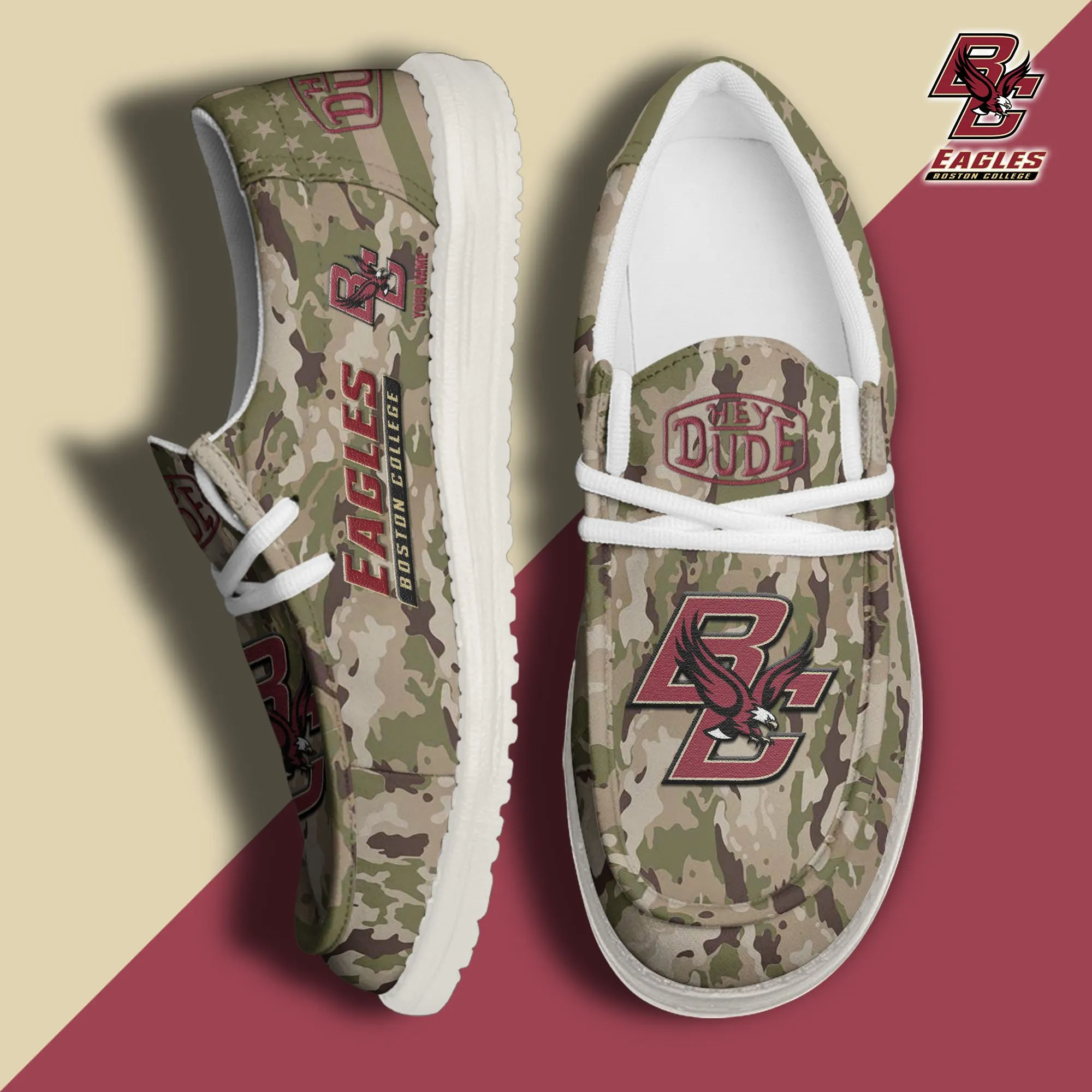 Boston College Eagles 3D Print Dude Shoes Camo Green Best Gift For Sport Fan