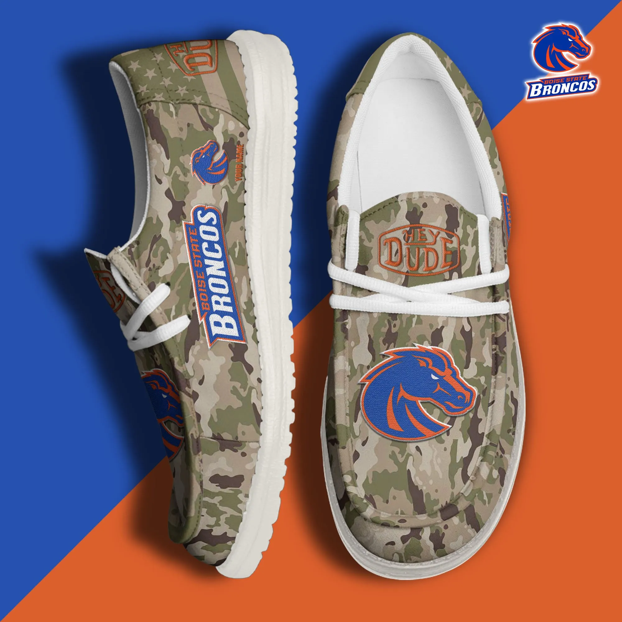 Boise State Broncos 3D Print Dude Shoes Camo Green For Men Women