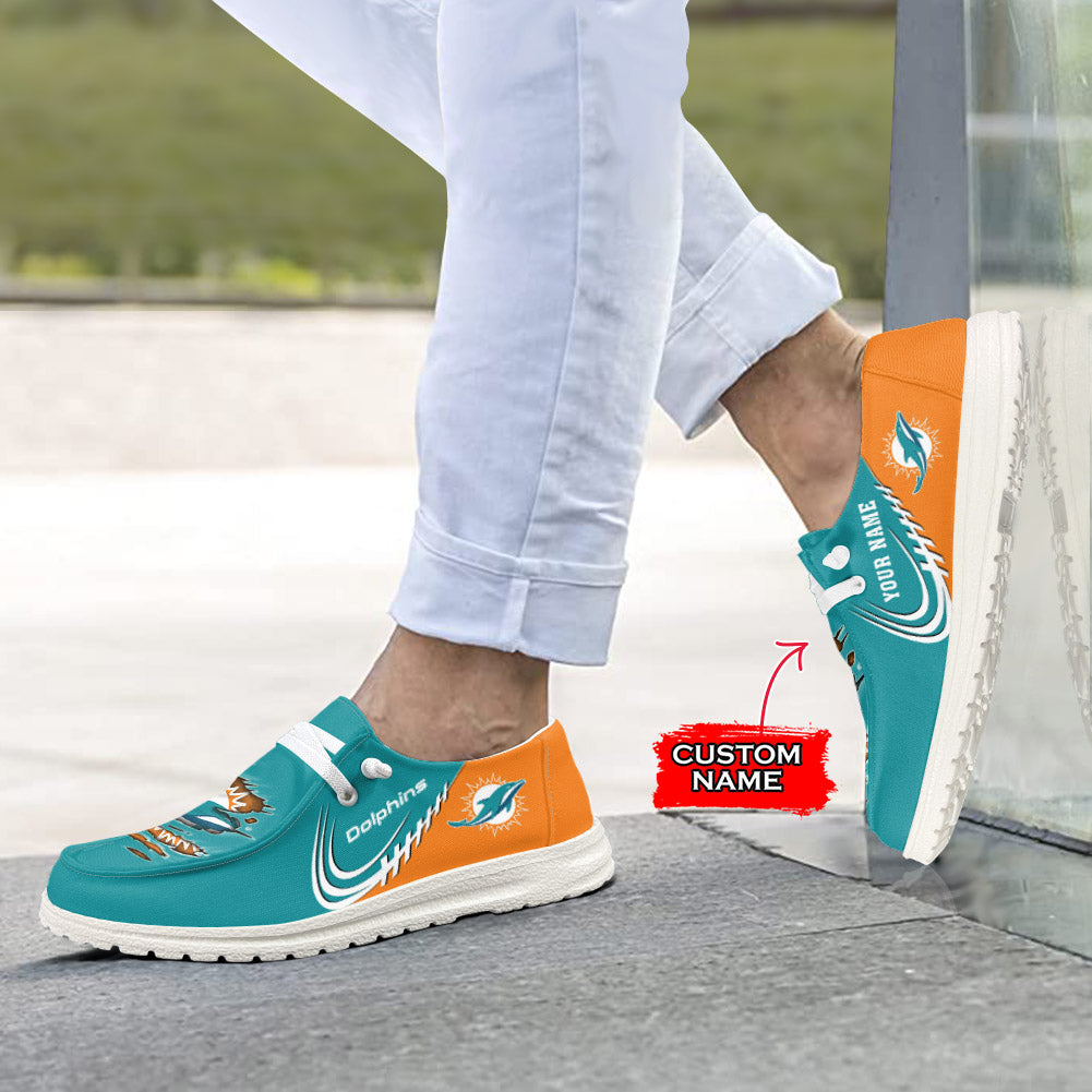 Nfl Miami Dolphins Custom Name Dude Shoes For Men And Women