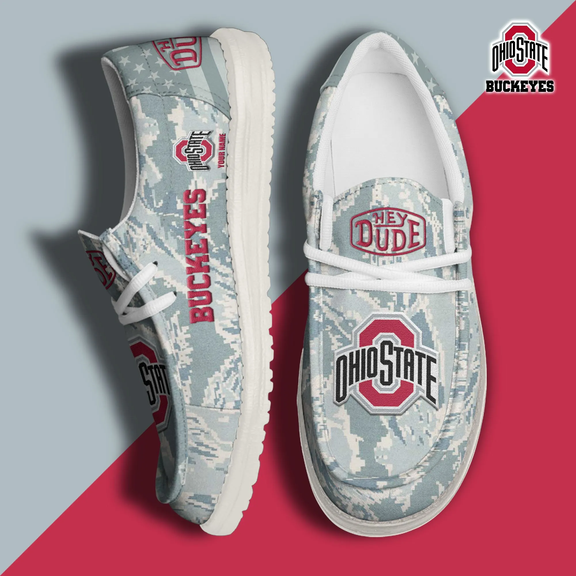 Ohio State Buckeyes 3D Print Dude Shoes Camo Blue Grey For Men Women