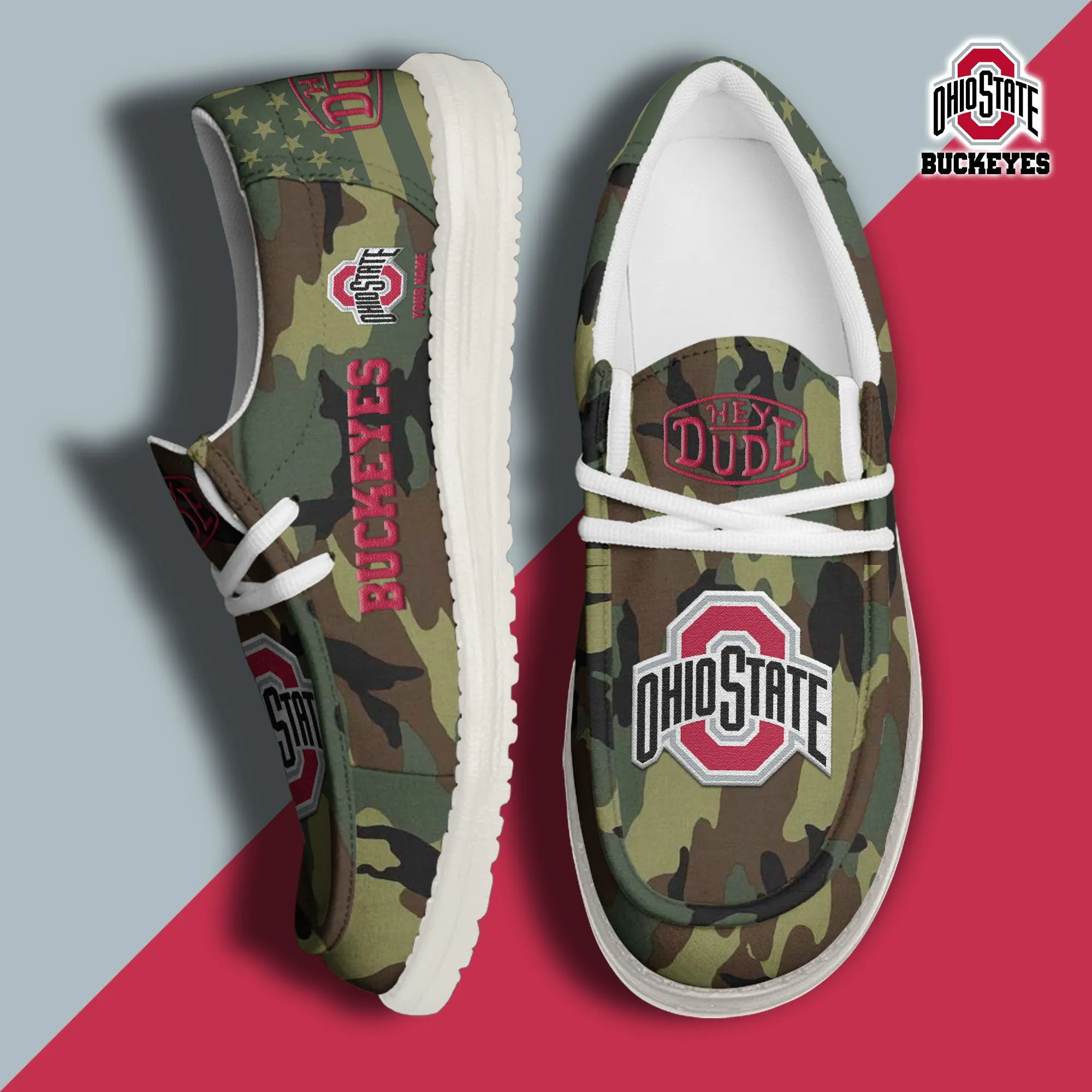 Ohio State Buckeyes 3D Print Dude Shoes Camo Green For Men Women