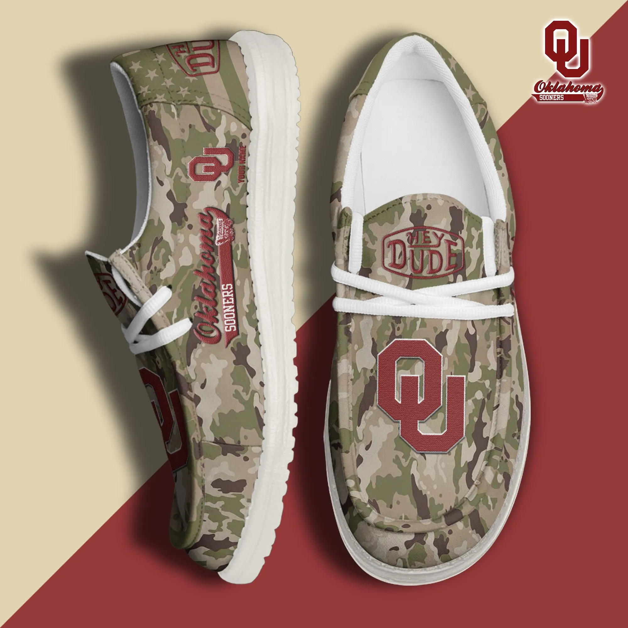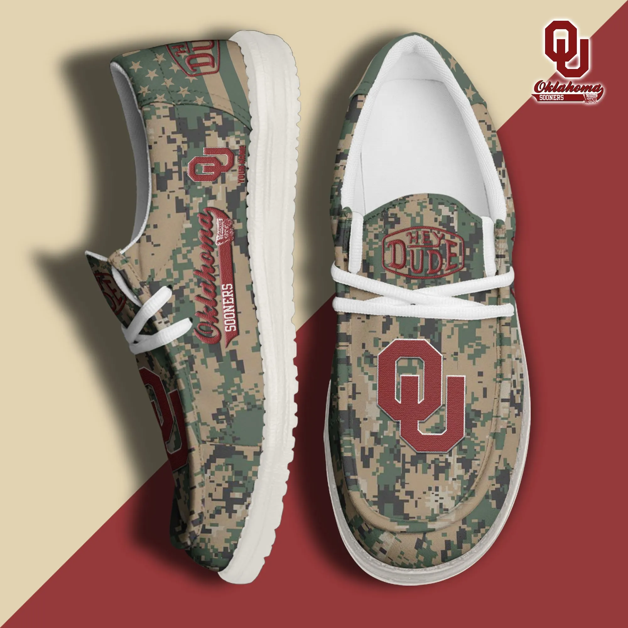 Oklahoma Sooners 3D Print Dude Shoes Camo Green For Men Women