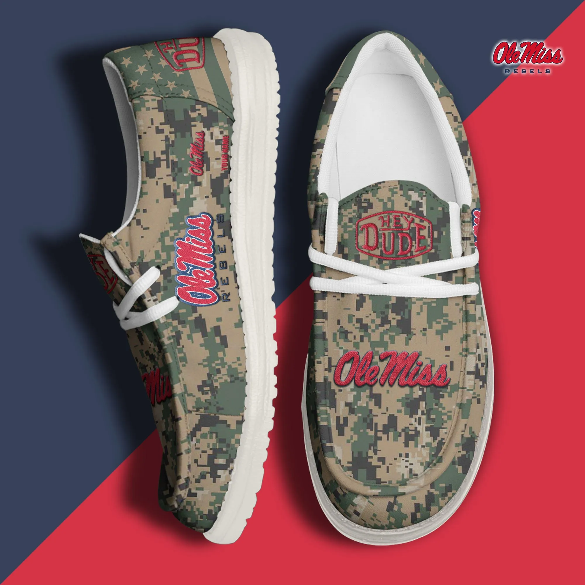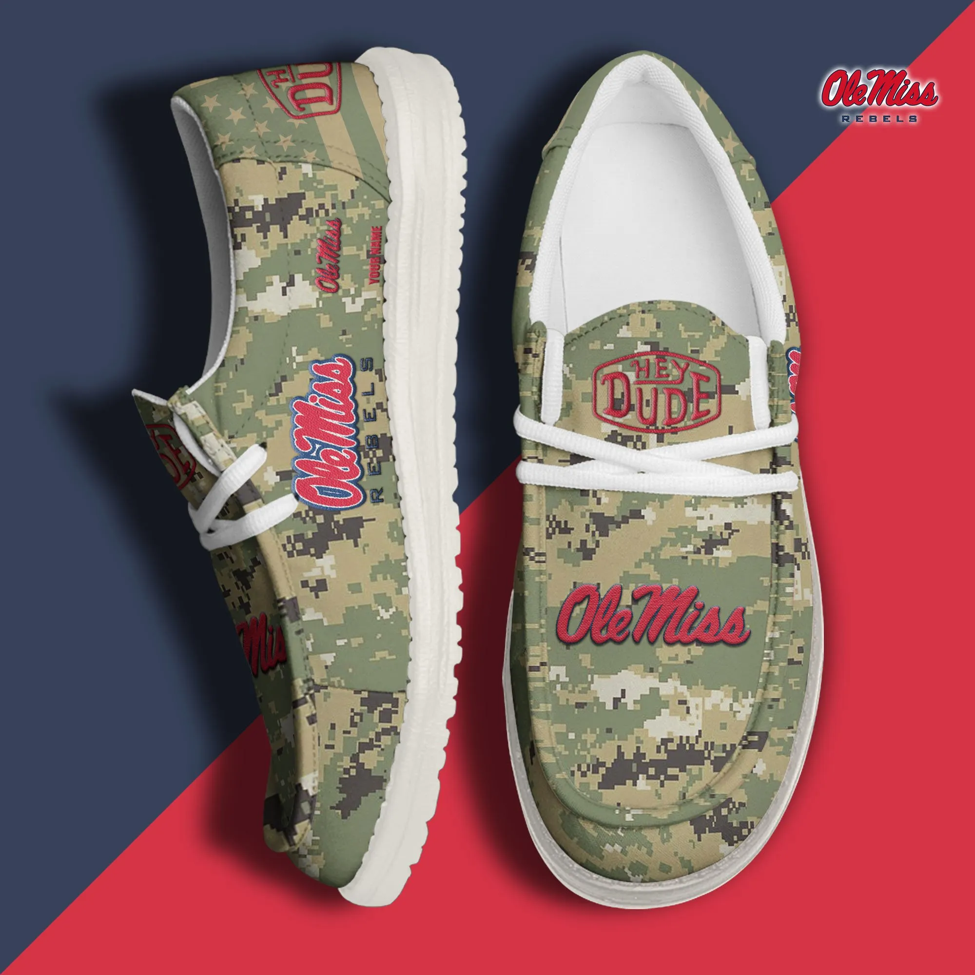 Ole Miss Rebels 3D Print Dude Shoes Camo Green Best Gift For Sport Fan
