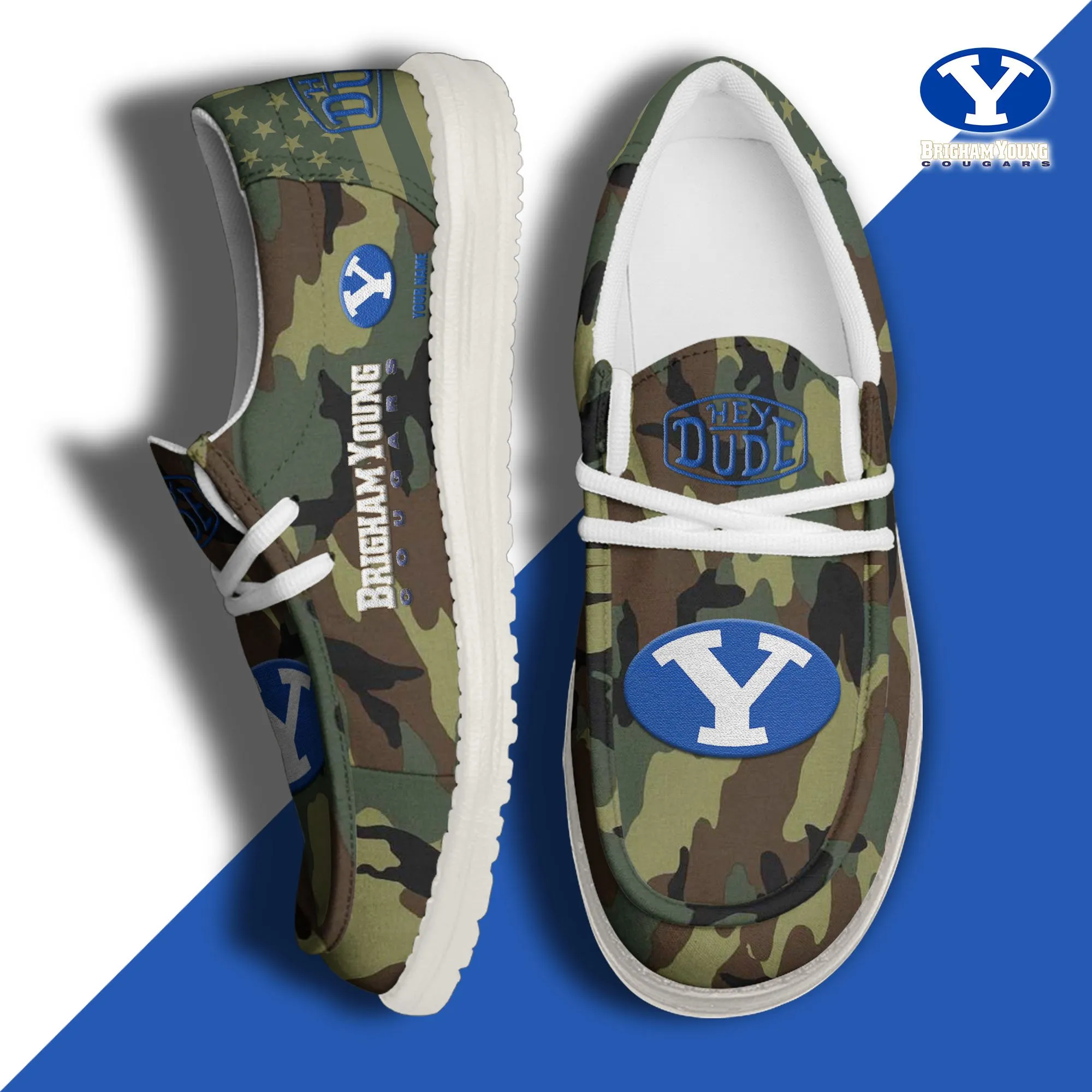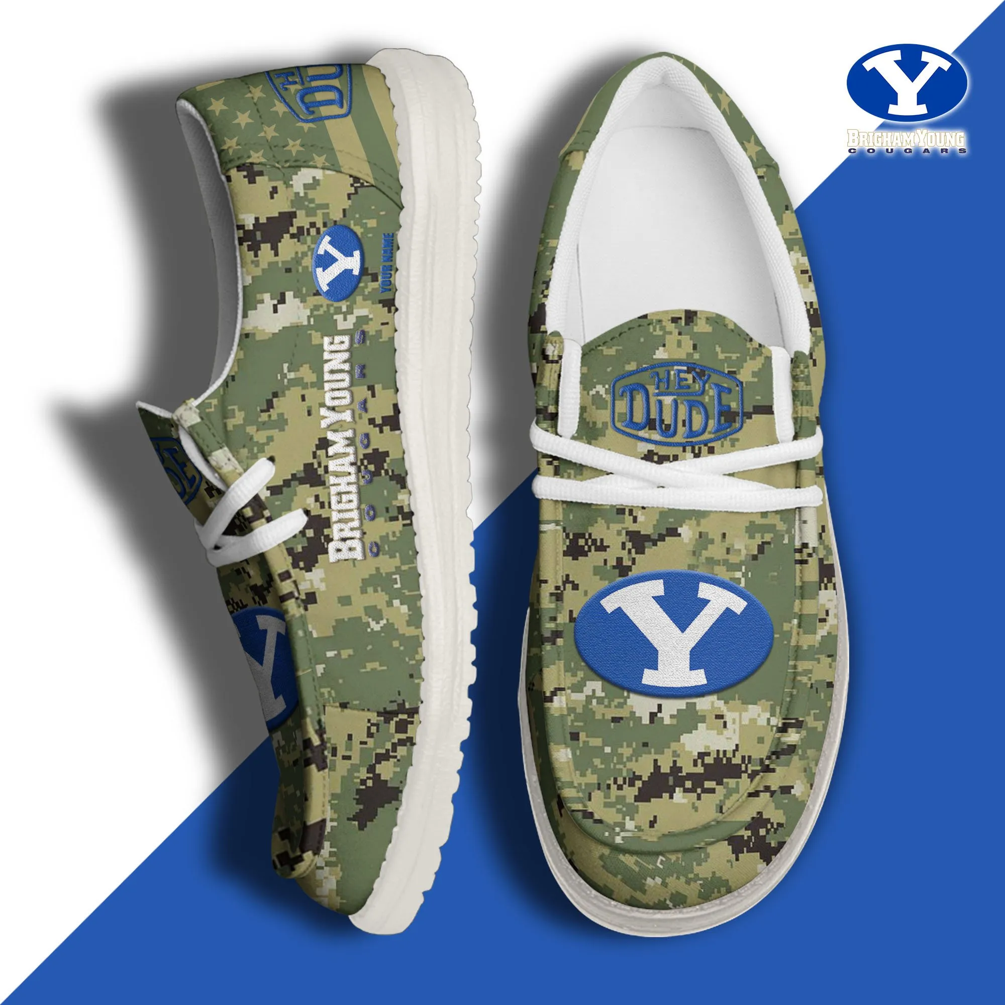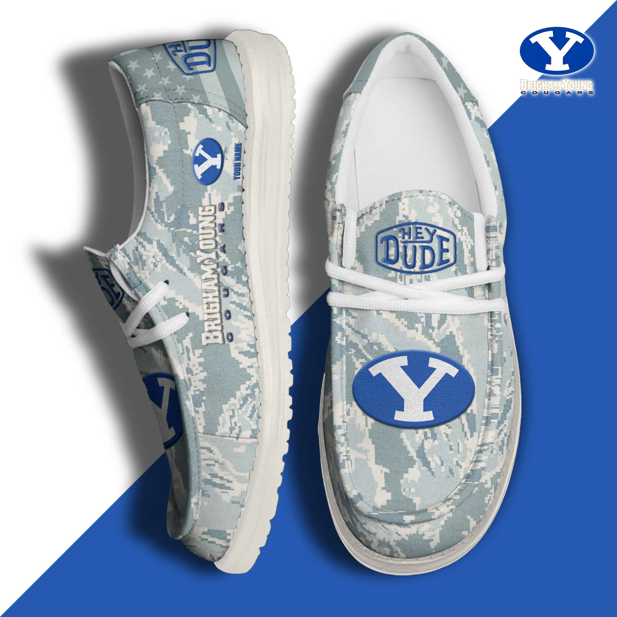 Byu Cougars 3D Print Dude Shoes Camo Grey Blue For Men Women