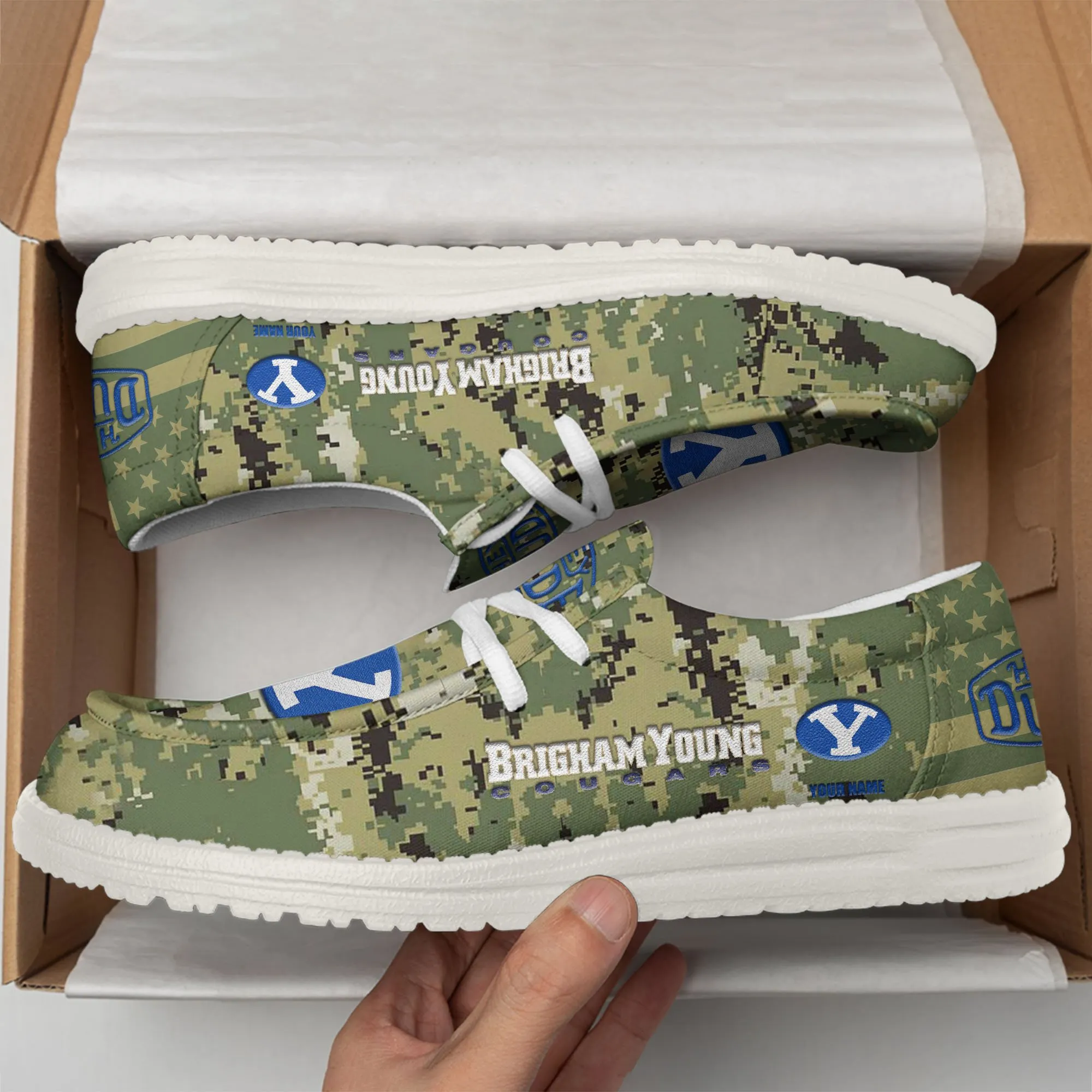 Byu Cougars 3D Print Dude Shoes Camo Green Best Gift For Sport Fan