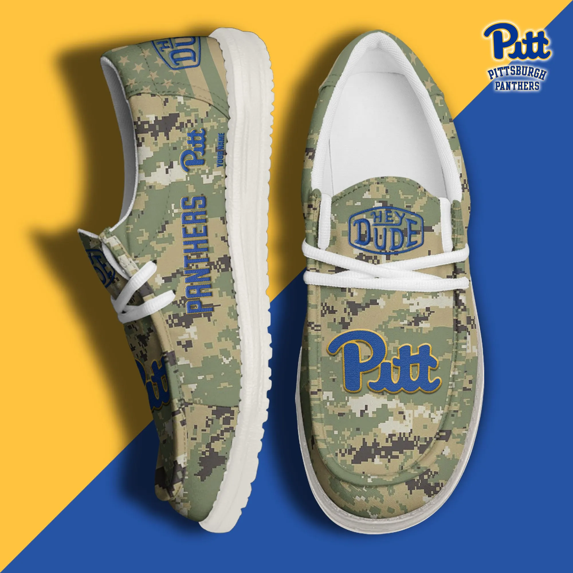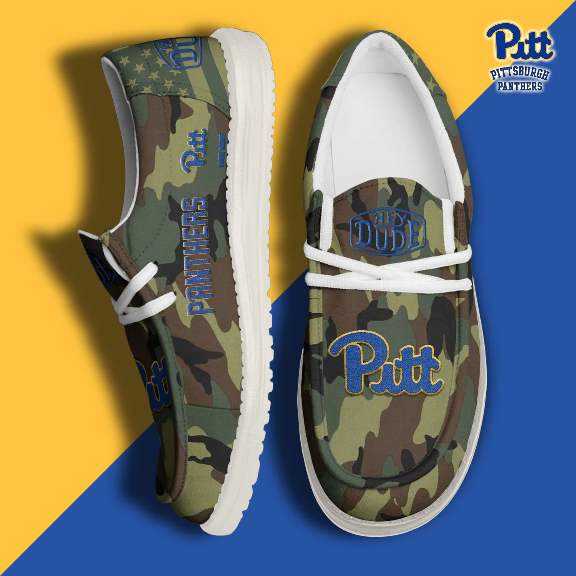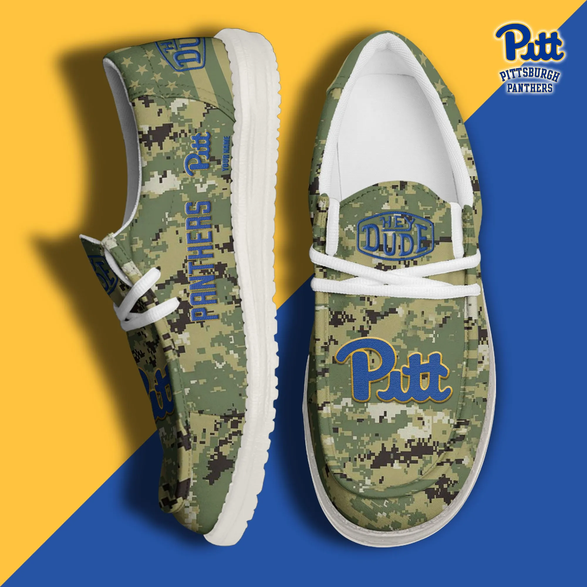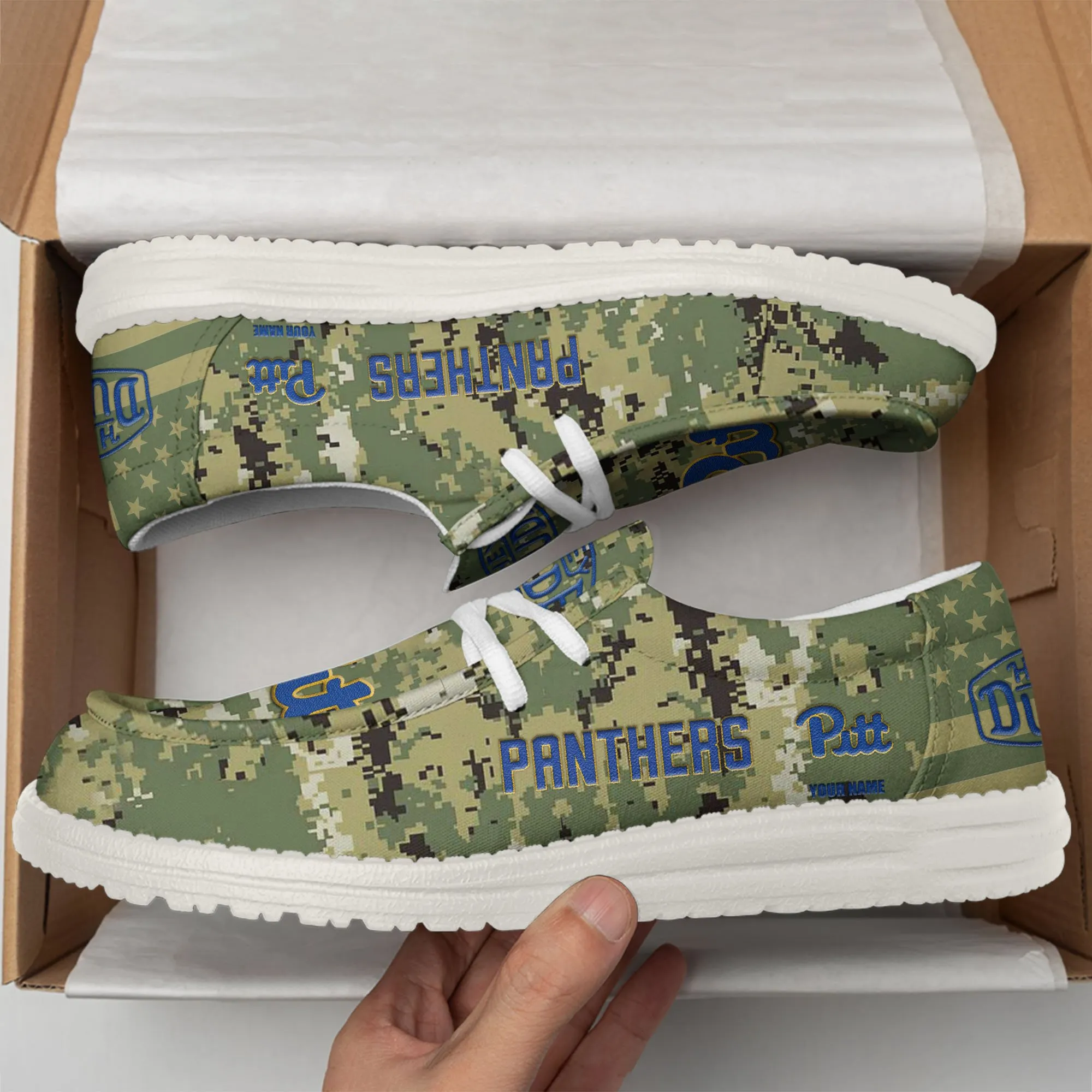 Pittsburgh Panthers 3D Print Dude Shoes Camo Green For Men Women