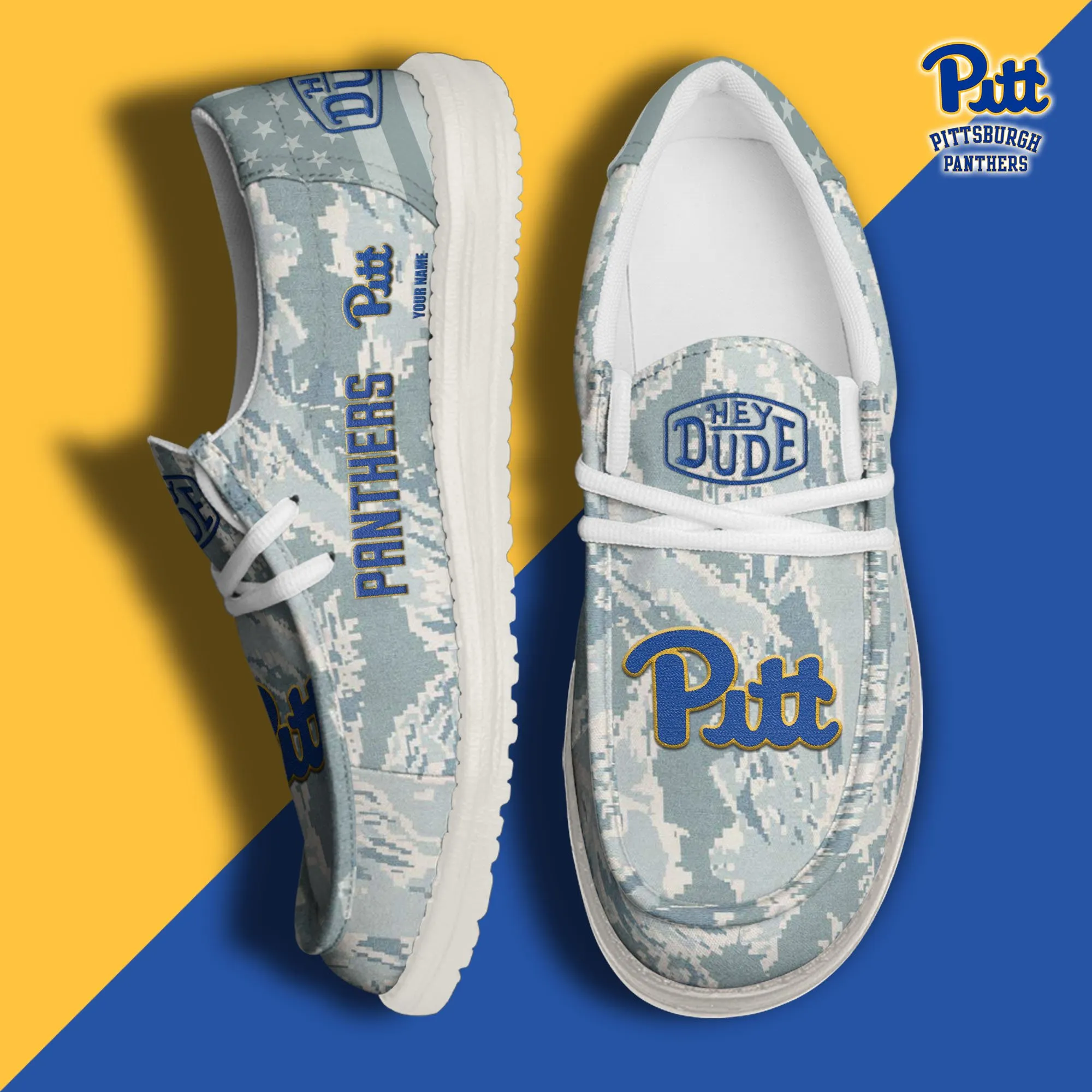 Pittsburgh Panthers 3D Print Dude Shoes Camo Blue Grey For Men Women