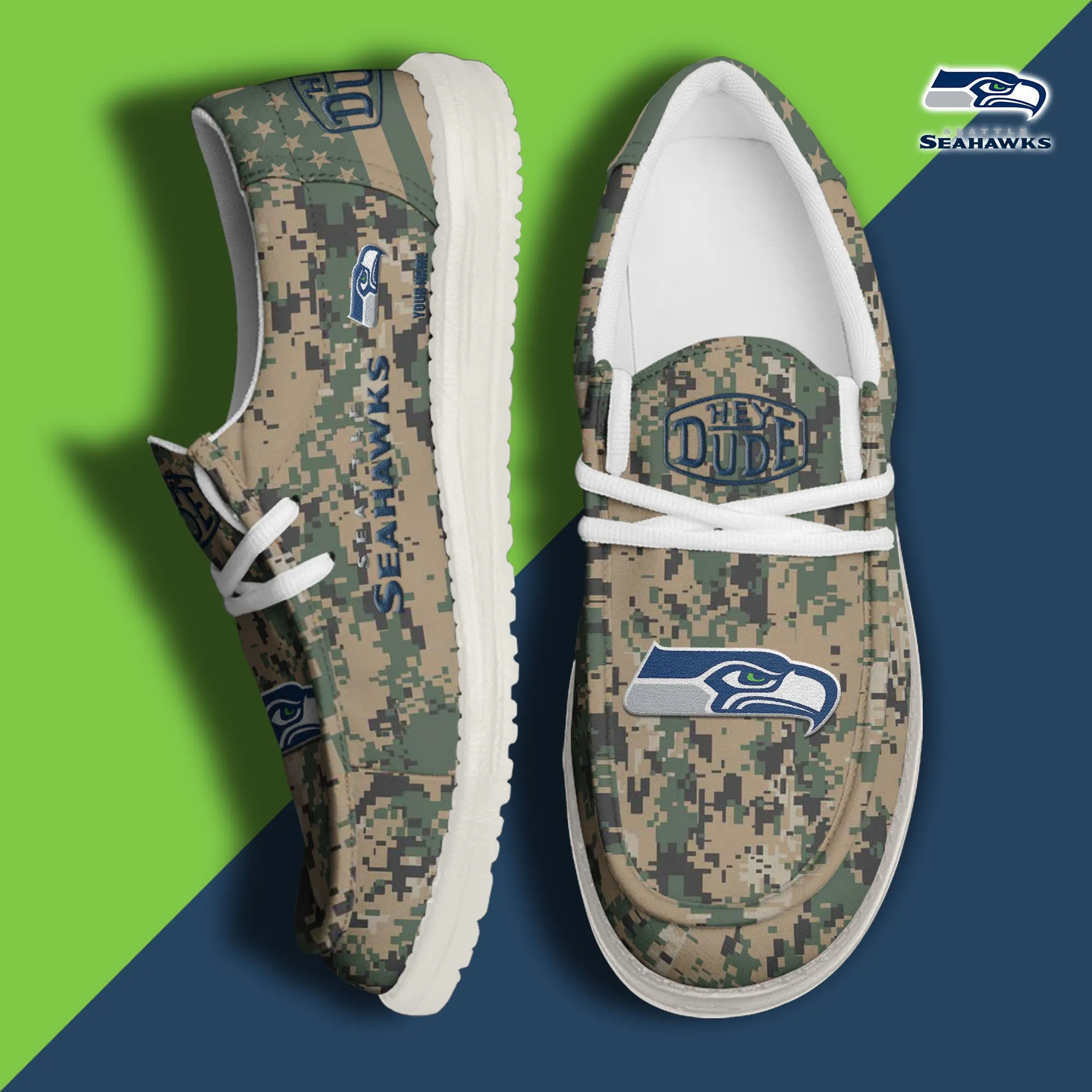Seattle Seahawks 3D Print Dude Shoes Camo Green For Men Women