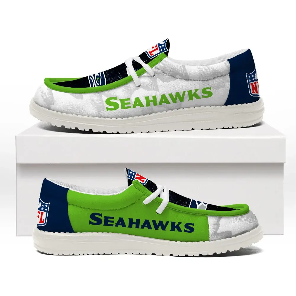 Seattle Seahawks 3D Print Dude Shoes Camo Blue Grey For Men Women
