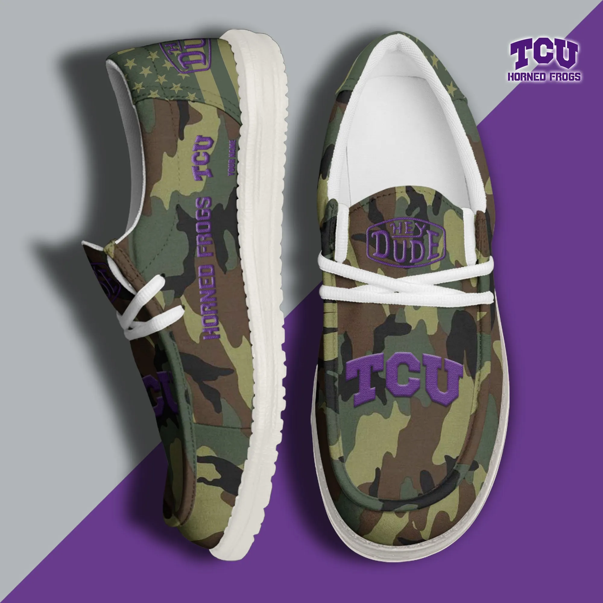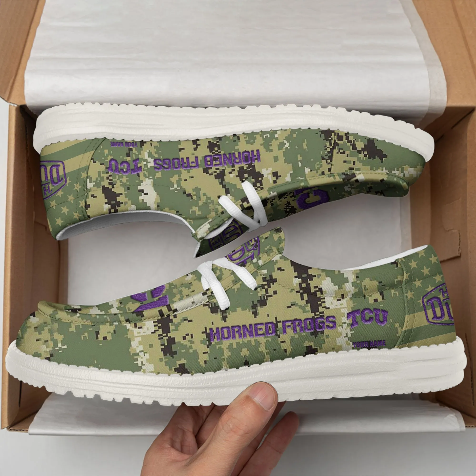 Tcu Horned Frogs 3D Print Dude Shoes Camo Green Best Gift For Sport Fan