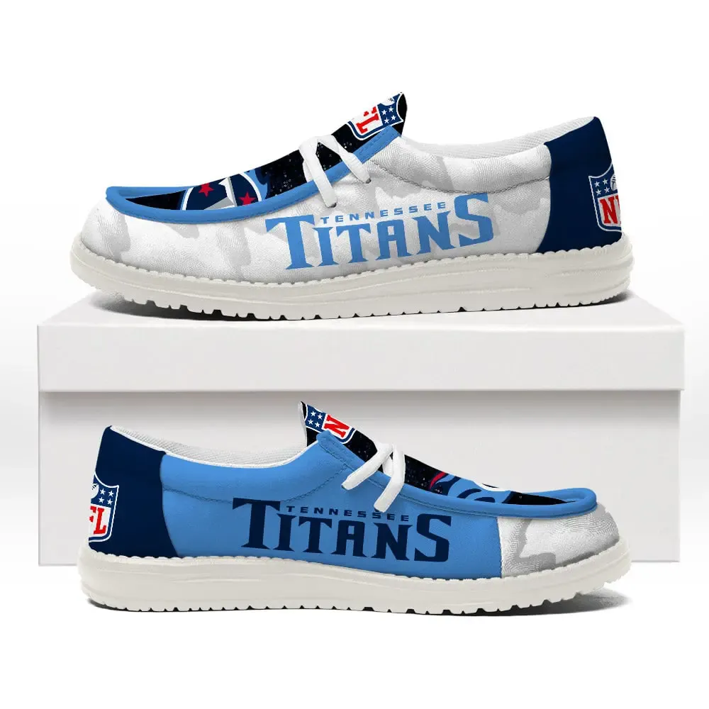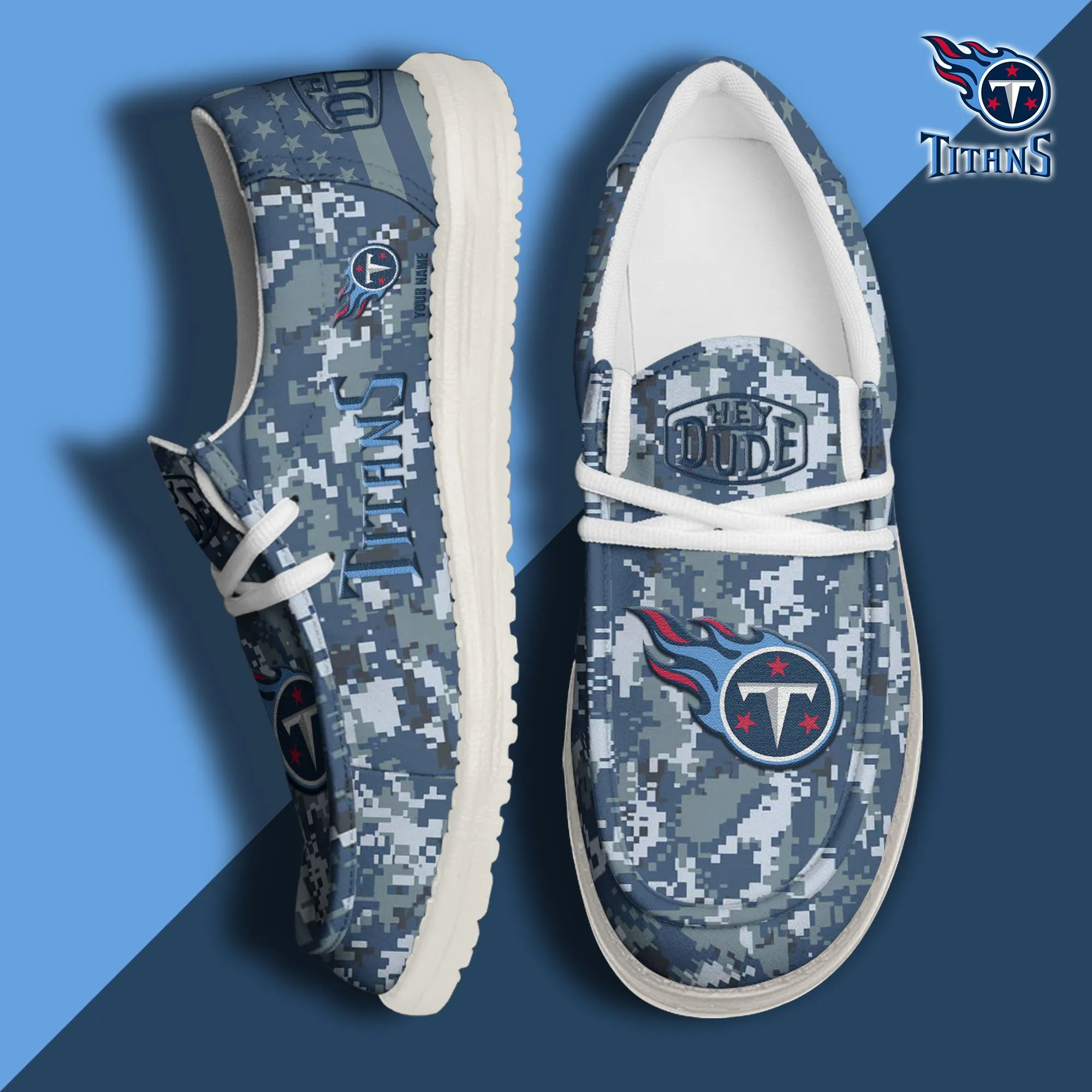 Tennessee Titans 3D Print Dude Shoes Camo Blue Grey For Men Women