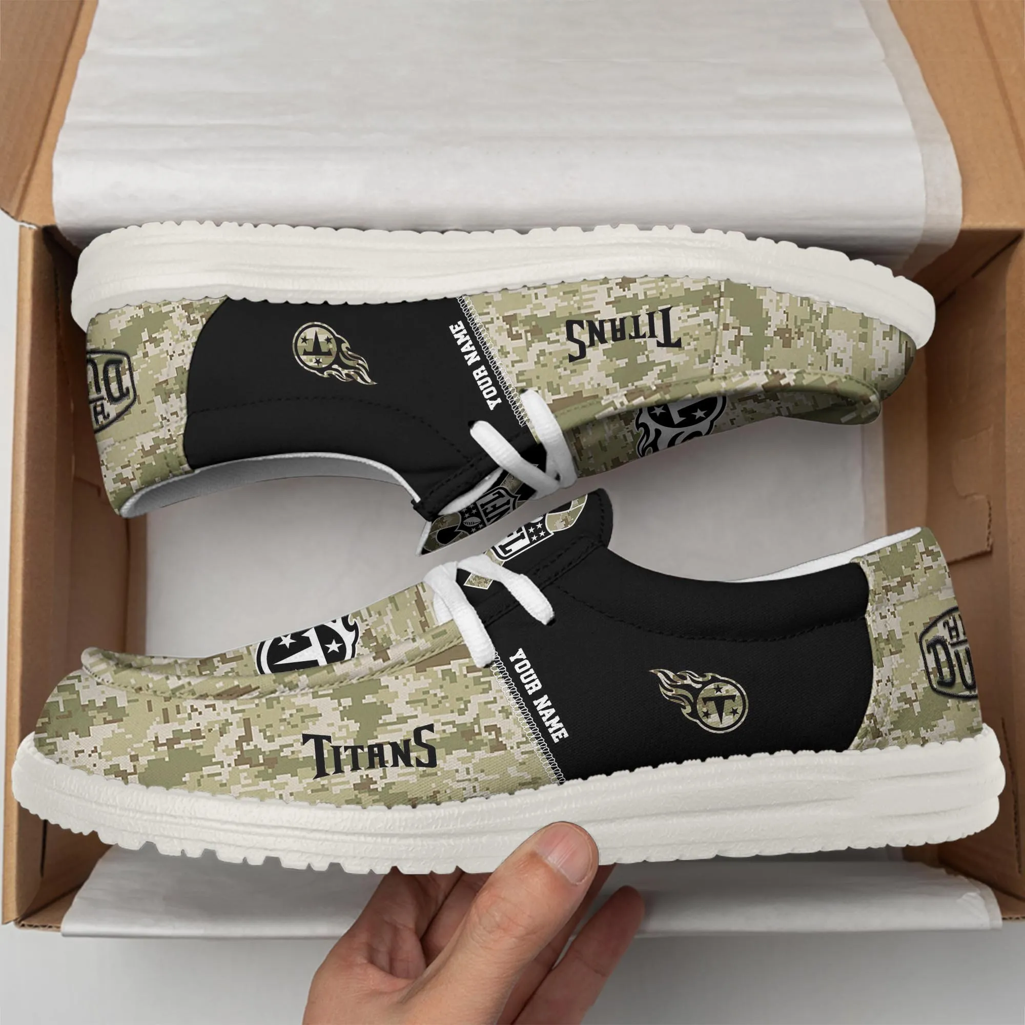 Tennessee Titans Custom Name Dude Shoes Camo