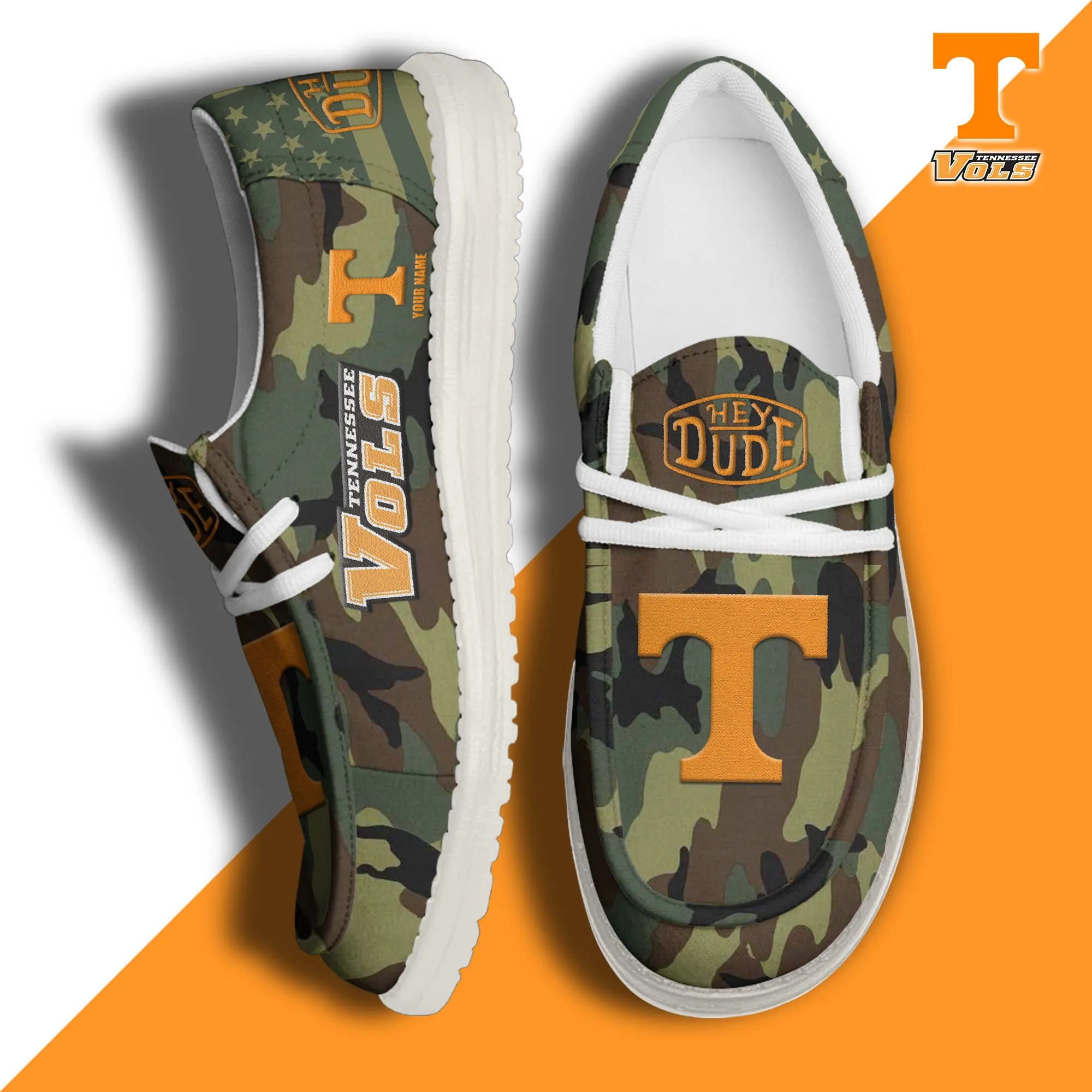 Tennessee Volunteers 3D Print Dude Shoes Camo Green Best Gift For Sport Fan