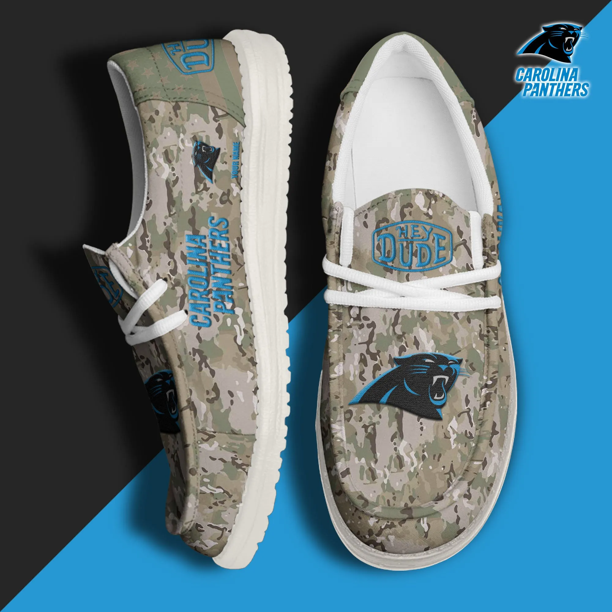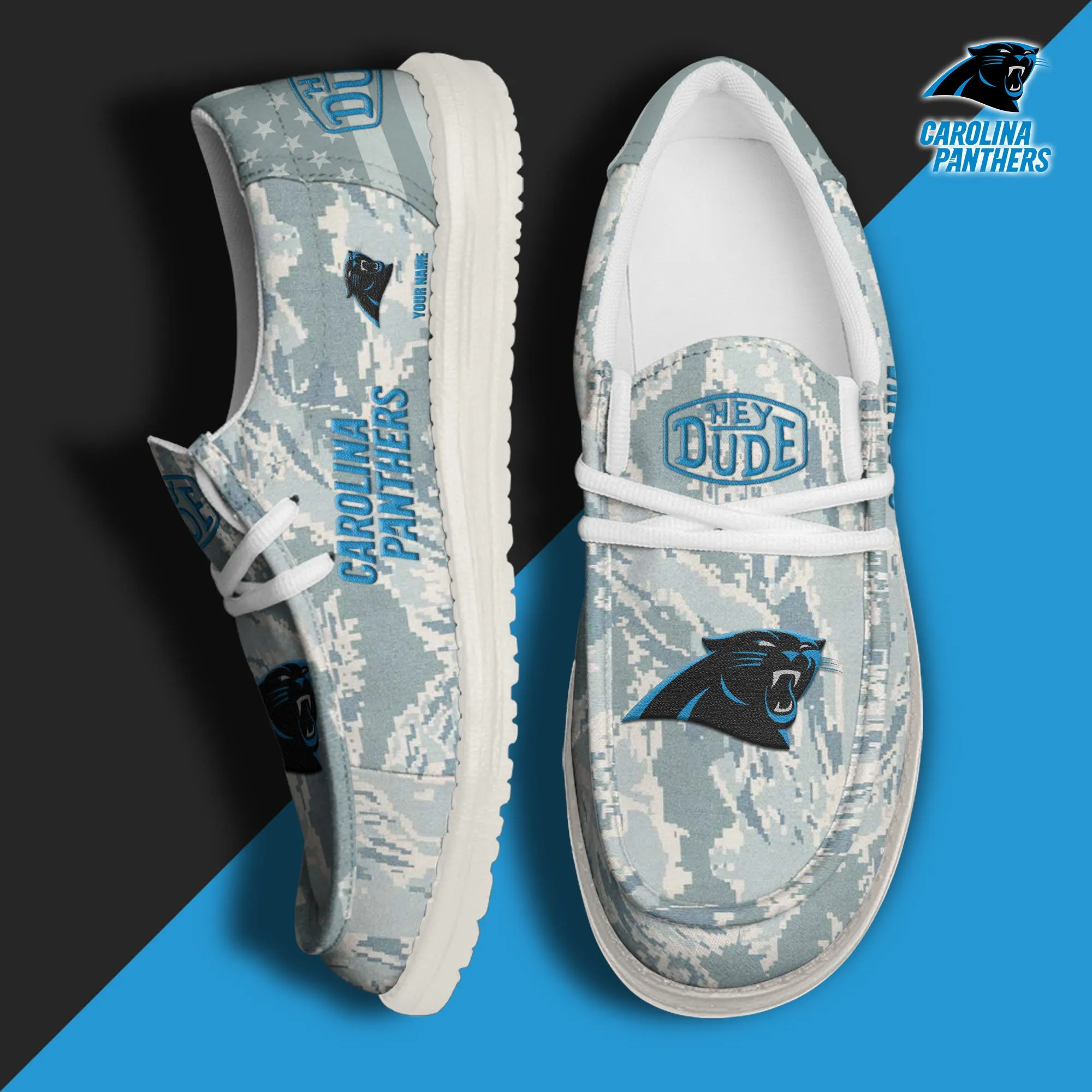 Carolina Panthers 3D Print Dude Shoes Camo Grey Blue For Men Women