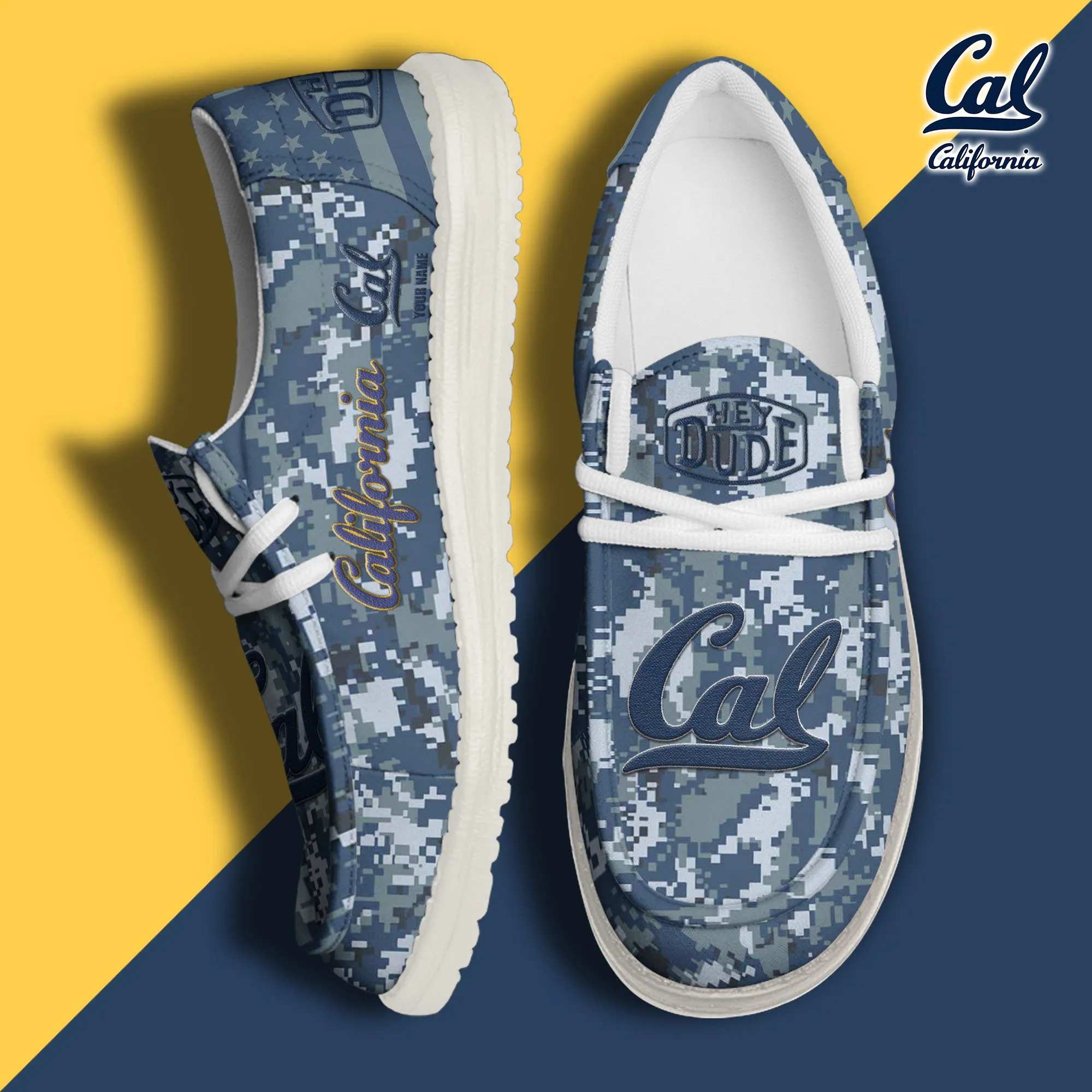 California Golden Bears 3D Print Dude Shoes Steel Blue For Men Women