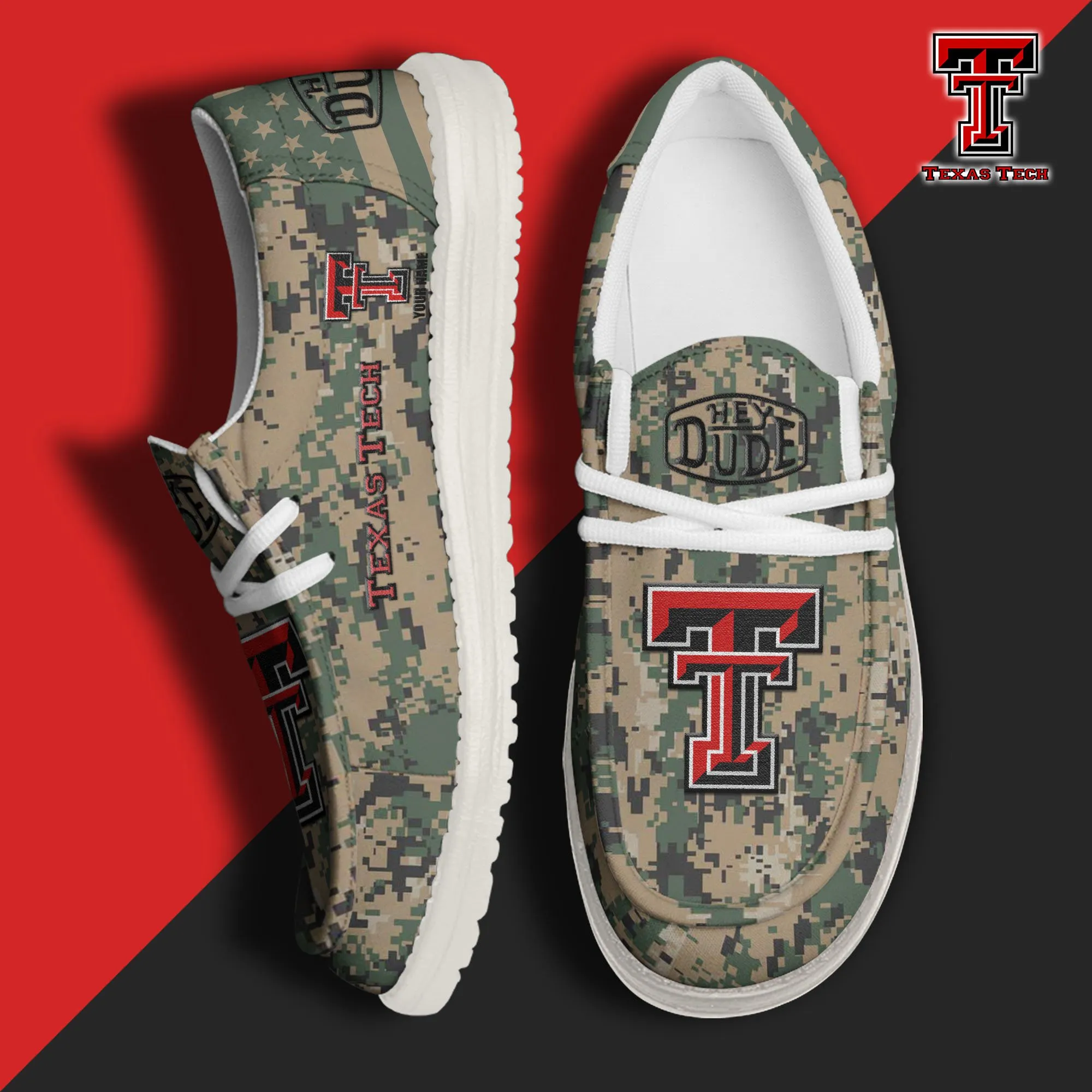 Texas Tech Red Raiders 3D Print Dude Shoes Camo Green Best Gift For Sport Fan