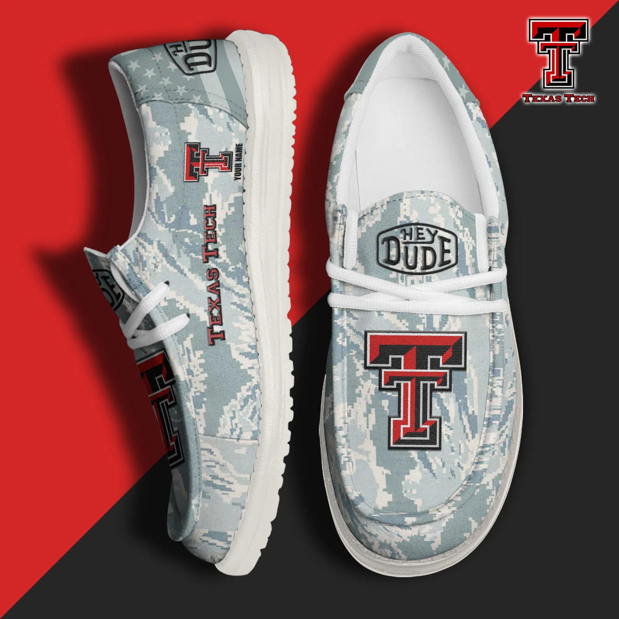 Texas Tech Red Raiders 3D Print Dude Shoes Camo Blue Grey For Men Women