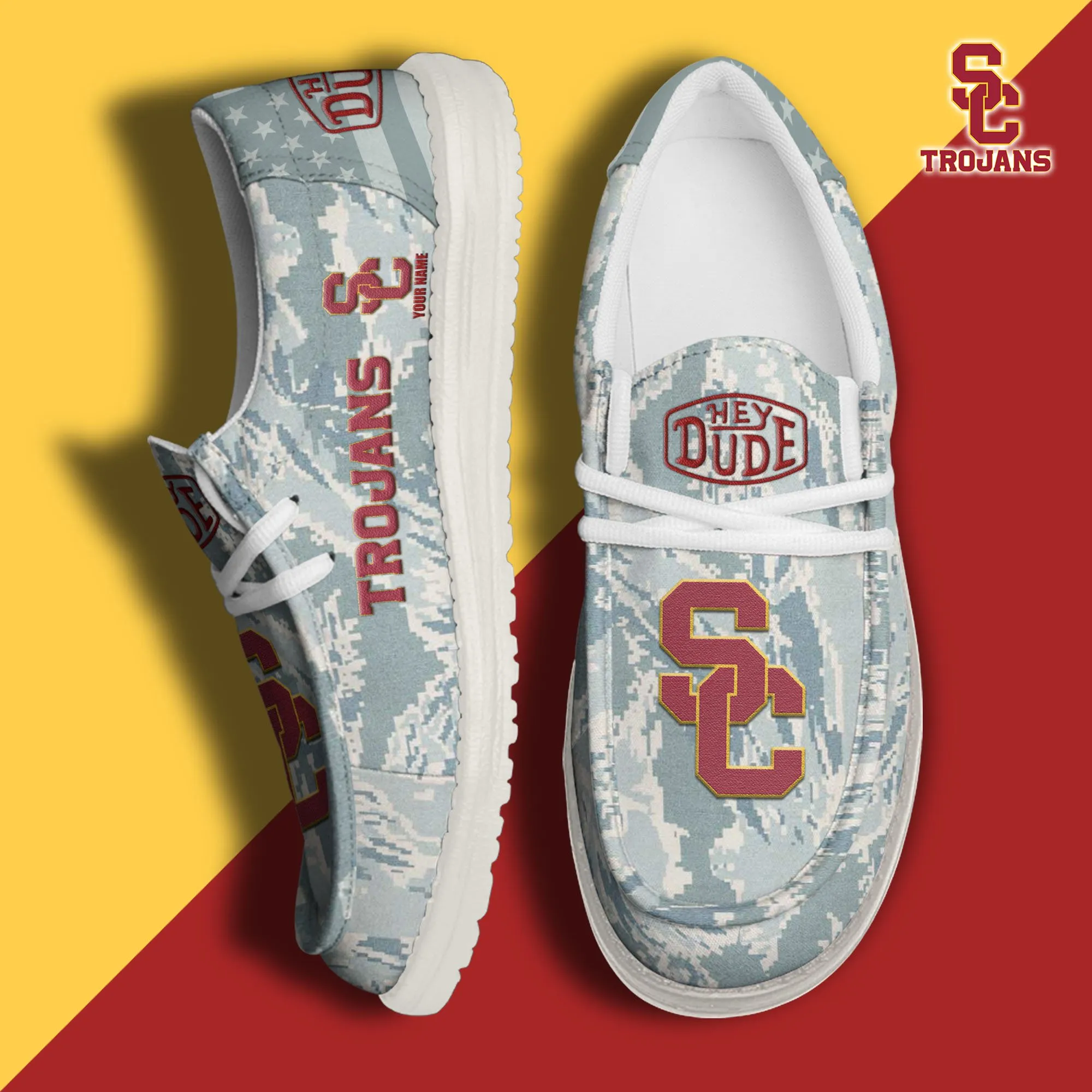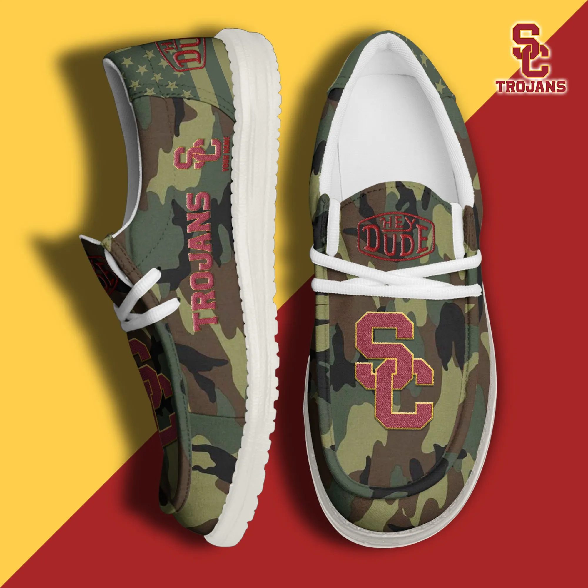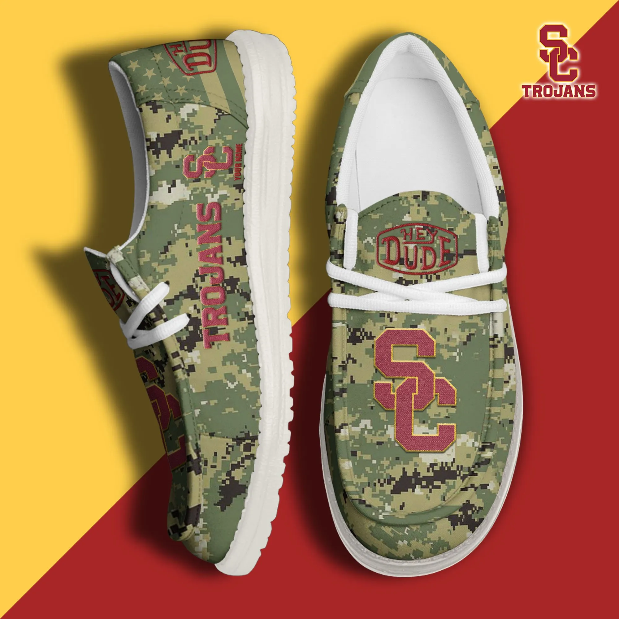 Usc Trojans 3D Print Dude Shoes Camo Green Best Gift For Sport Fan