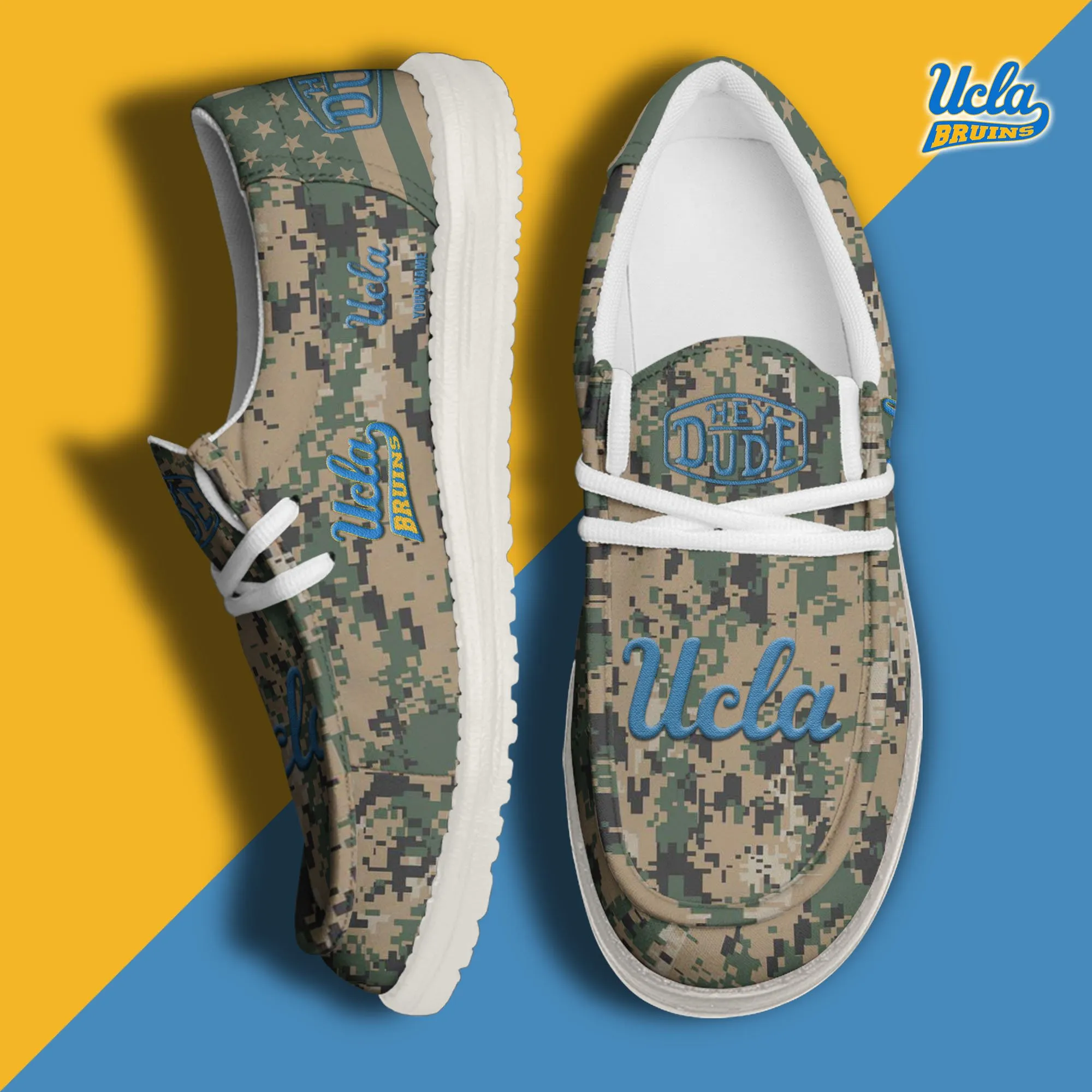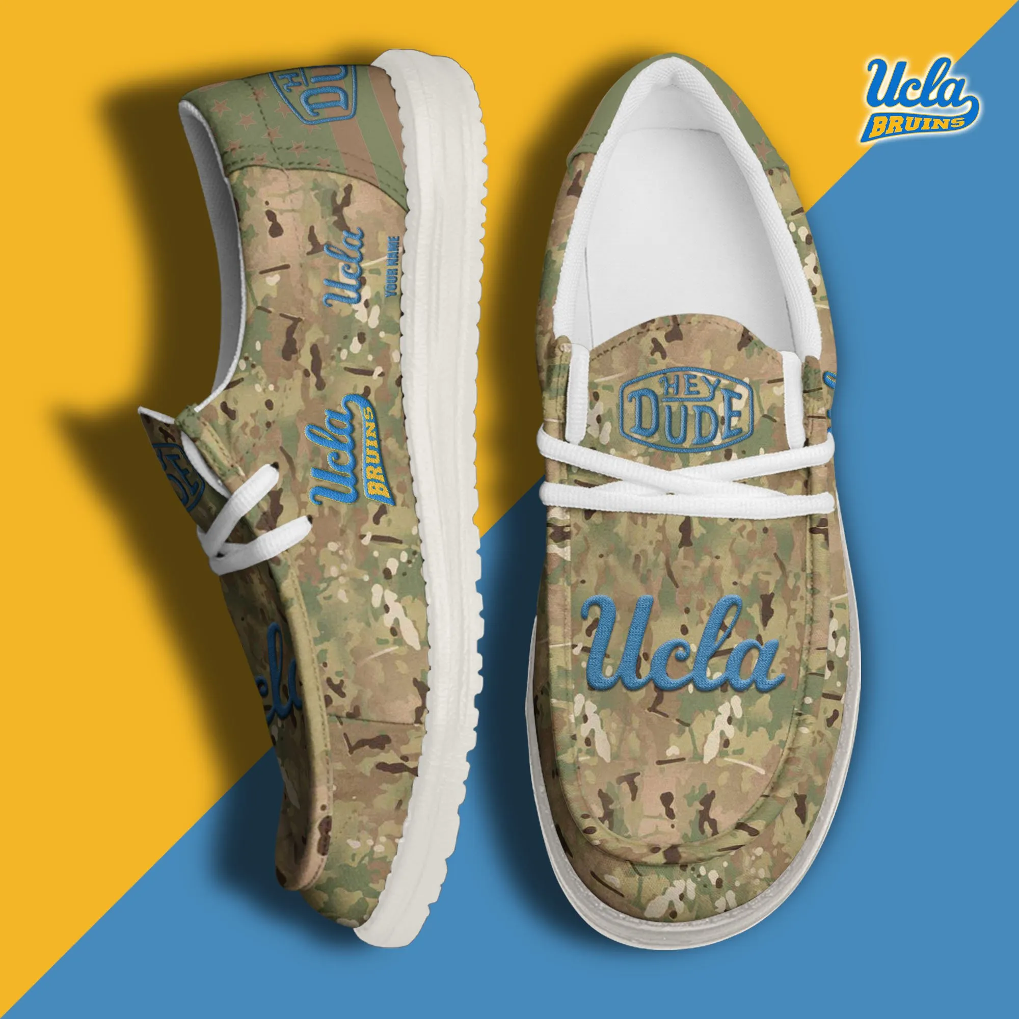 Ucla Bruins 3D Print Dude Shoes Camo Green For Men Women
