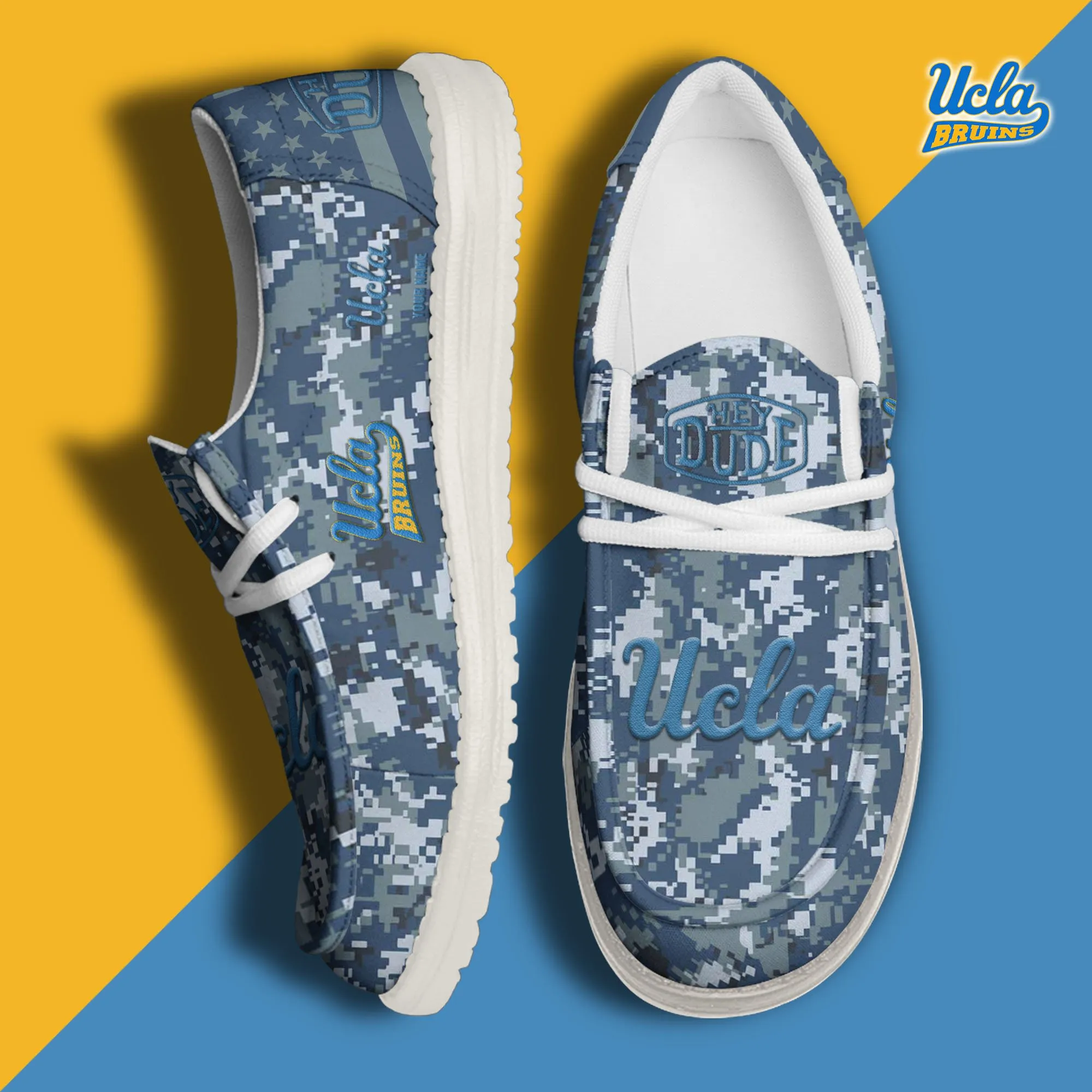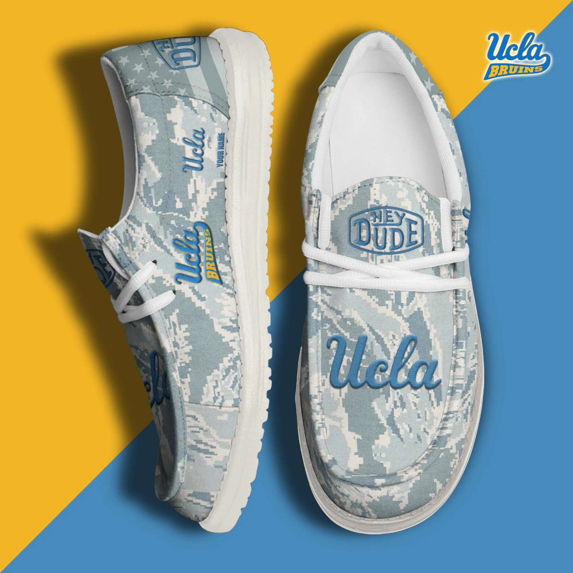 Ucla Bruins 3D Print Dude Shoes Camo Blue Grey For Men Women