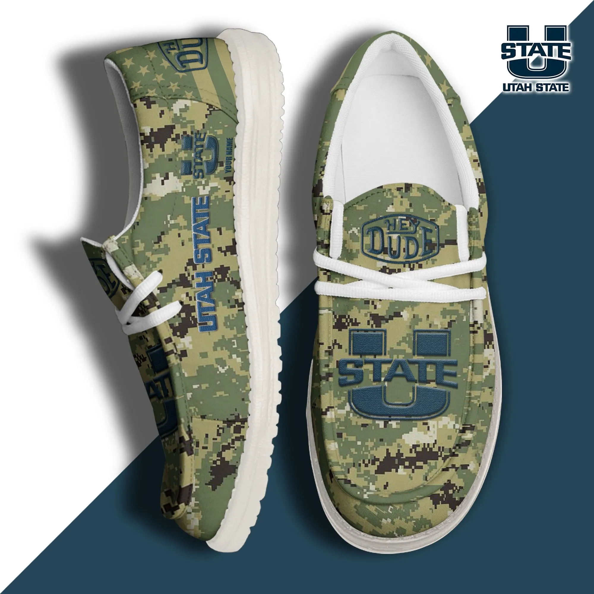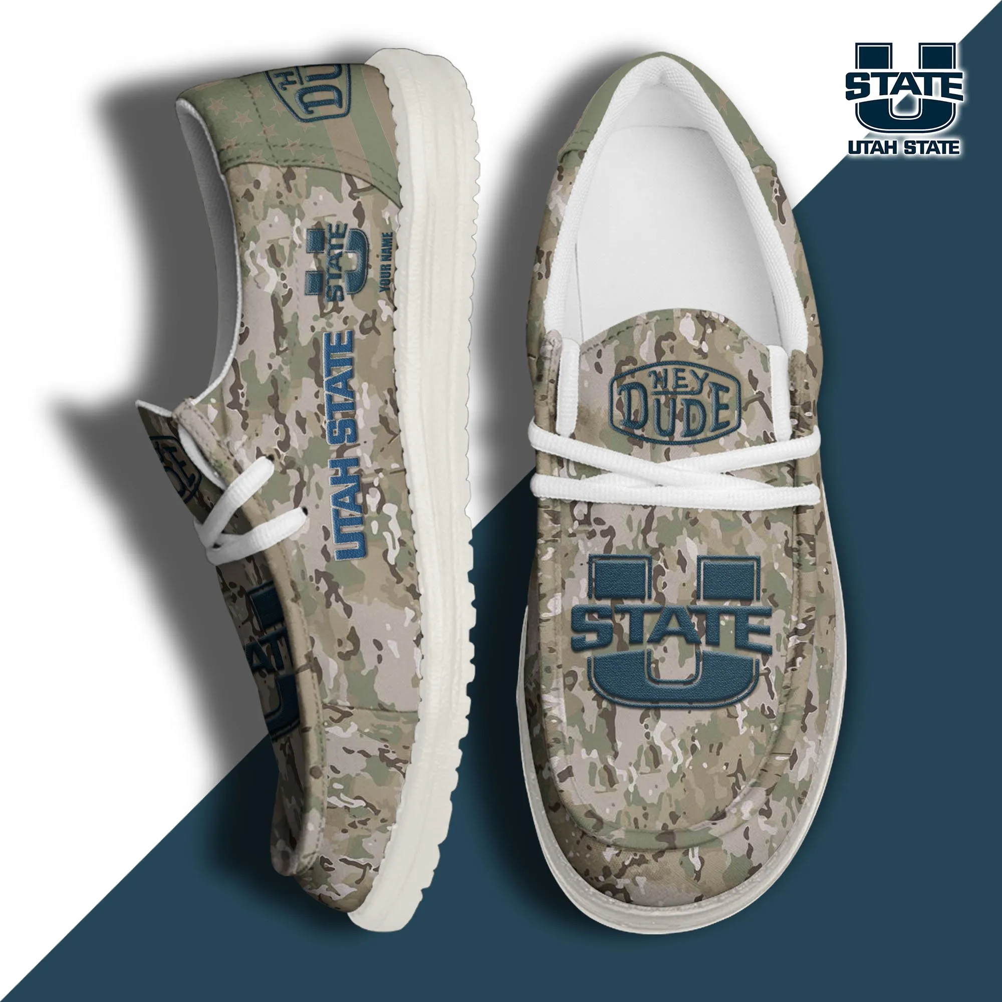 Utah State Aggies 3D Print Dude Shoes Camo Green Best Gift For Sport Fan