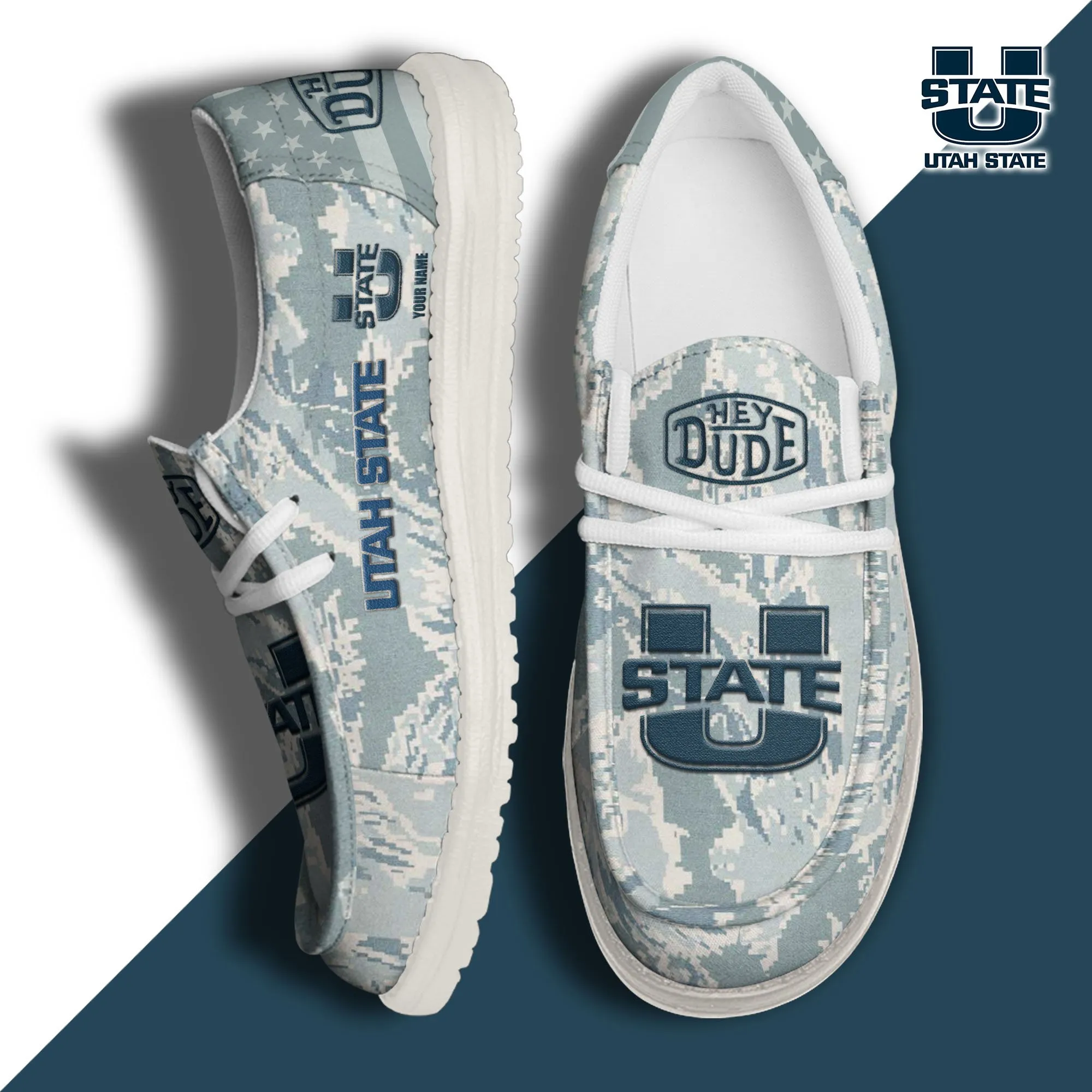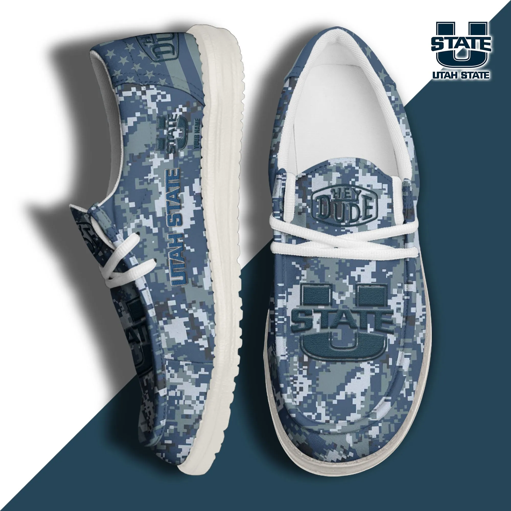 Utah State Aggies 3D Print Dude Shoes Camo Blue Grey For Men Women