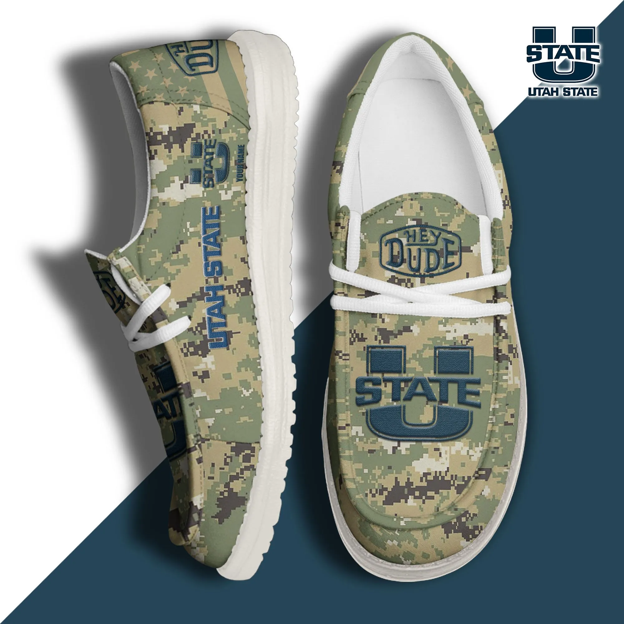 Utah State Aggies 3D Print Dude Shoes Camo Green For Men Women