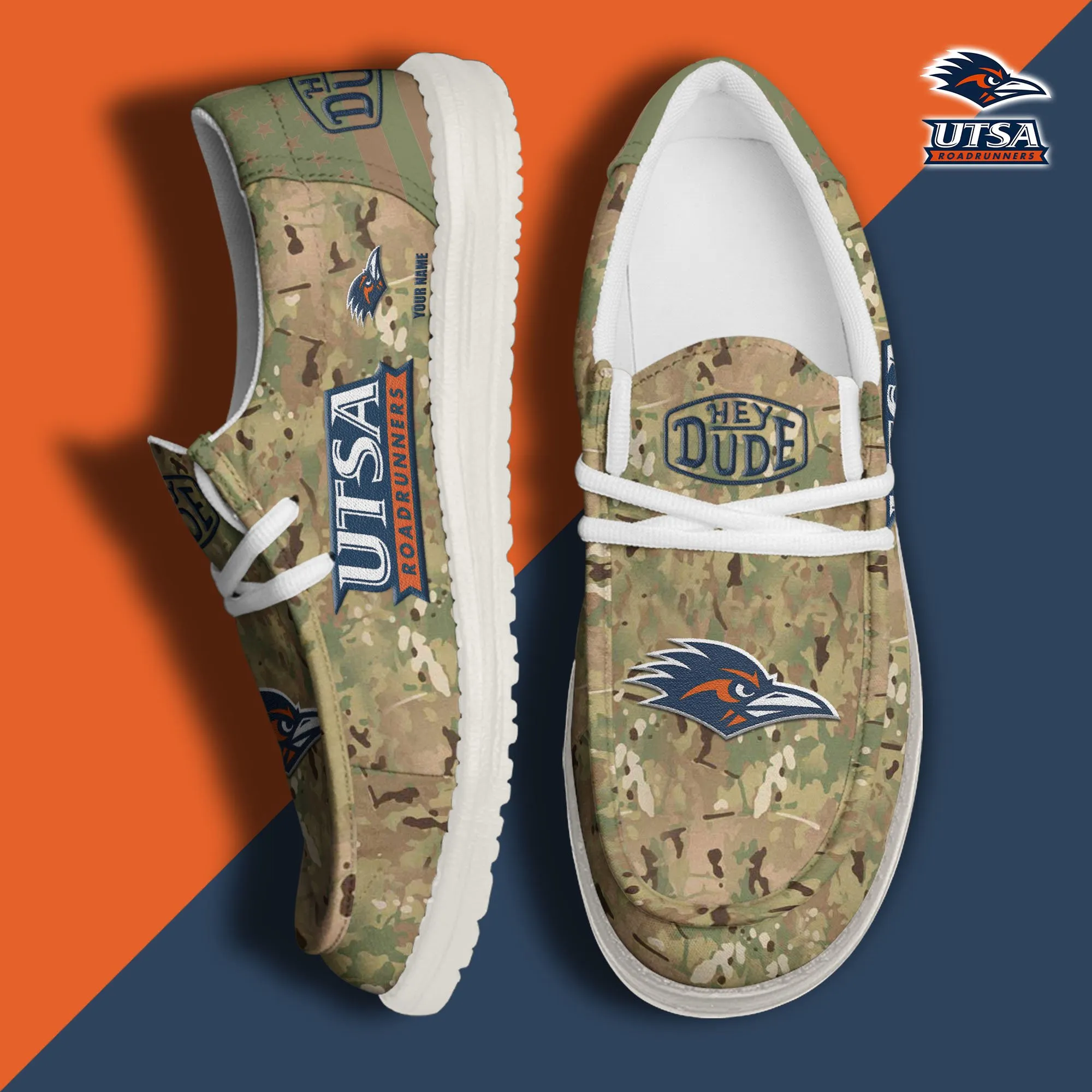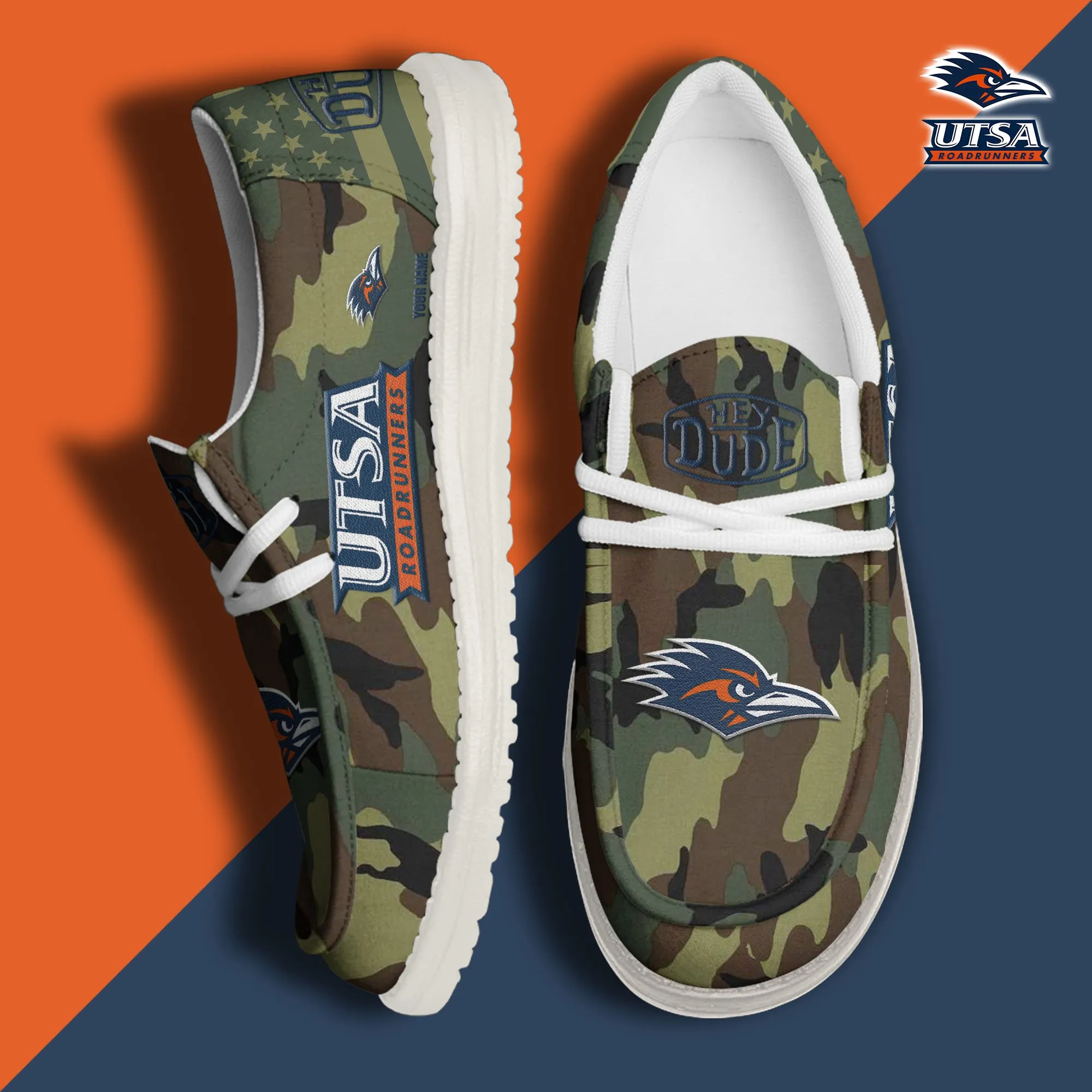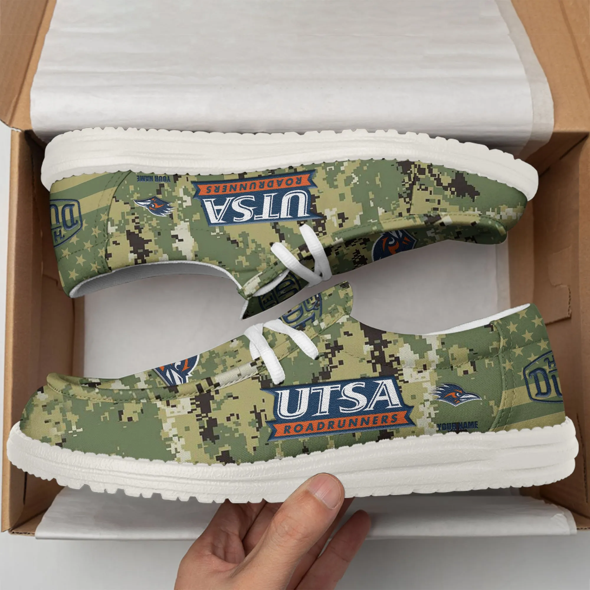 Utsa Roadrunners 3D Print Dude Shoes Camo Green Best Gift For Sport Fan