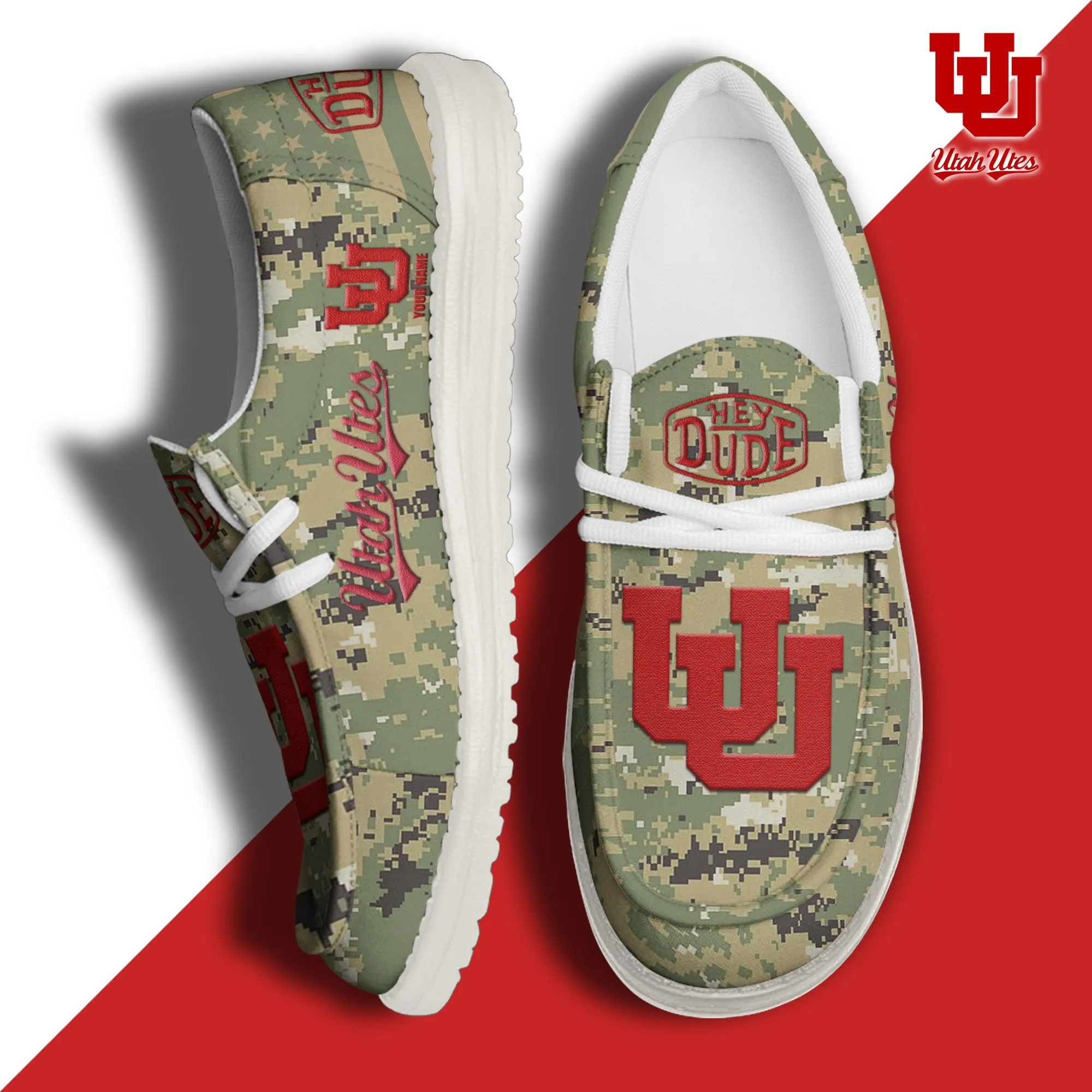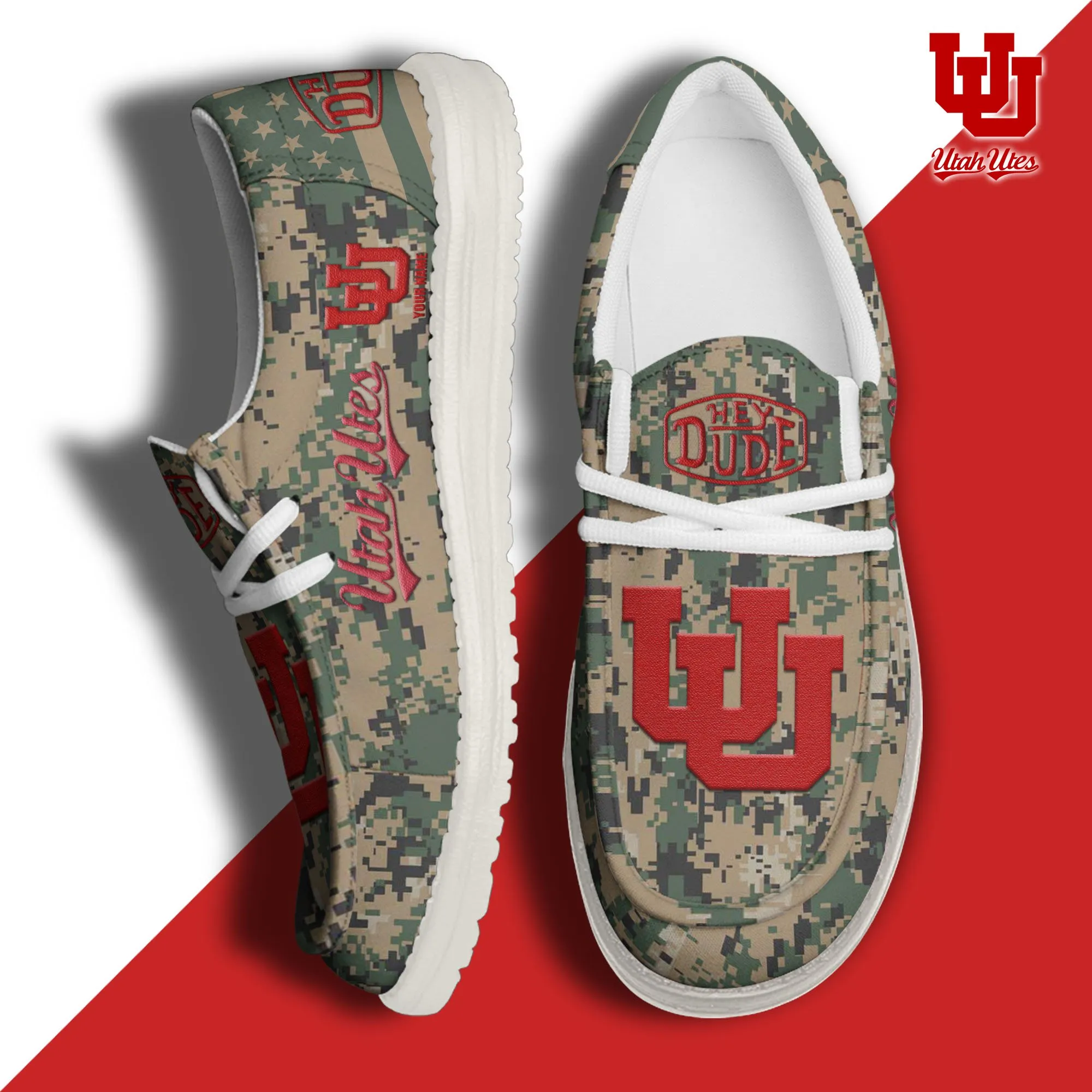 Utah Utes 3D Print Dude Shoes Camo Green For Men Women