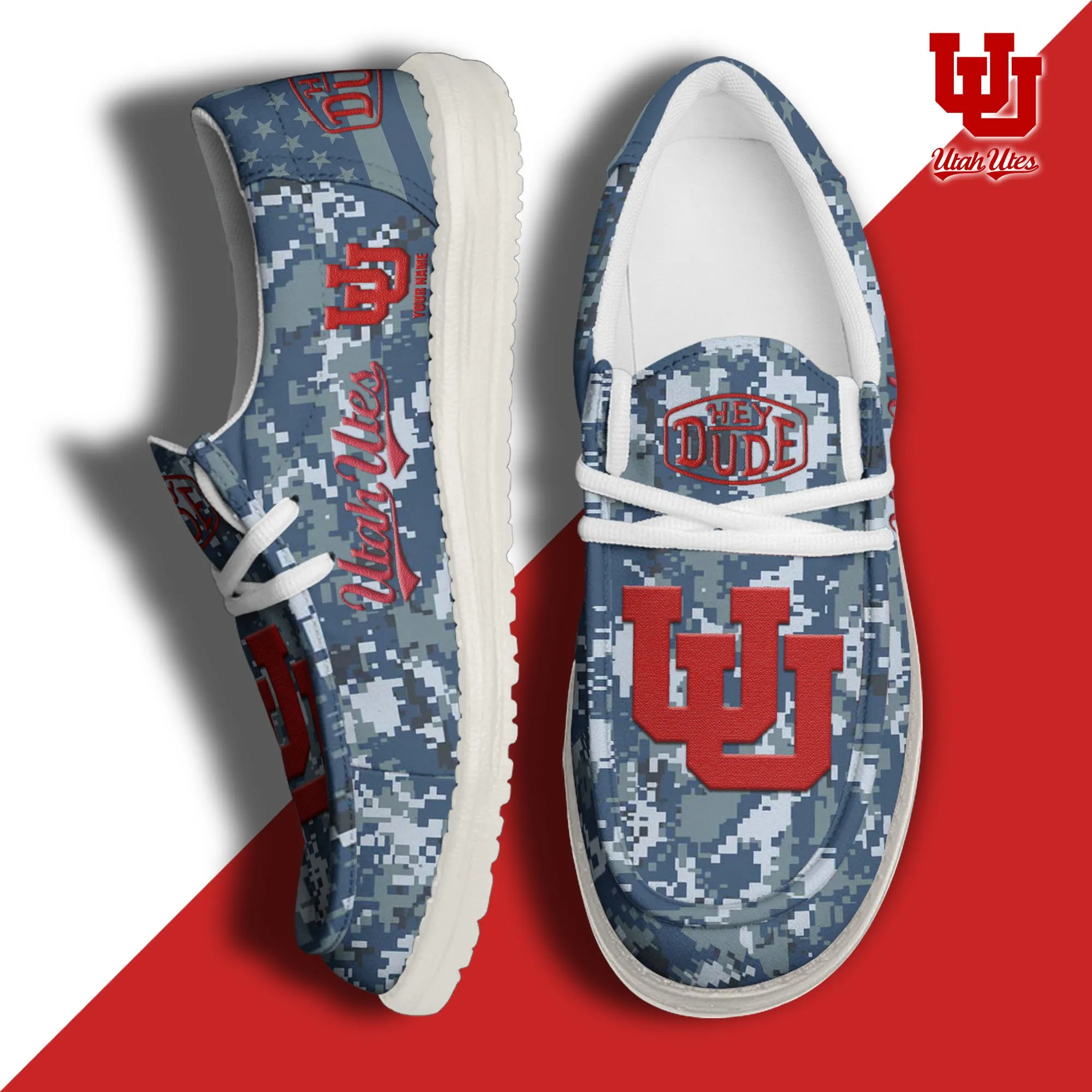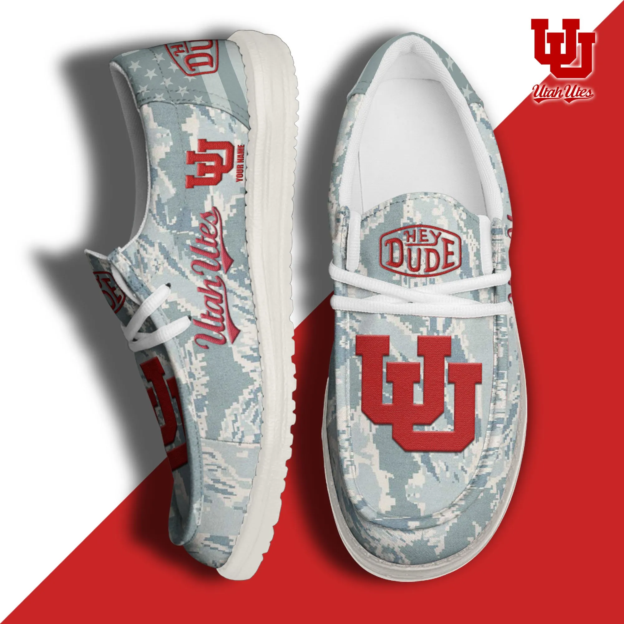Utah Utes 3D Print Dude Shoes Camo Blue Grey For Men Women
