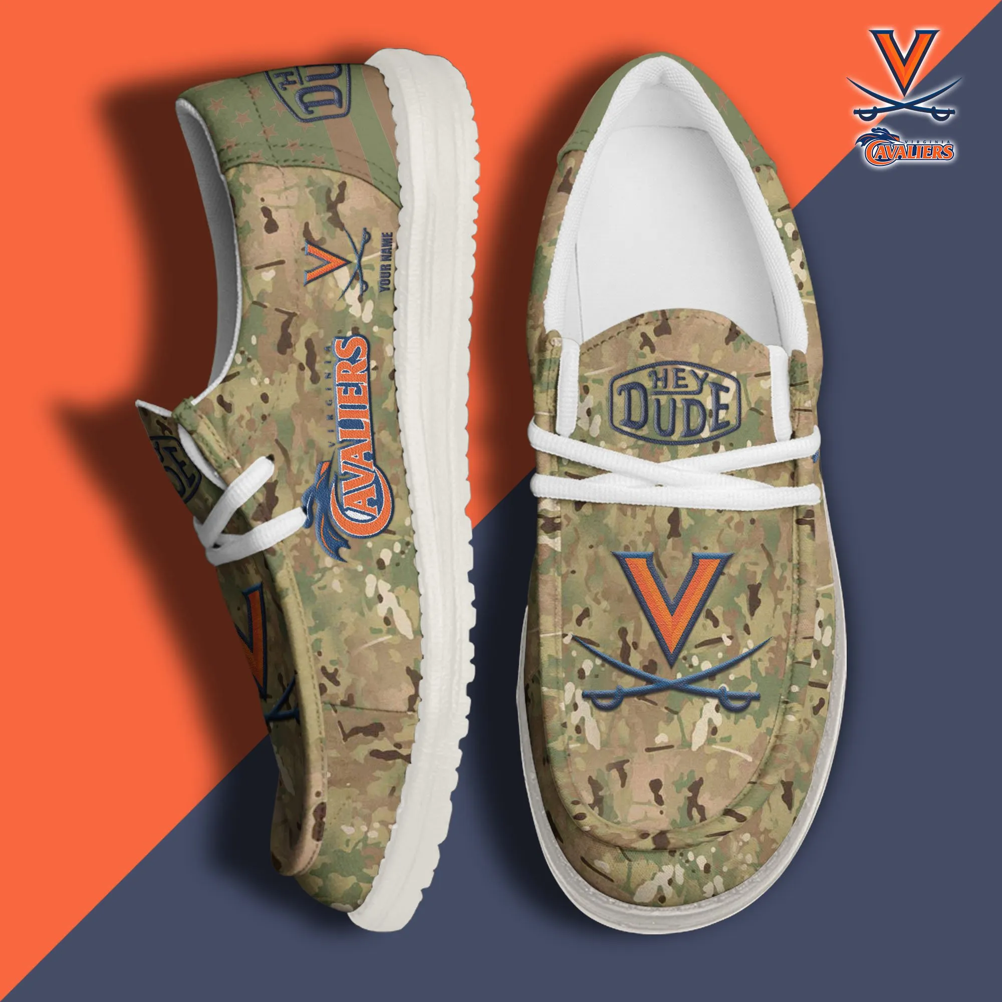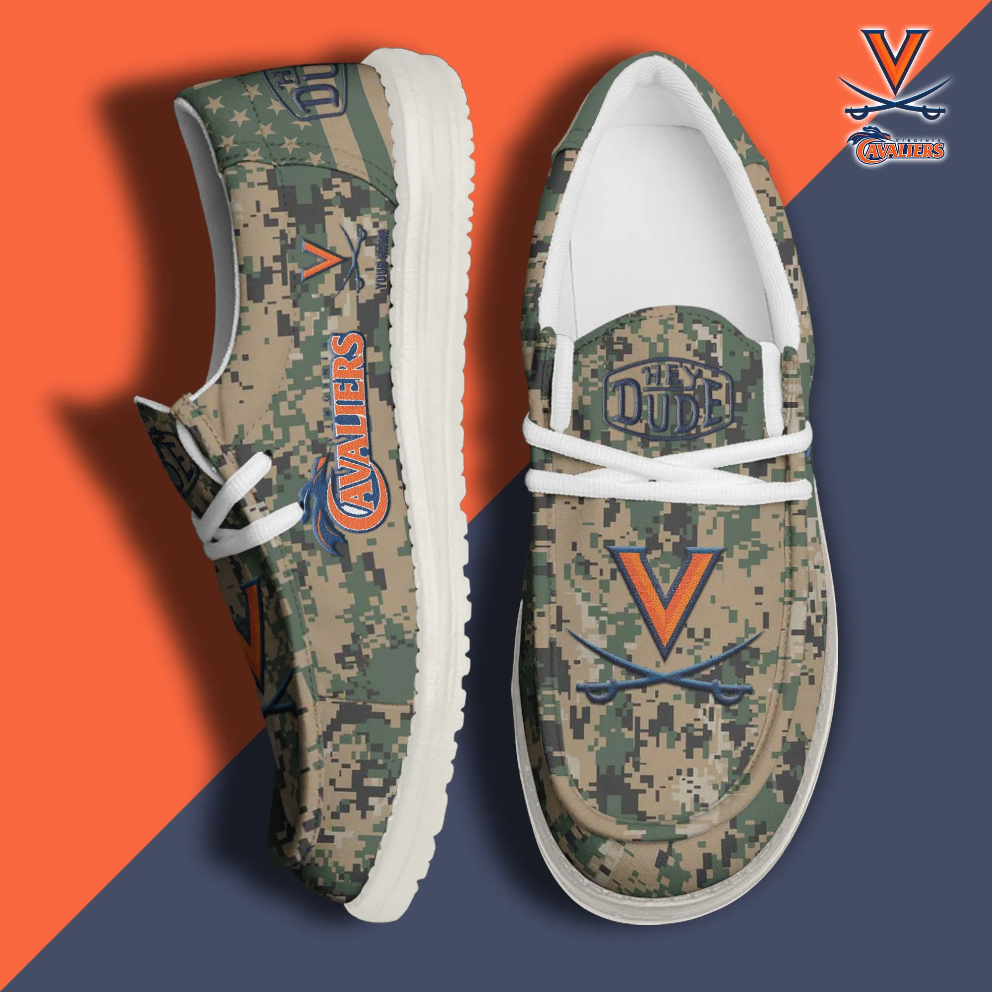 Virginia Cavaliers 3D Print Dude Shoes Camo Green Best Gift For Sport Fan