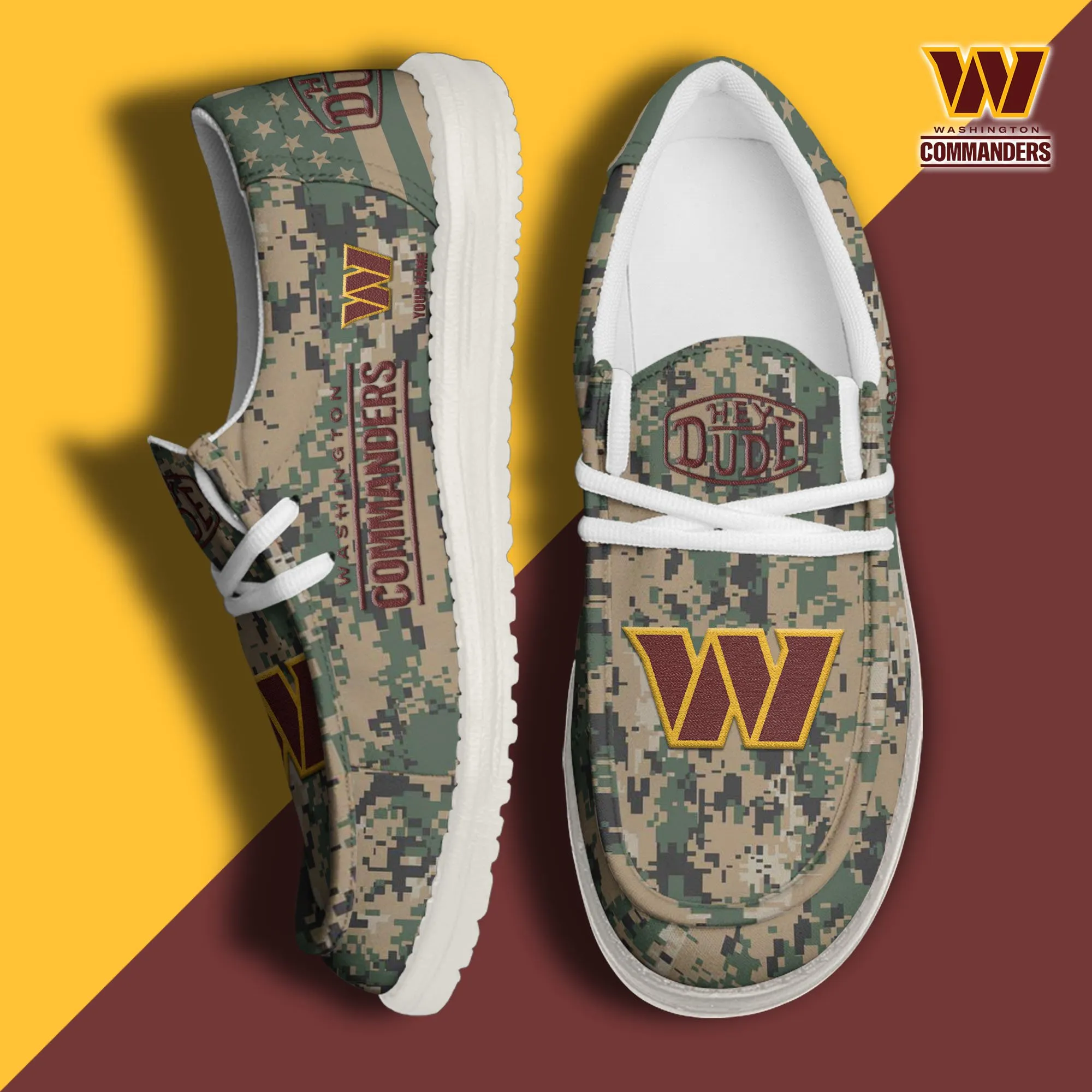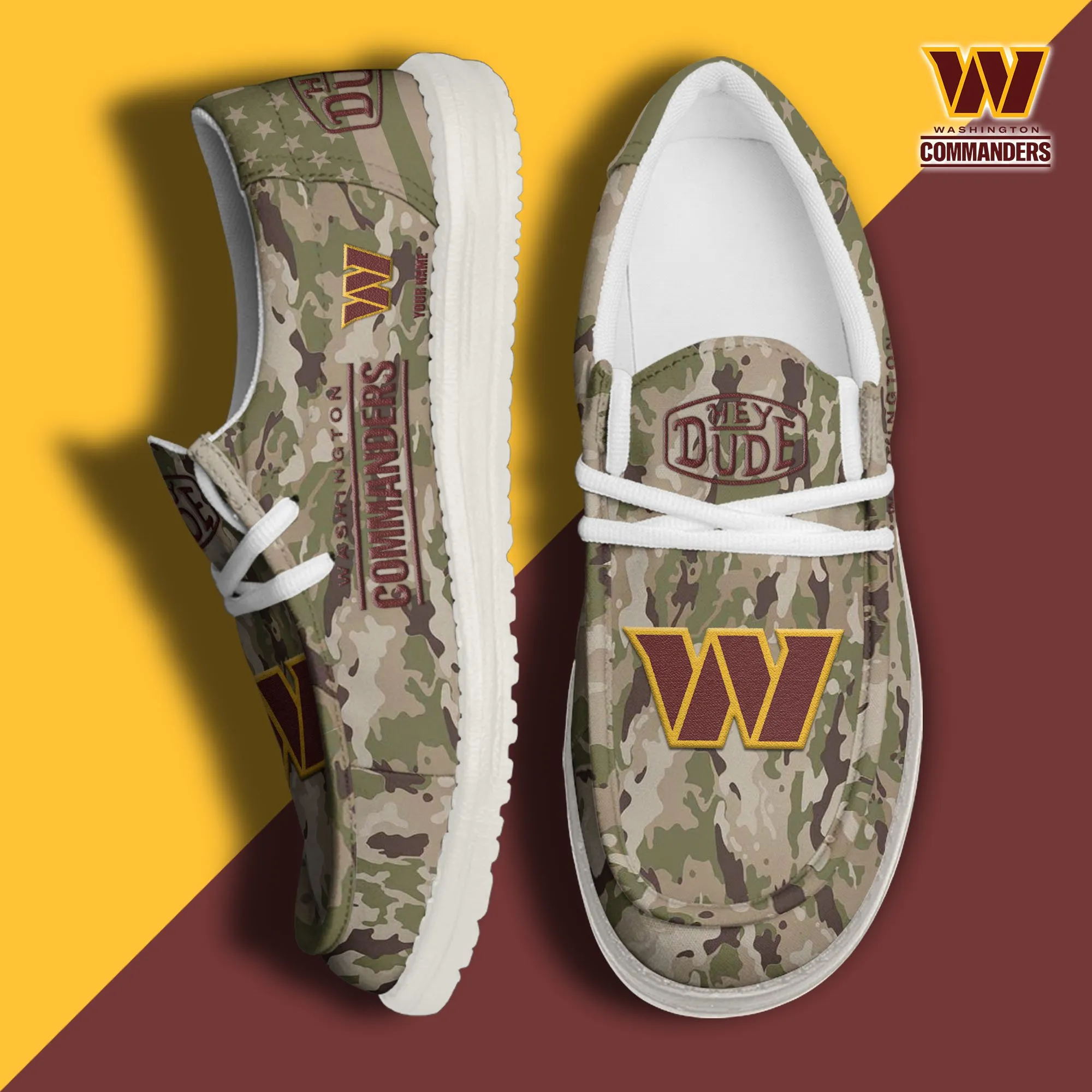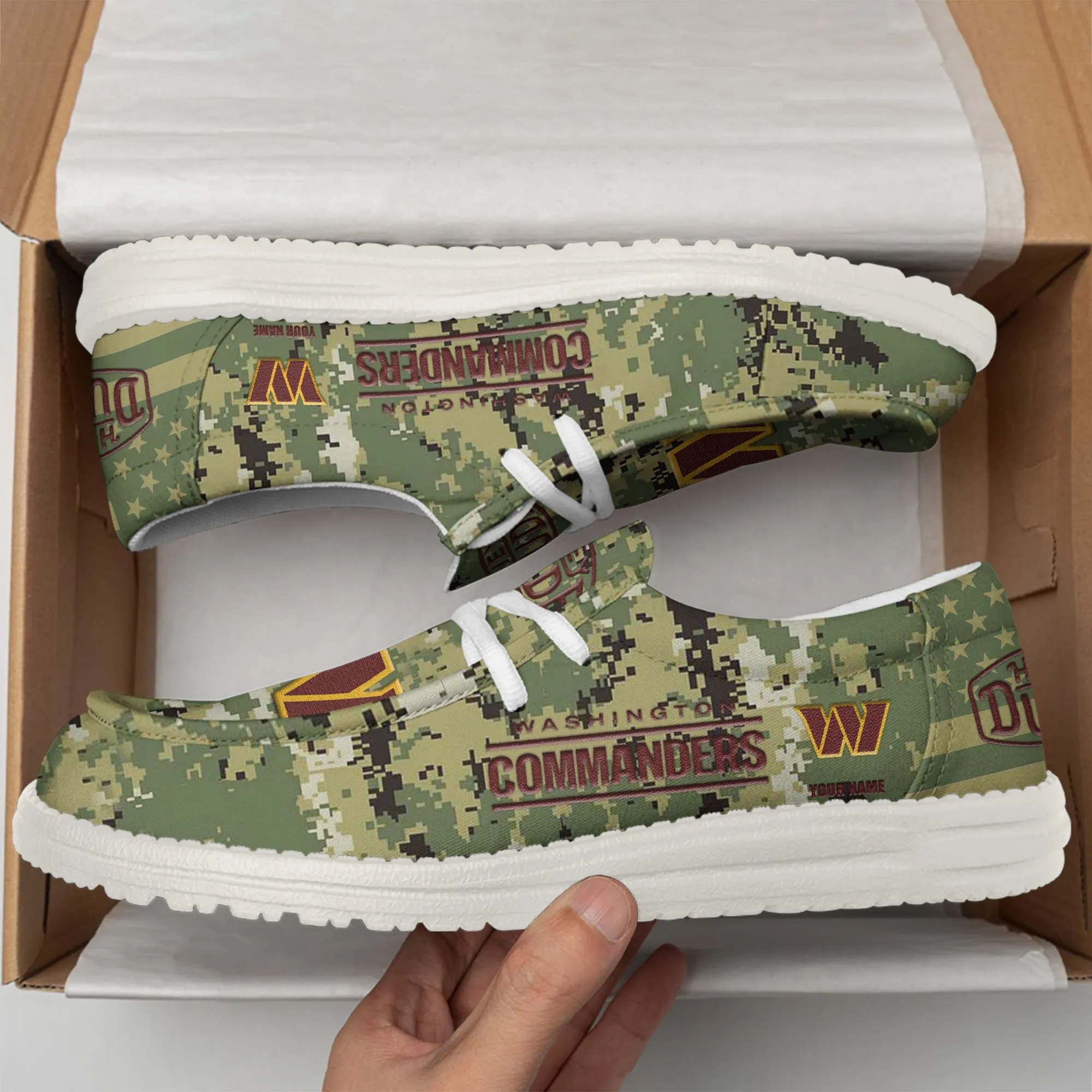 Washington Commanders 3D Print Dude Shoes Camo Green Best Gift For Sport Fan