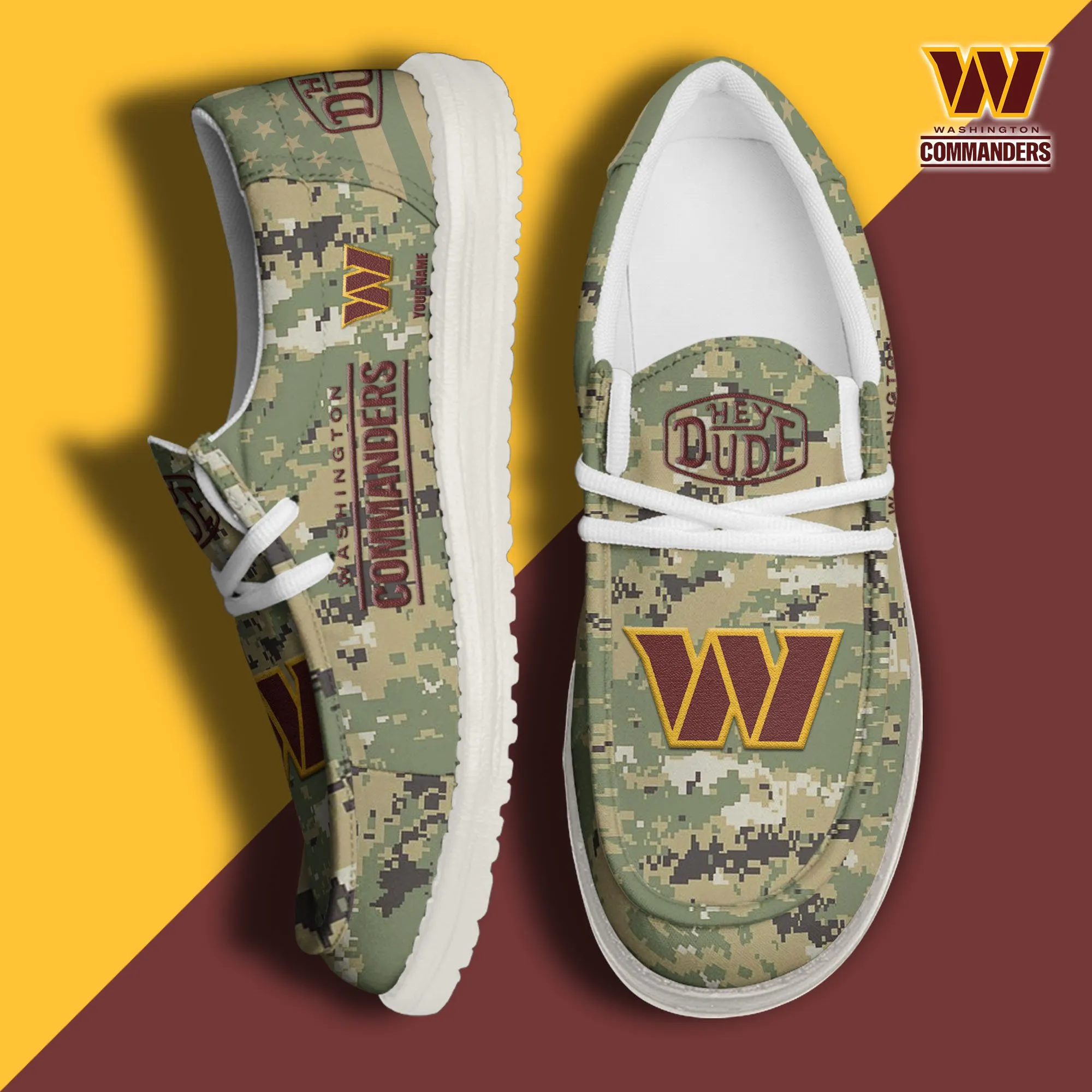Washington Commanders 3D Print Dude Shoes Camo Green For Men Women