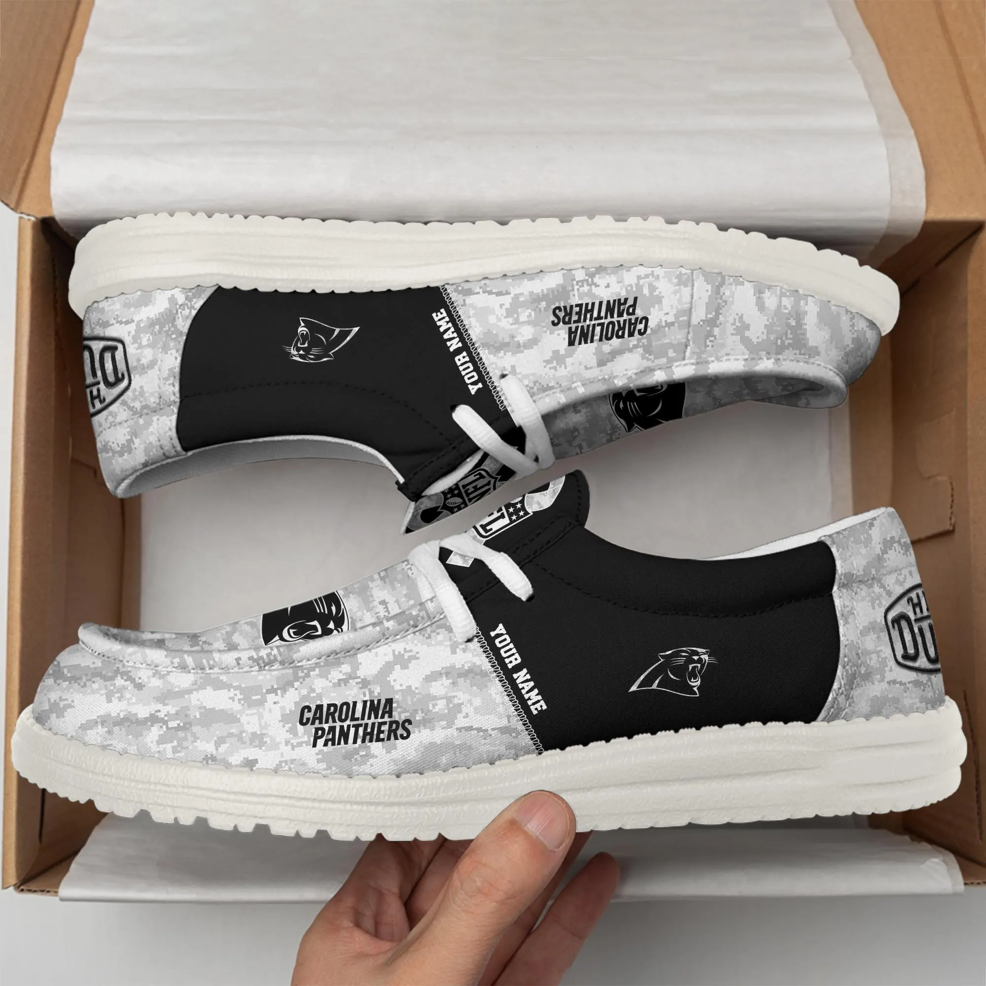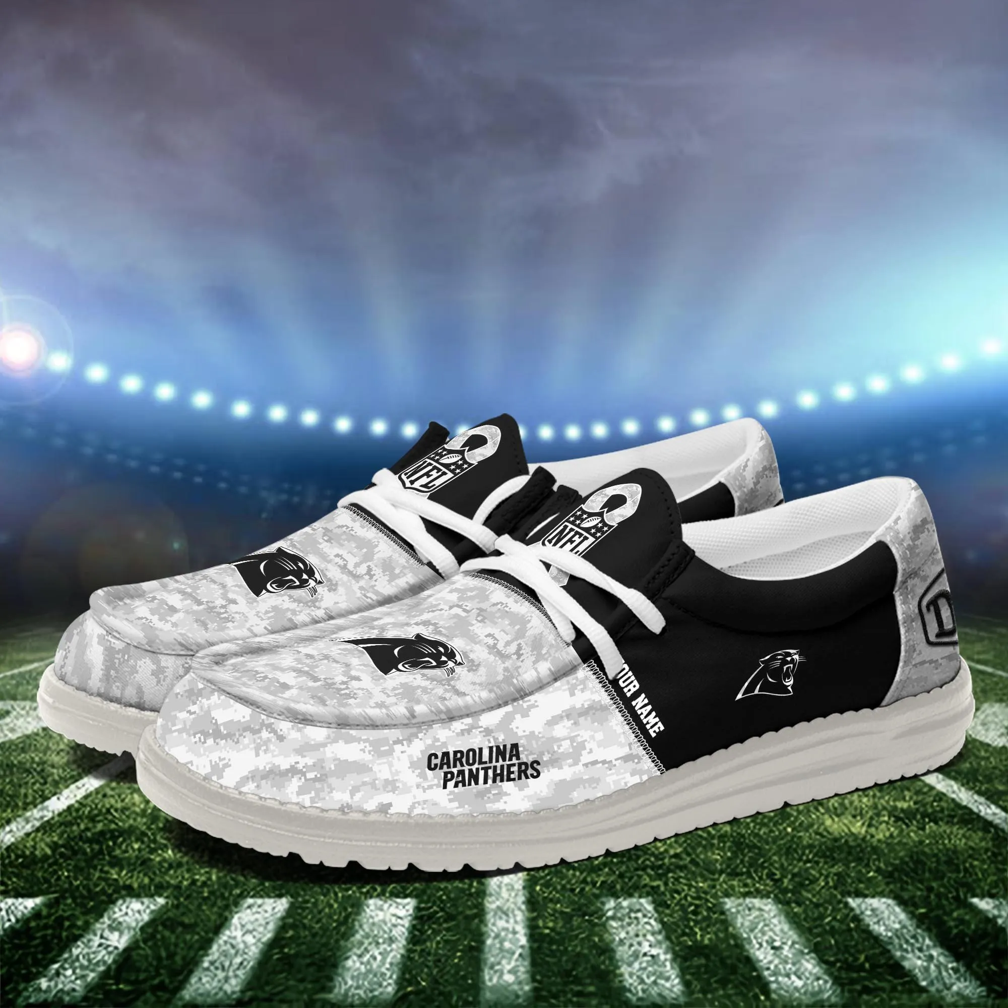 Carolina Panthers Custom Name Dude Shoes Camo