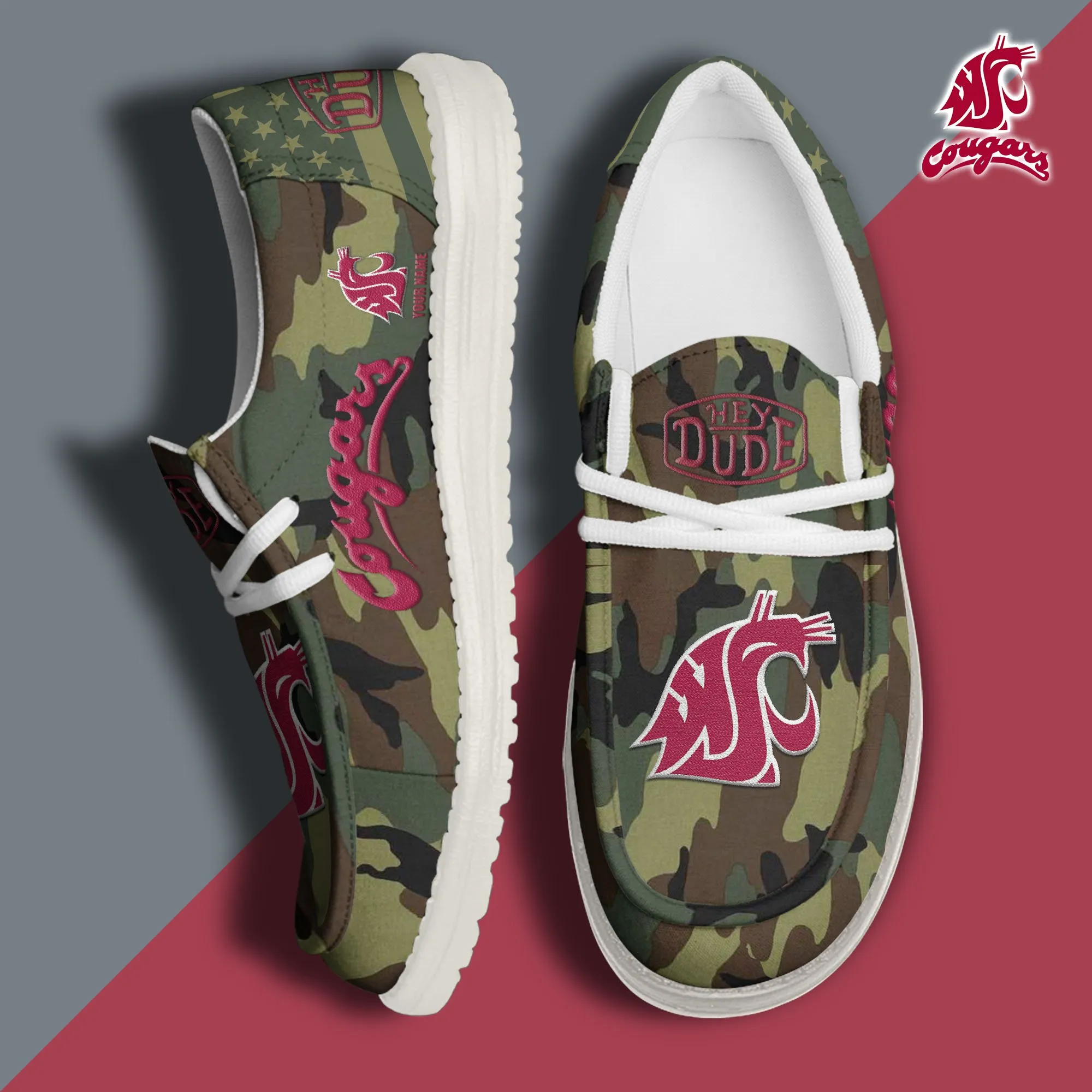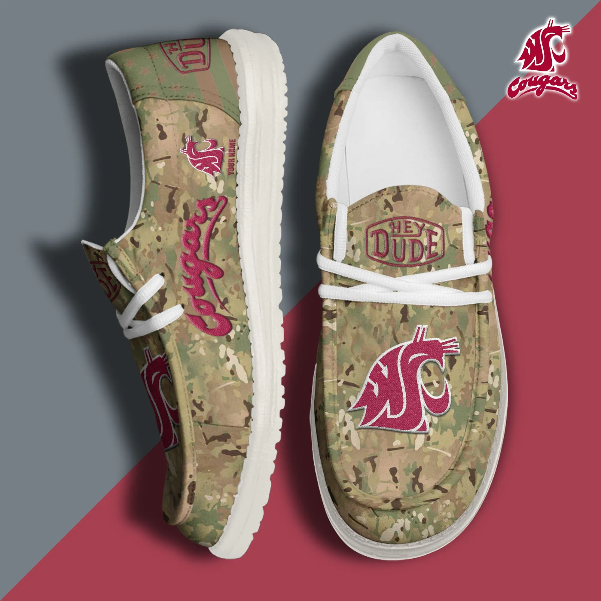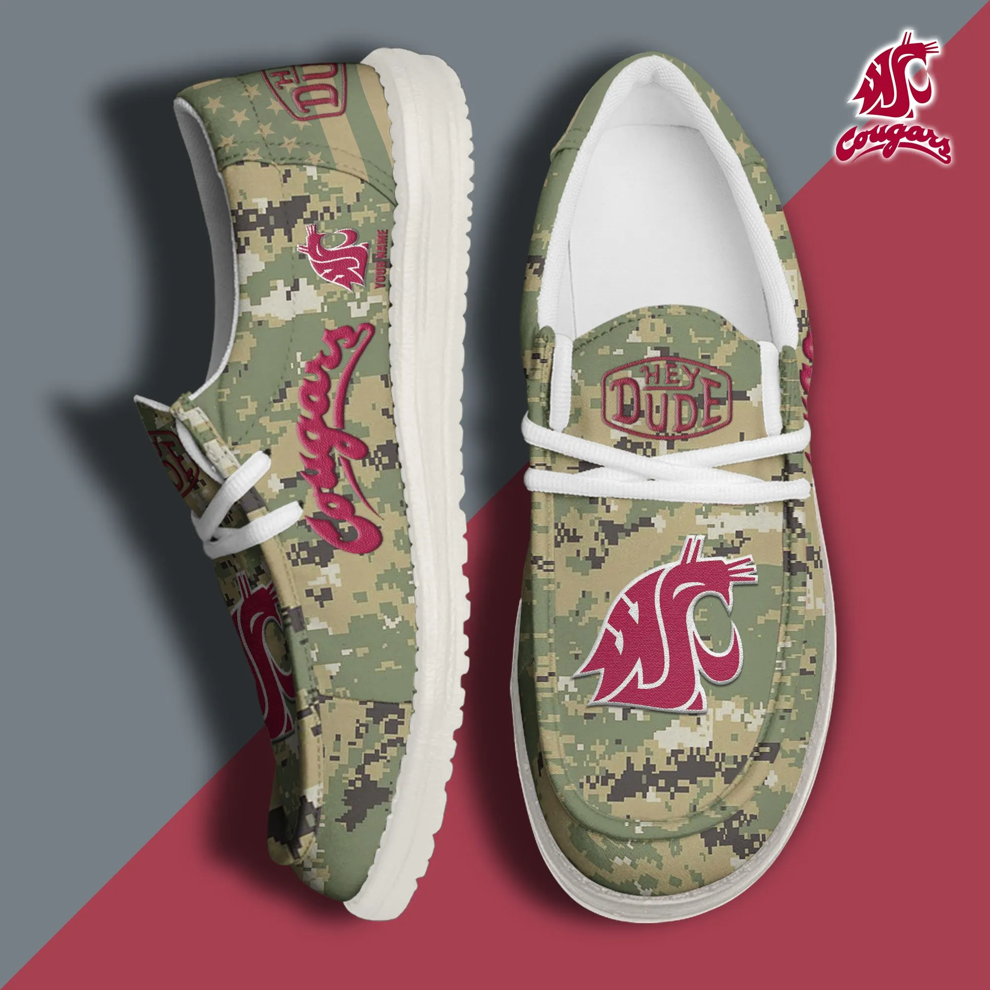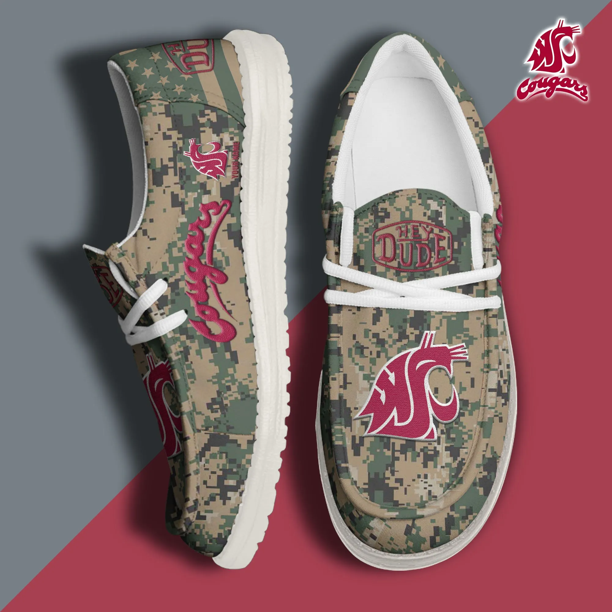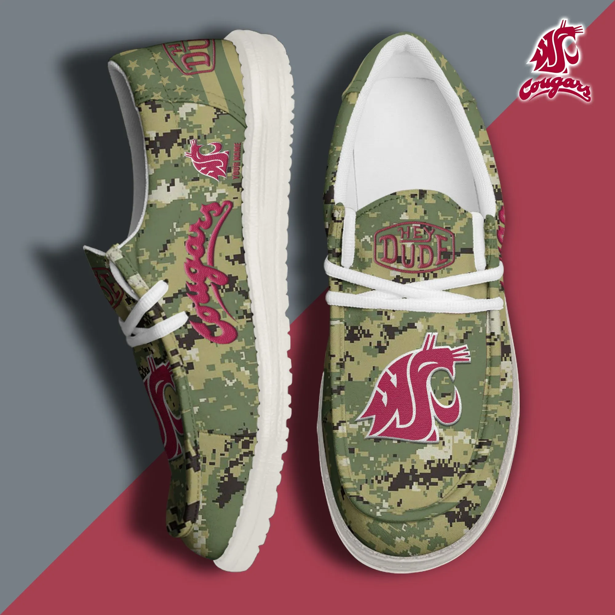 Washington State Cougars 3D Print Dude Shoes Camo Green Best Gift For Sport Fan