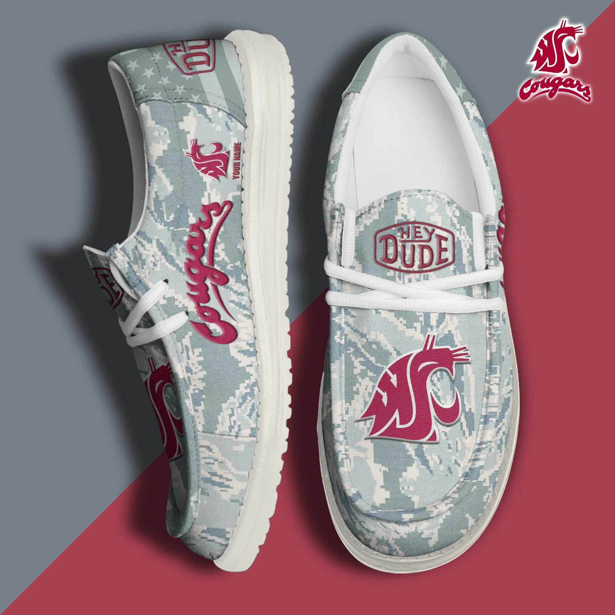 Washington State Cougars 3D Print Dude Shoes Camo Blue Grey For Men Women