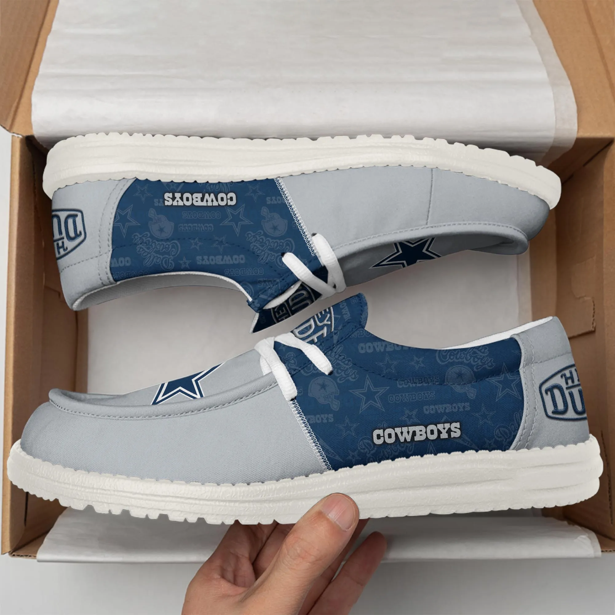 Dallas Cowboys 3D Print Dude Shoes Steel Blue For Men Women