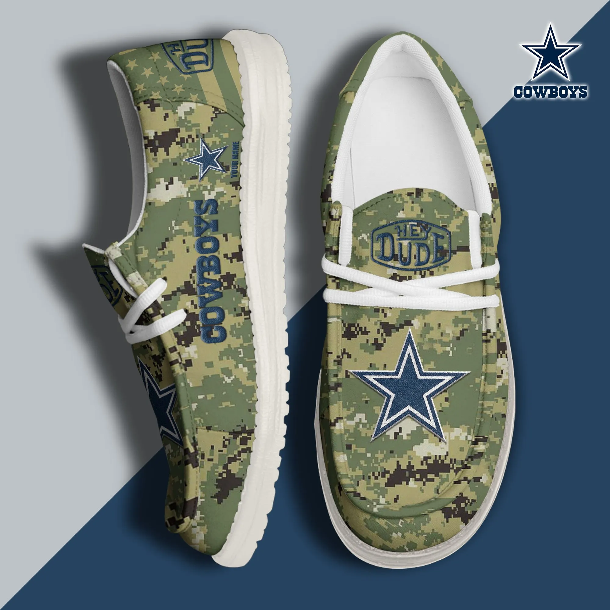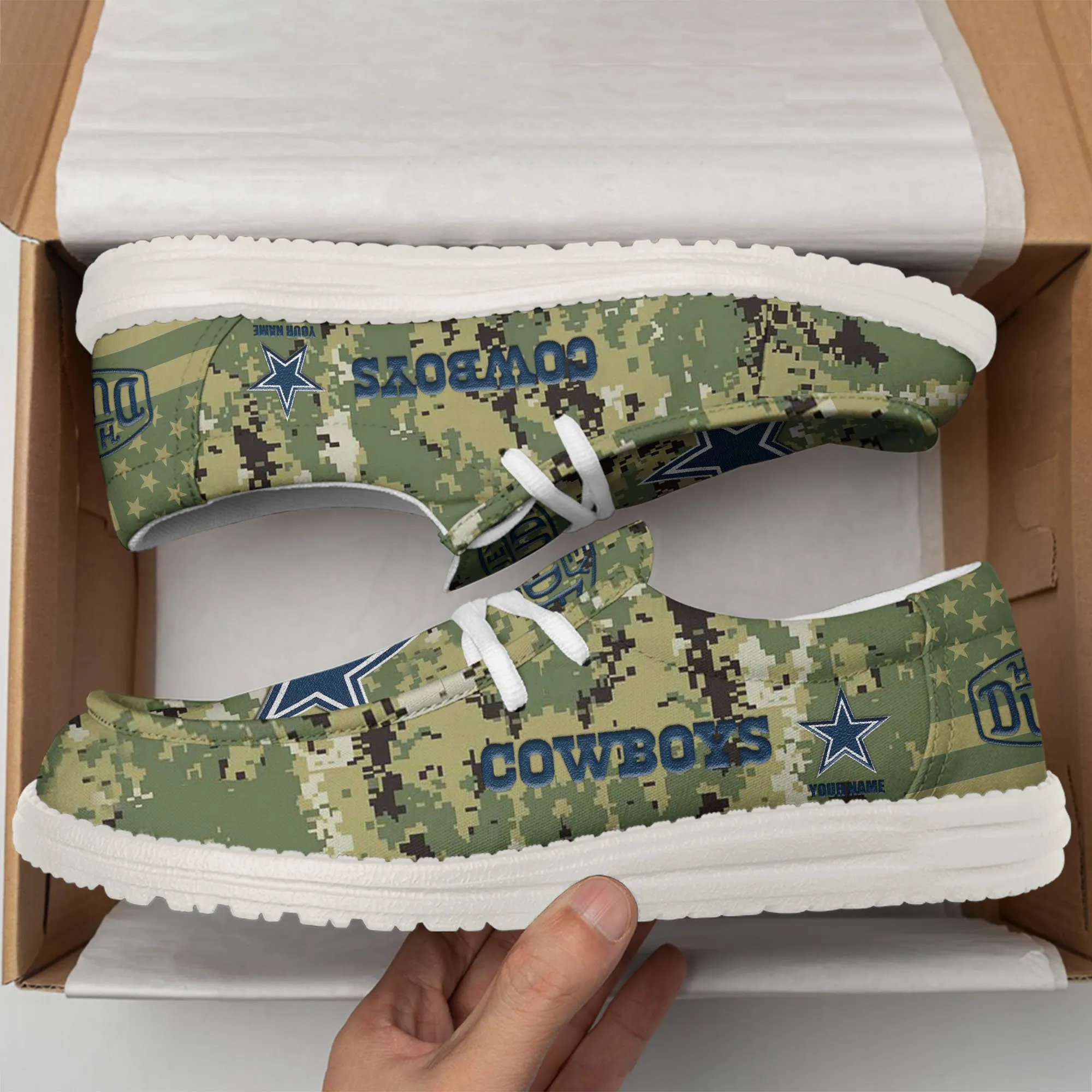 Dallas Cowboys 3D Print Dude Shoes Camo Green For Men Women