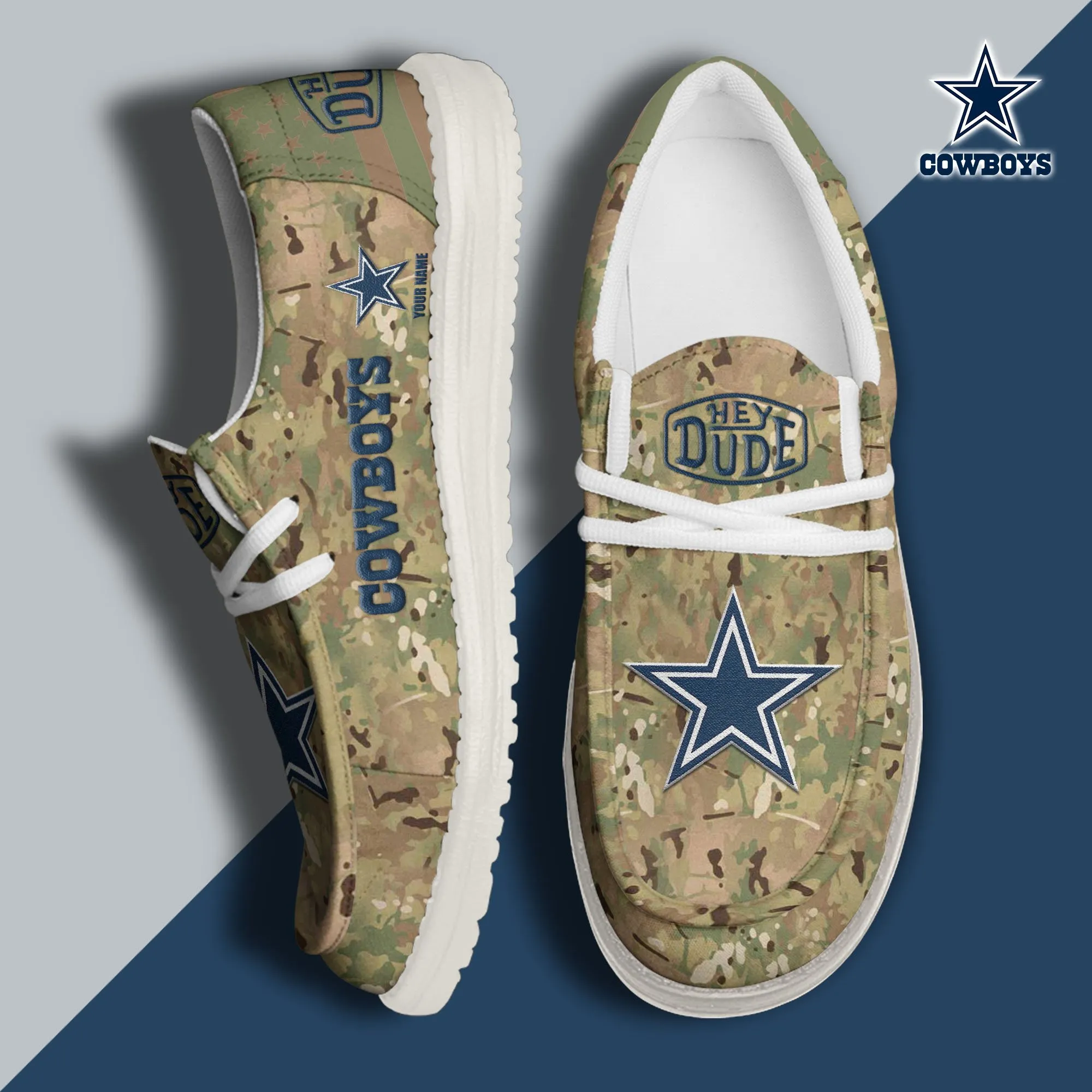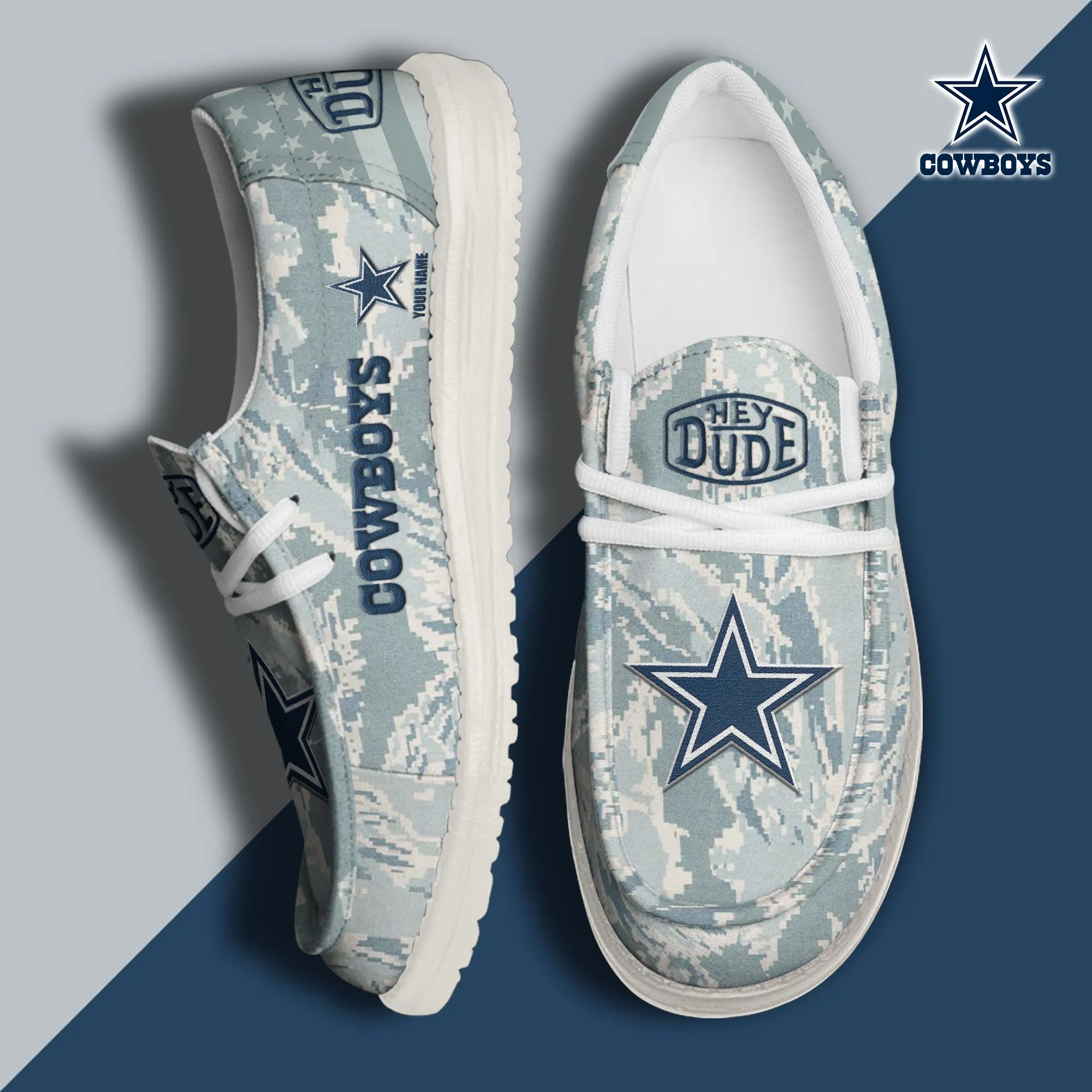 Dallas Cowboys 3D Print Dude Shoes Camo Grey Blue For Men Women