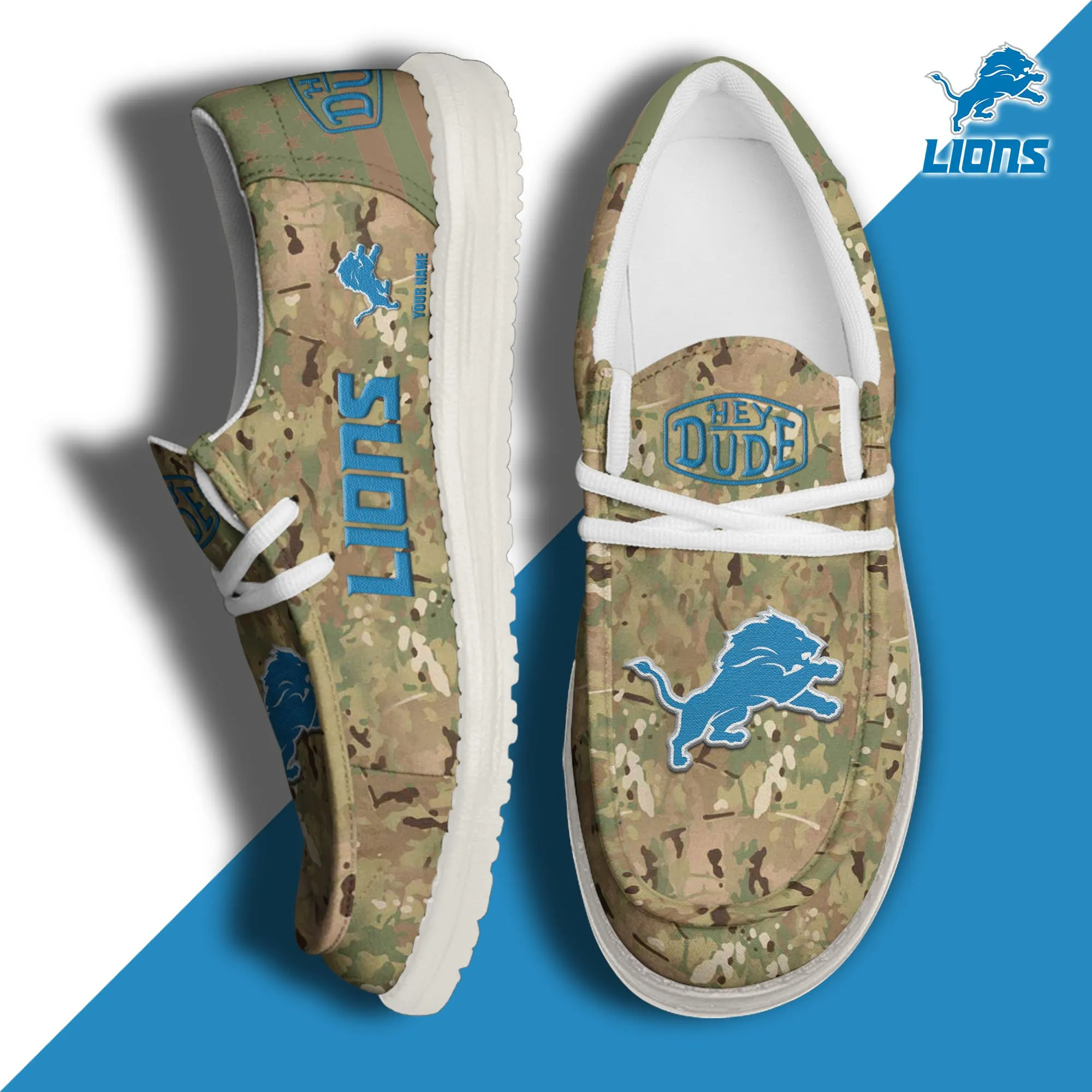 Detroit Lions 3D Print Dude Shoes Camo Green For Men Women