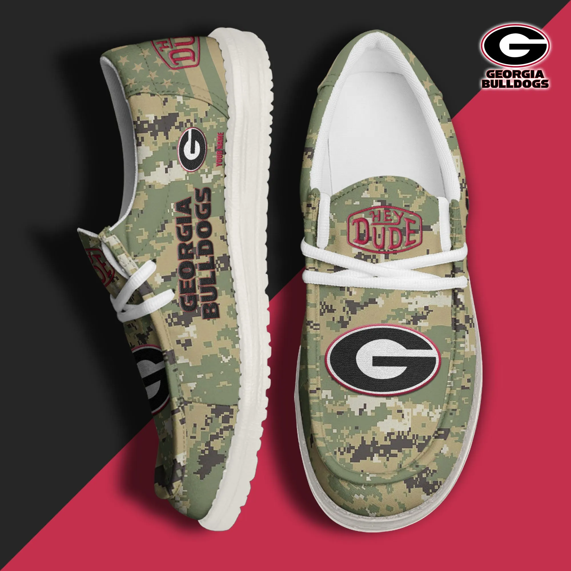 Georgia Bulldogs 3D Print Dude Shoes Camo Color For Men Women