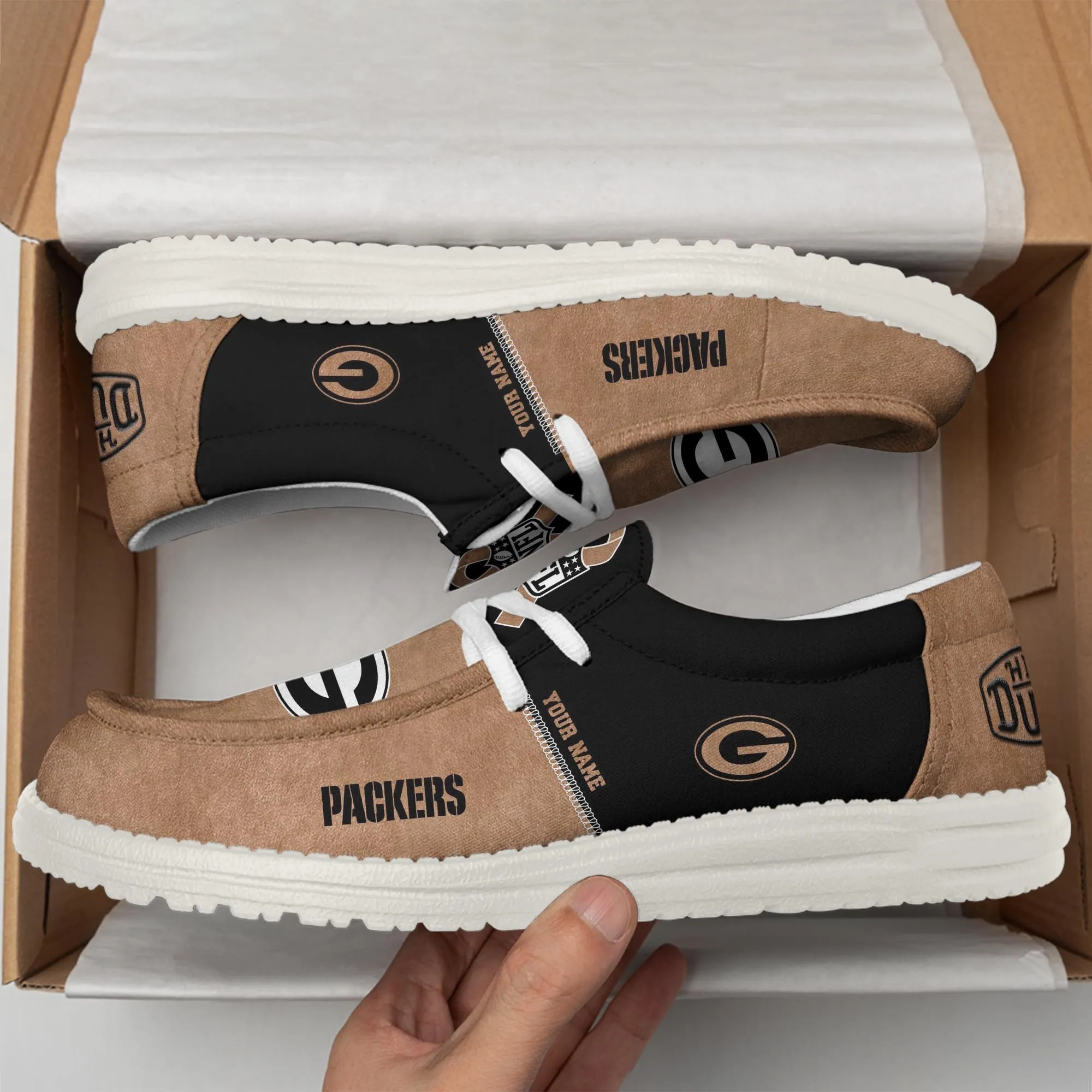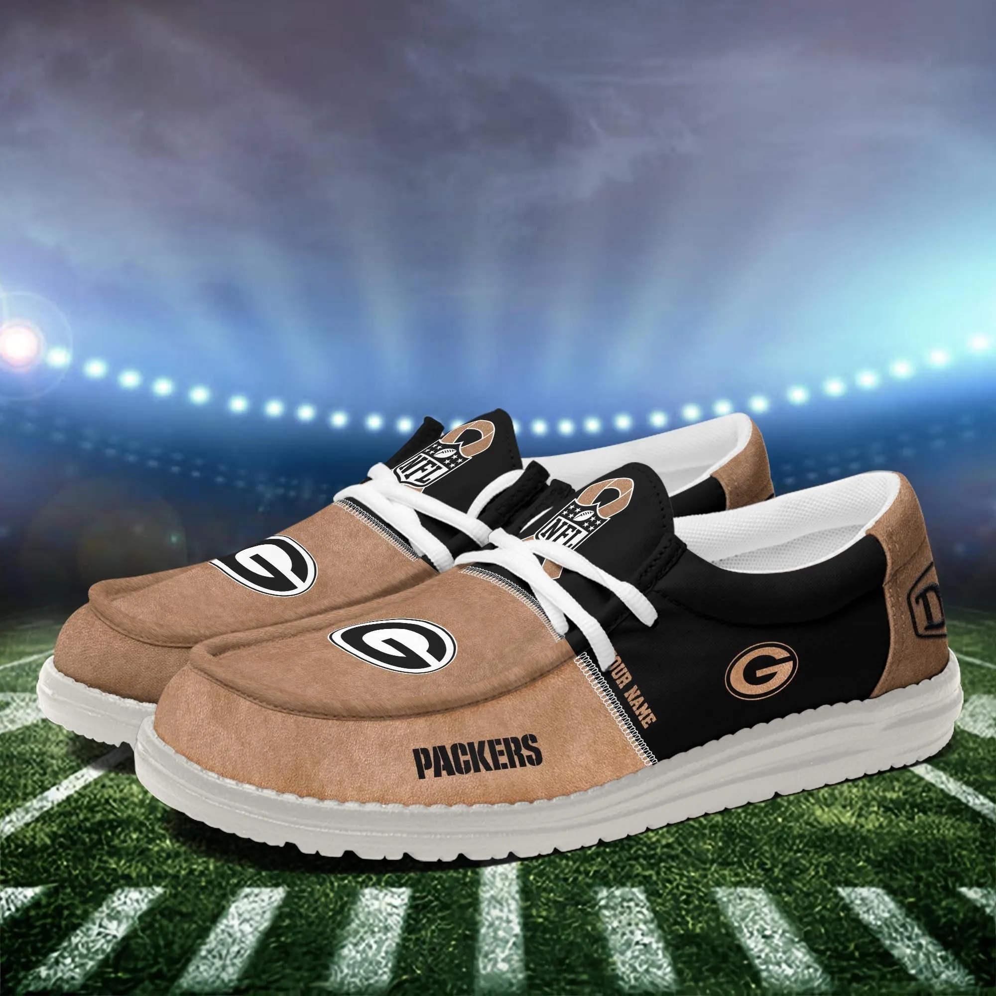 Green Bay Packers Custom Name Dude Shoes Brown