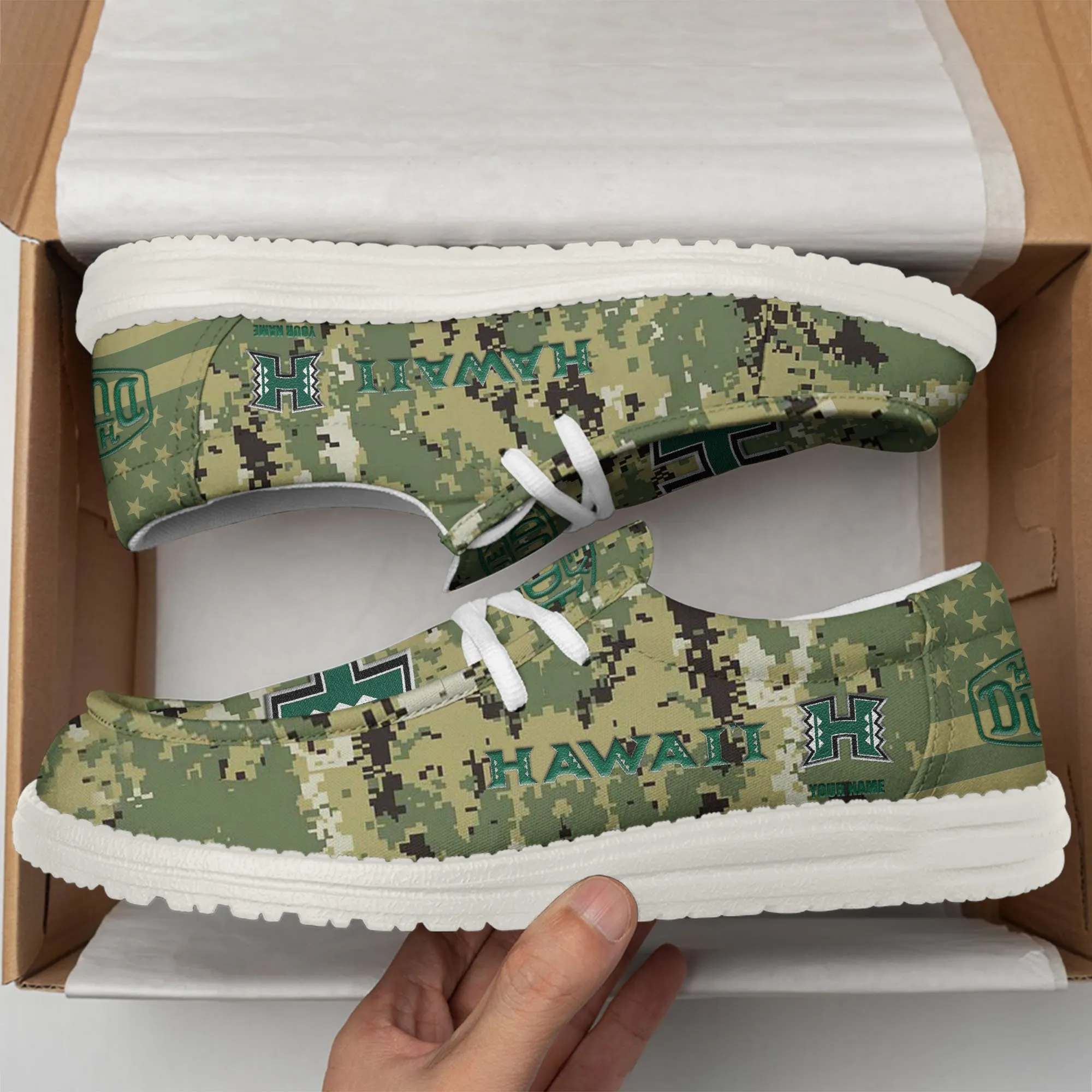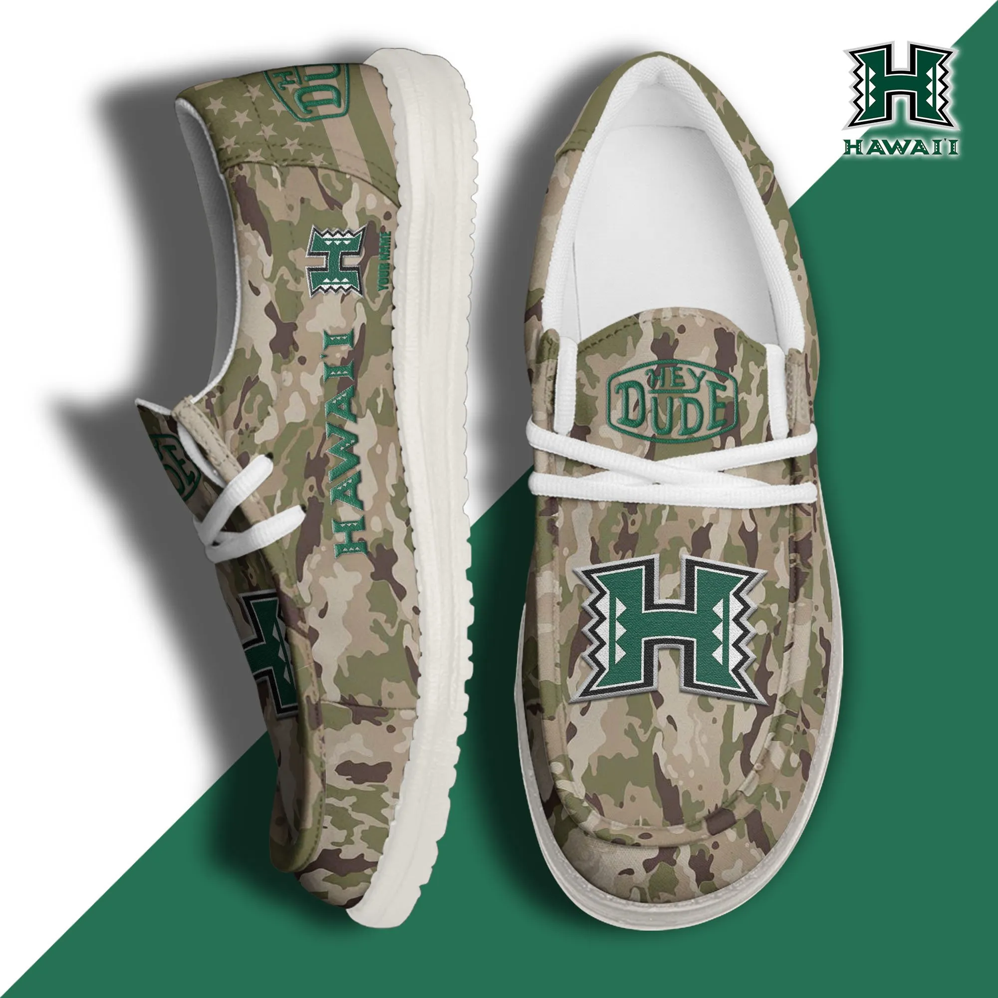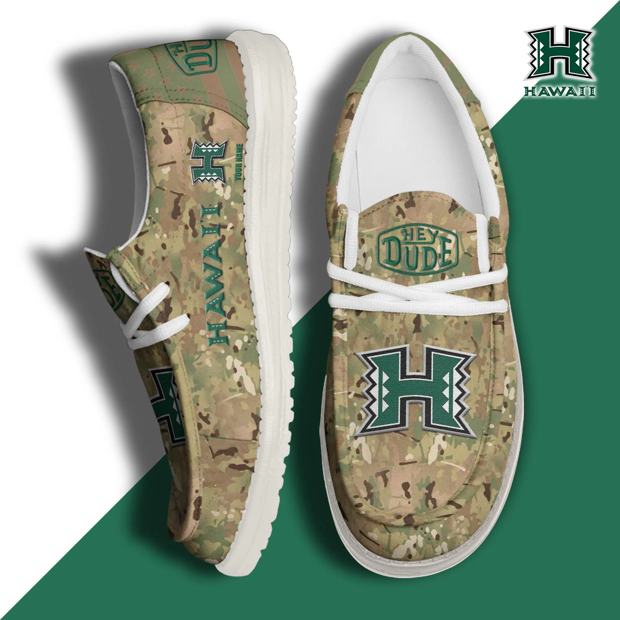 Hawaii Rainbow Warriors 3D Print Dude Shoes Camo Green Best Gift For Sport Fan