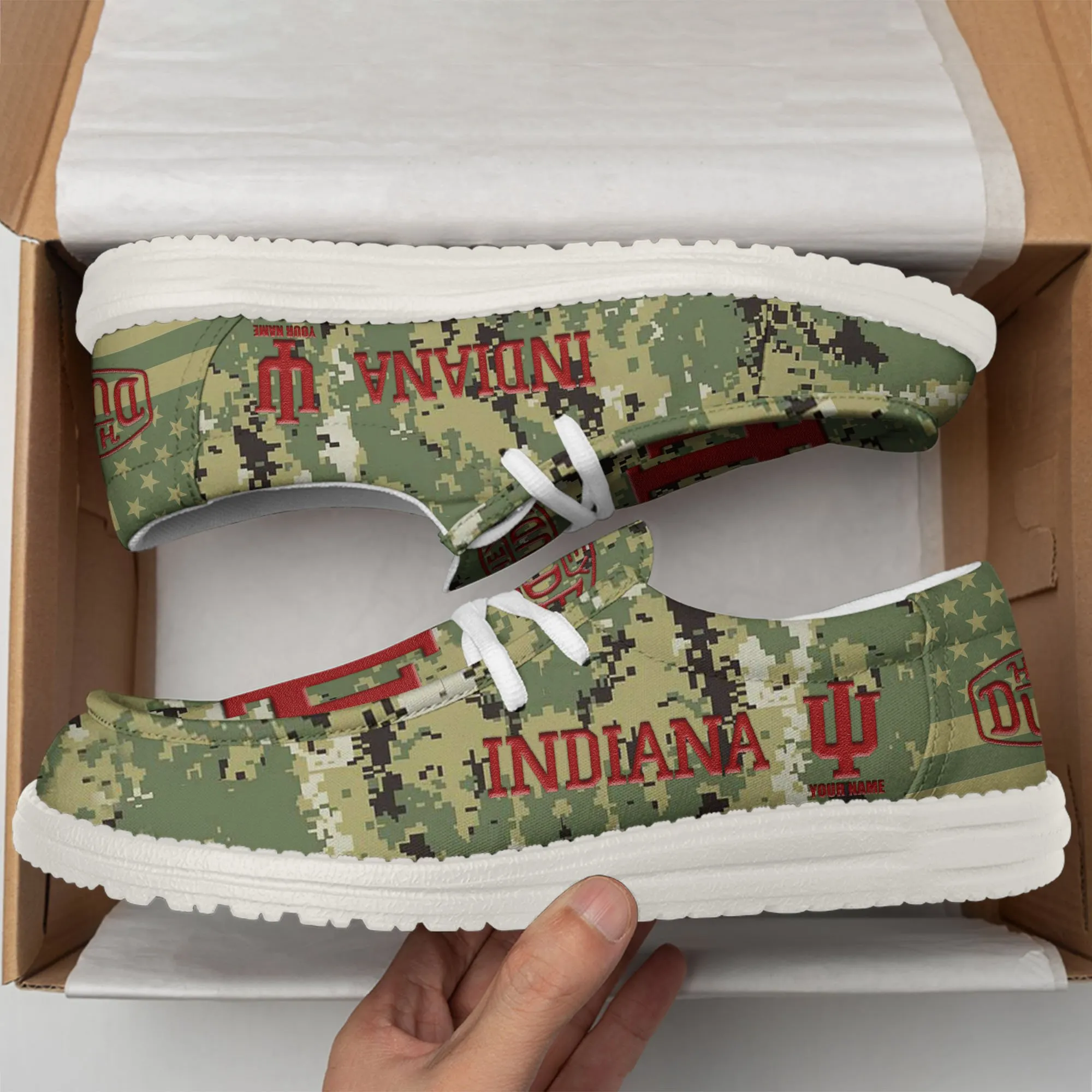 Indiana Hoosiers 3D Print Dude Shoes Camo Green For Men Women