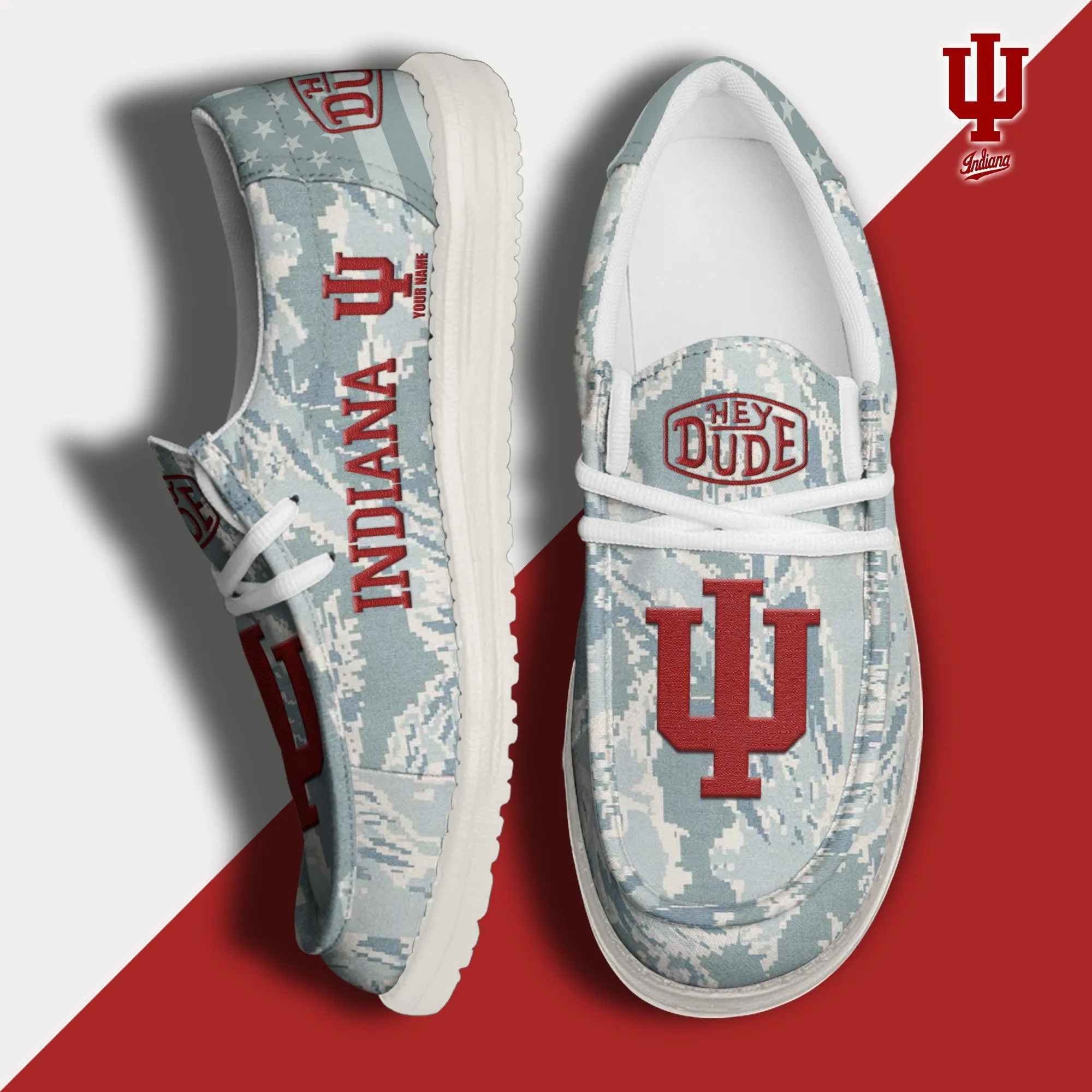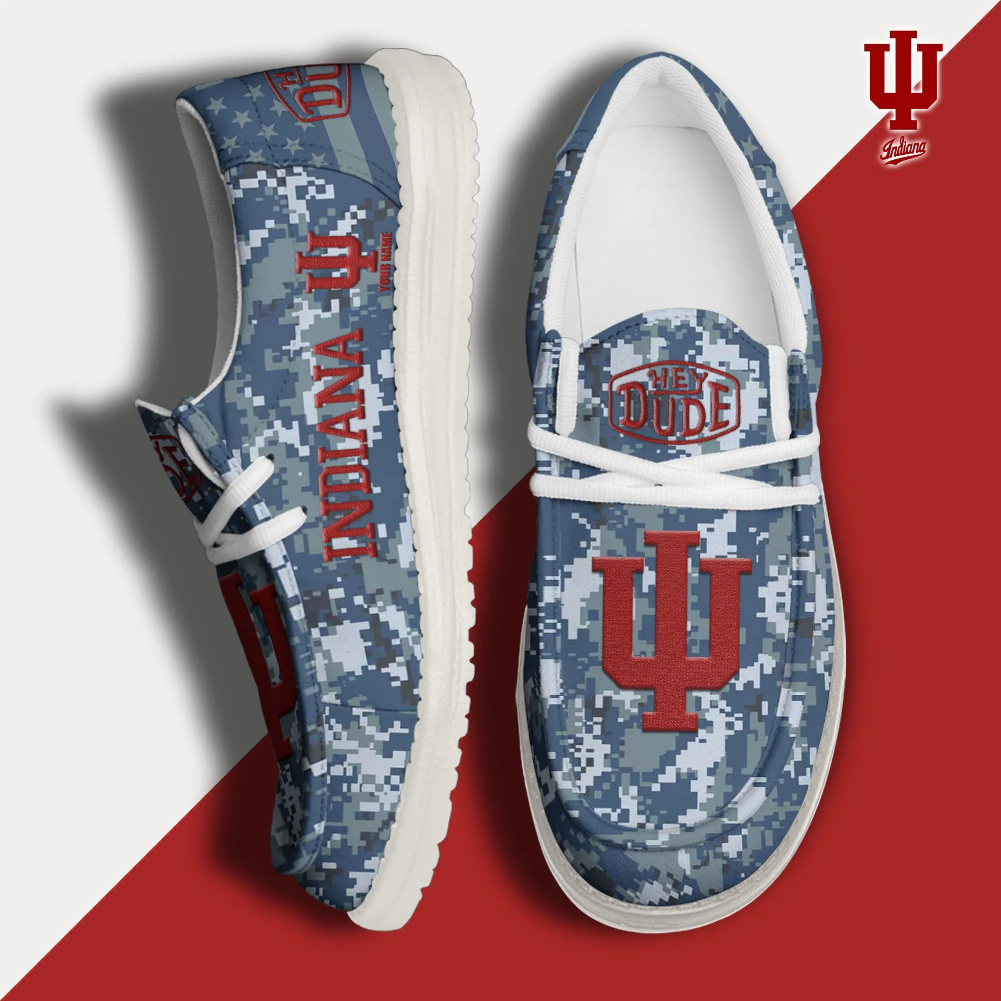 Indiana Hoosiers 3D Print Dude Shoes Camo Blue Grey For Men Women