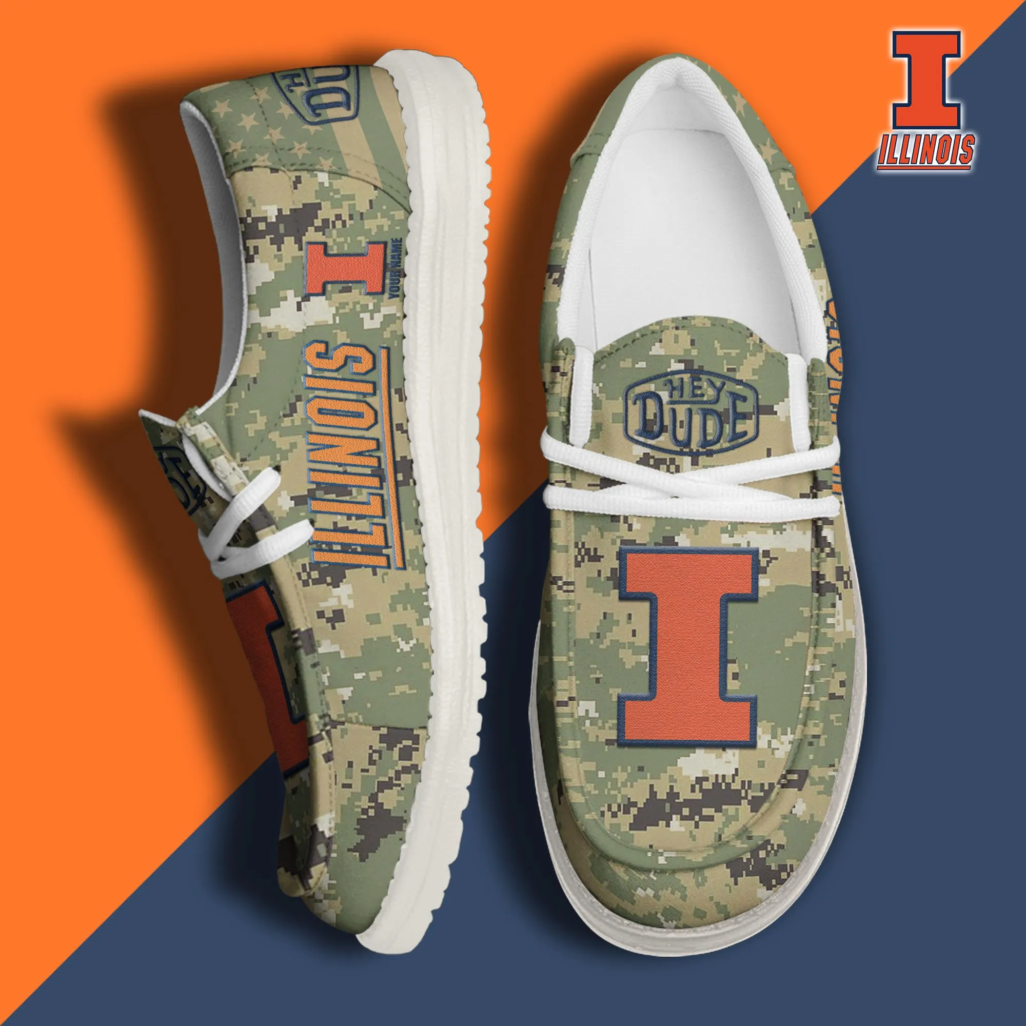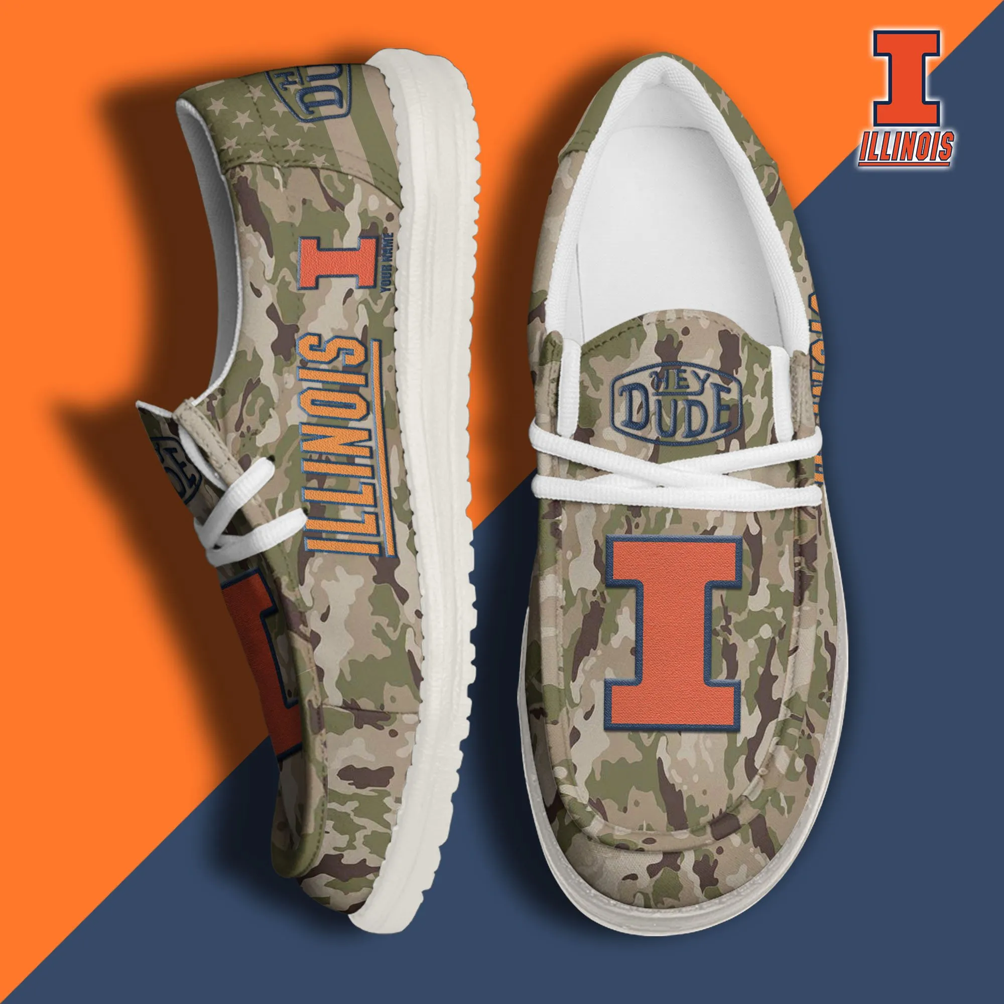 Illinois Fighting Illini 3D Print Dude Shoes Ranger Green Color For Men Women