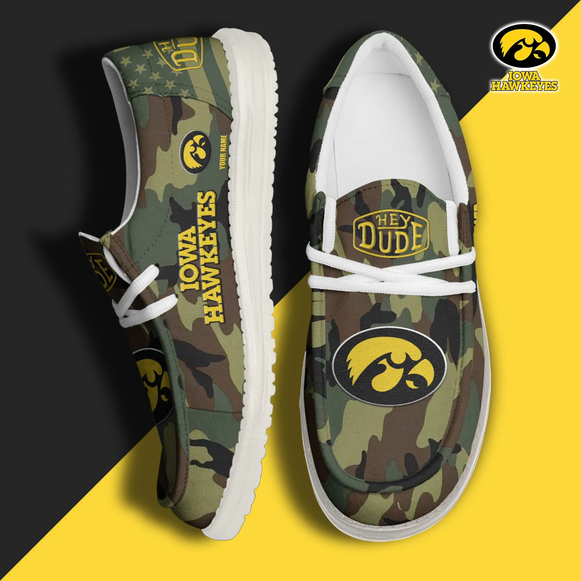 Iowa Hawkeyes 3D Print Dude Shoes Camo Blue Grey For Men Women