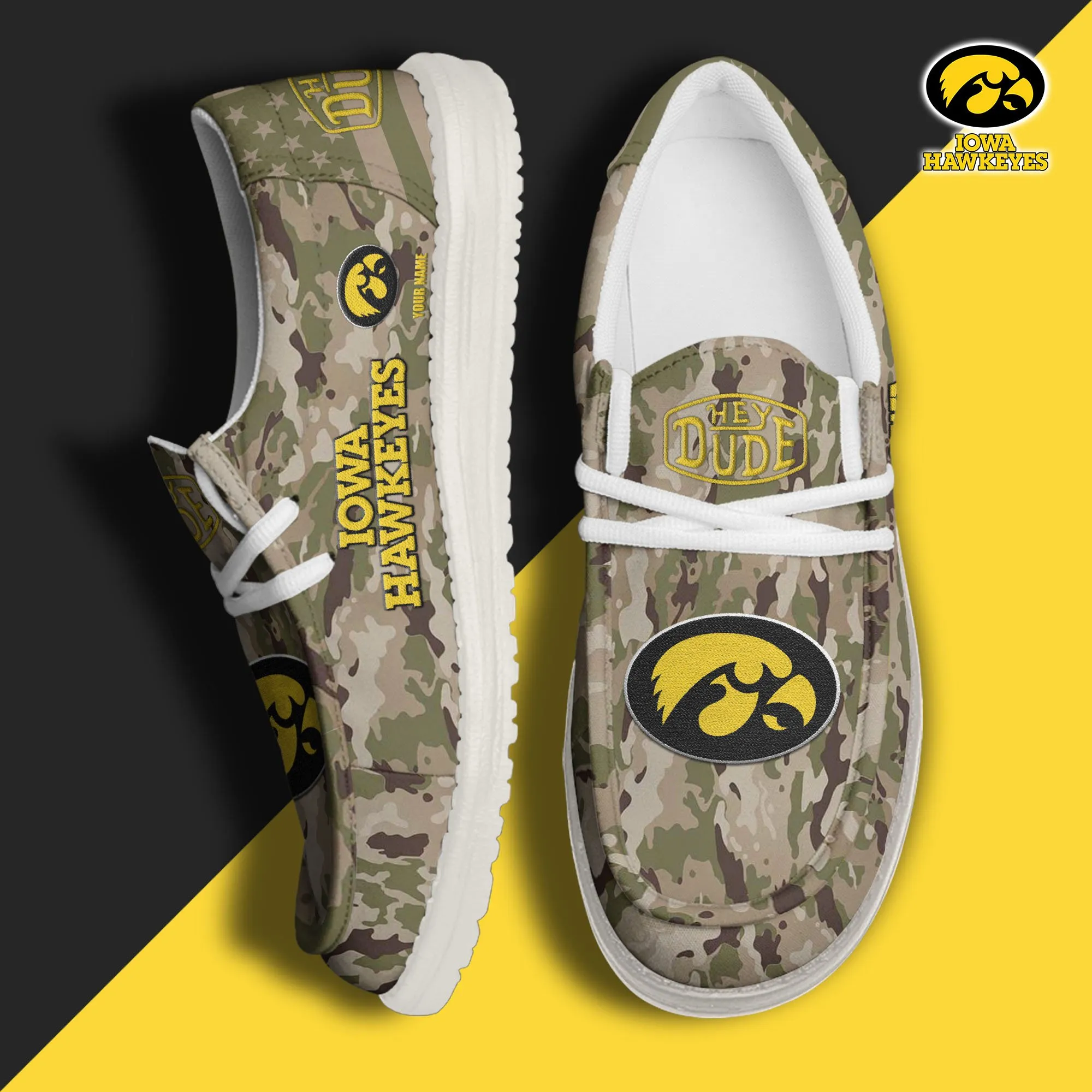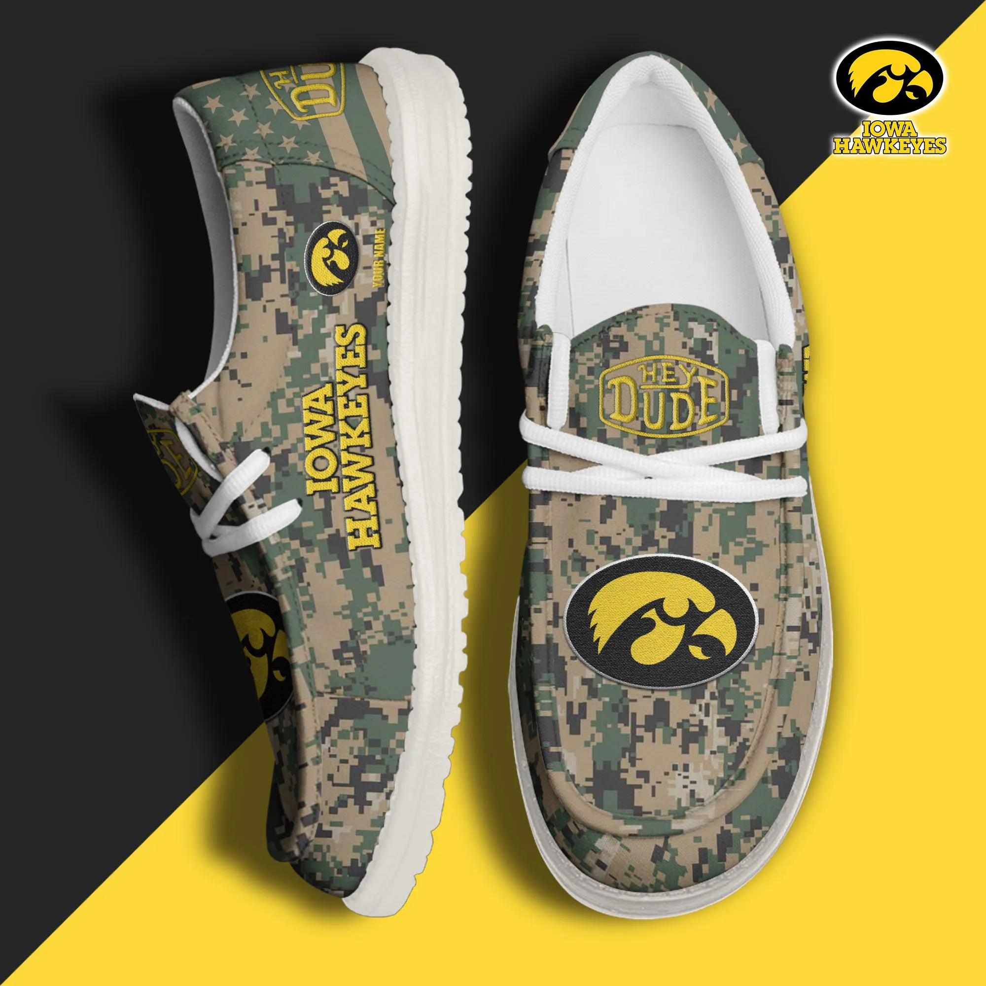 Iowa Hawkeyes 3D Print Dude Shoes Camo Green For Men Women