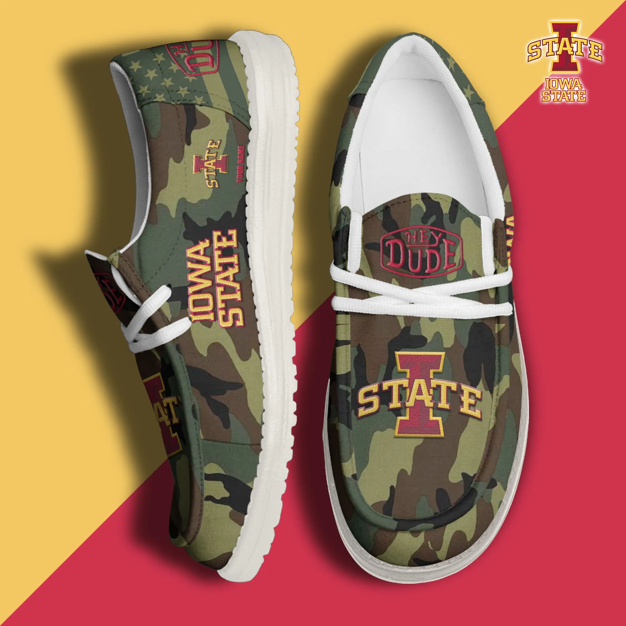 Iowa State Cyclones 3D Print Dude Shoes Camo Green For Men Women