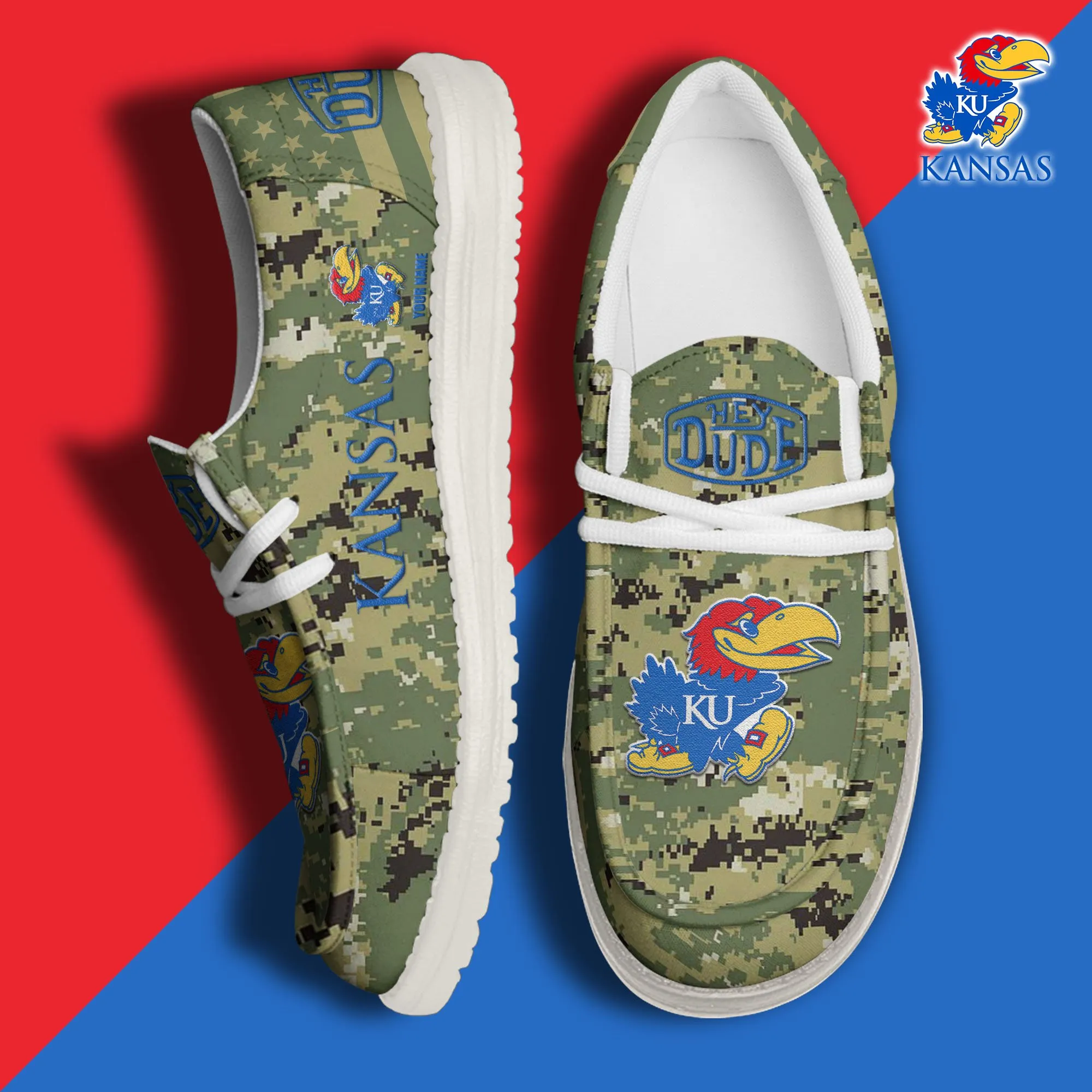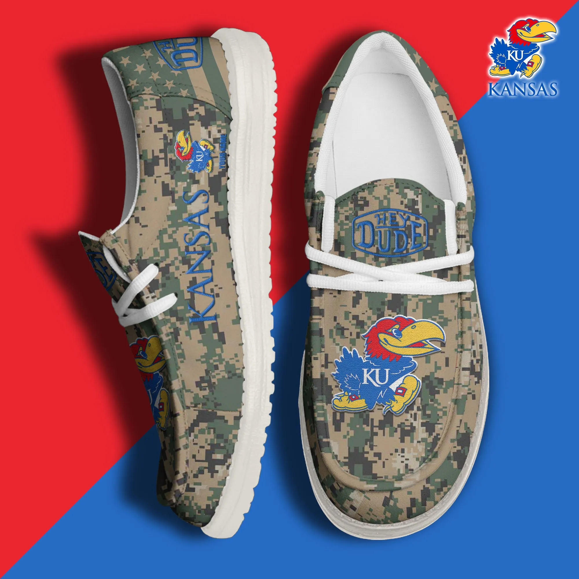 Kansas Jayhawks 3D Print Dude Shoes Camo Green Best Gift For Sport Fan